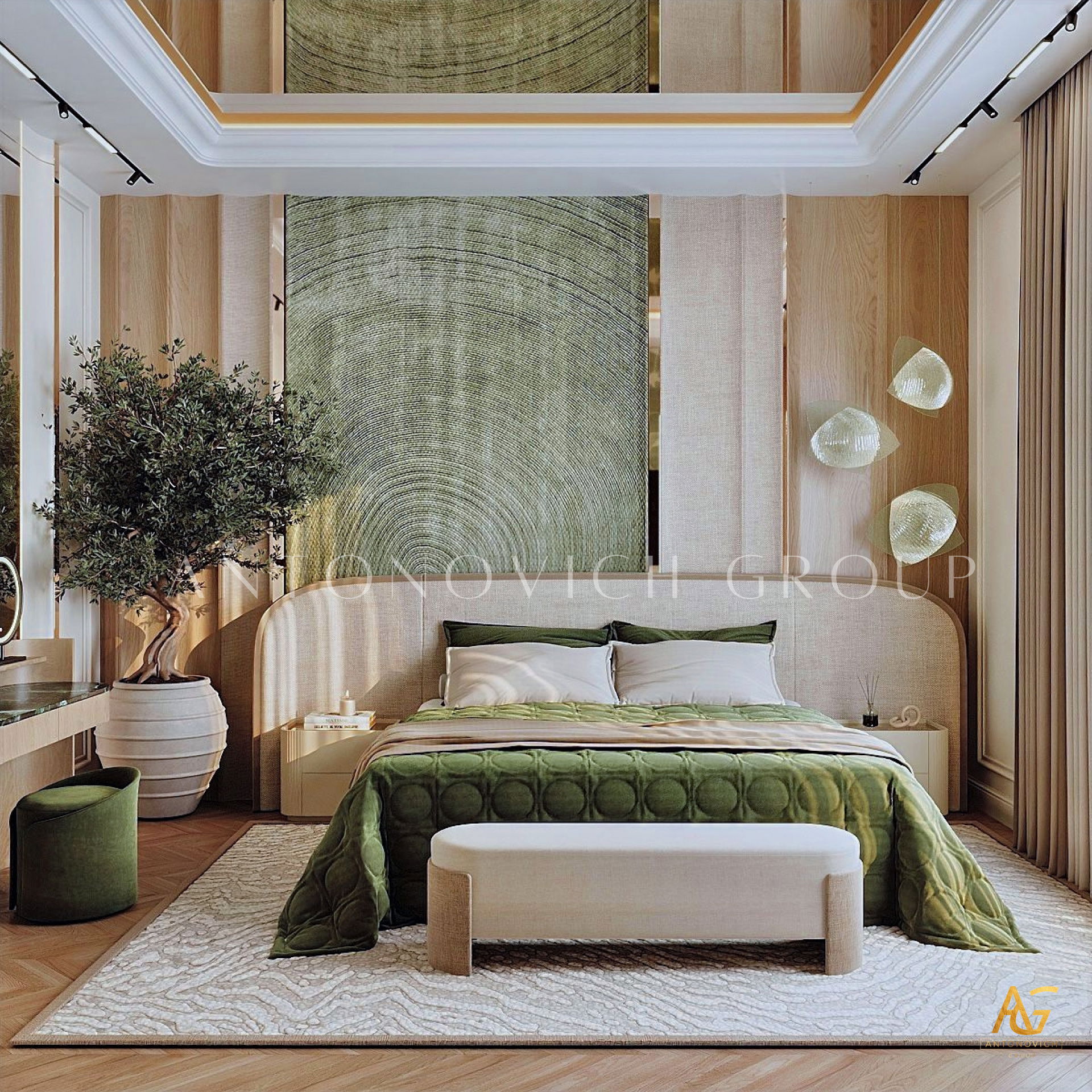 Antonovich Group also places strong emphasis on joinery and wall panel detailing. Custom wall claddings, padded headboards, decorative moldings, and hidden storage systems are designed to enhance both aesthetics and functionality. These elements contribute to the clean, refined look that defines modern luxury bedroom interiors while ensuring practical daily use.