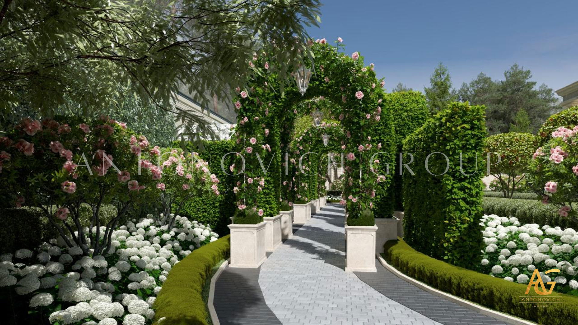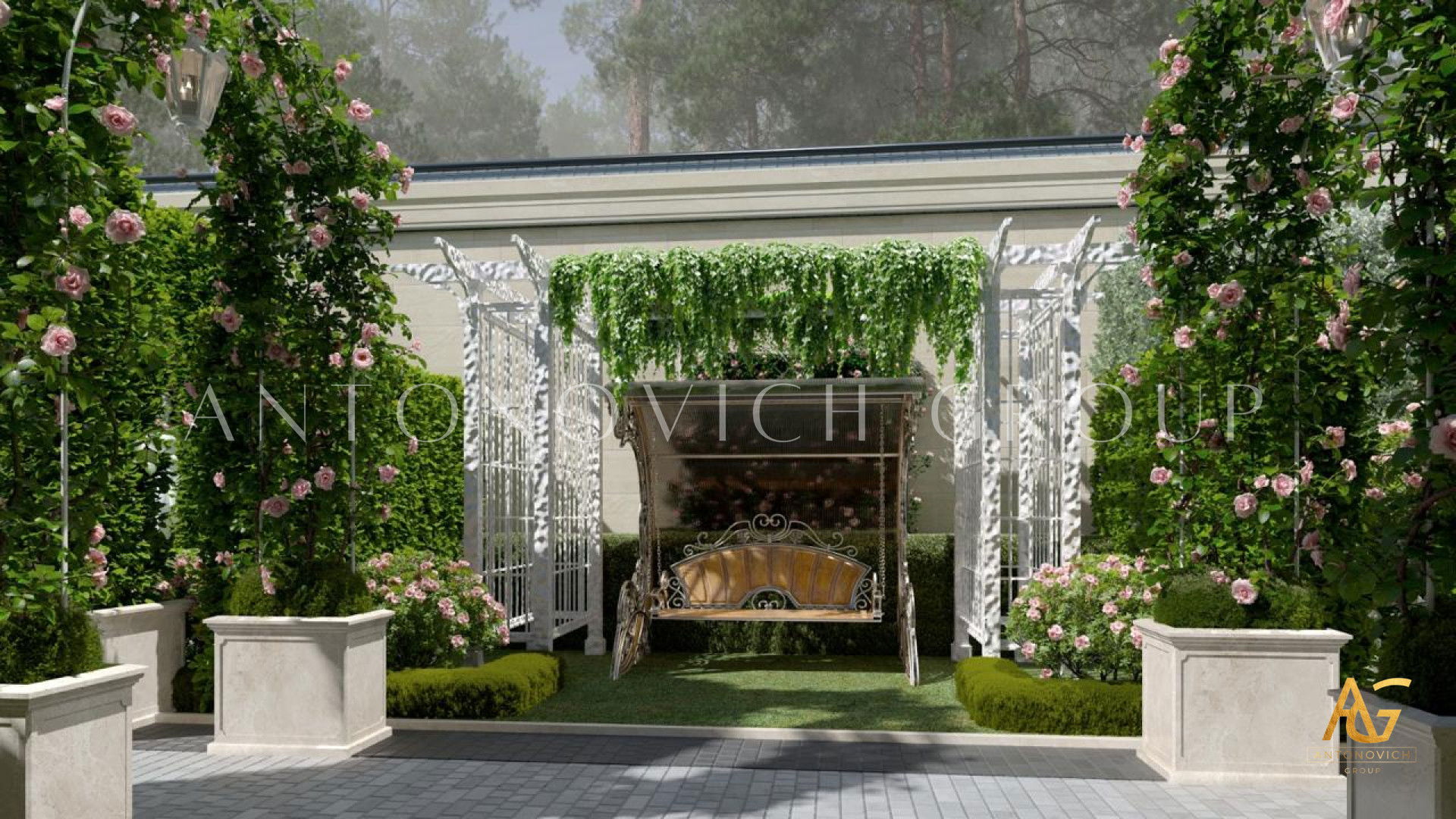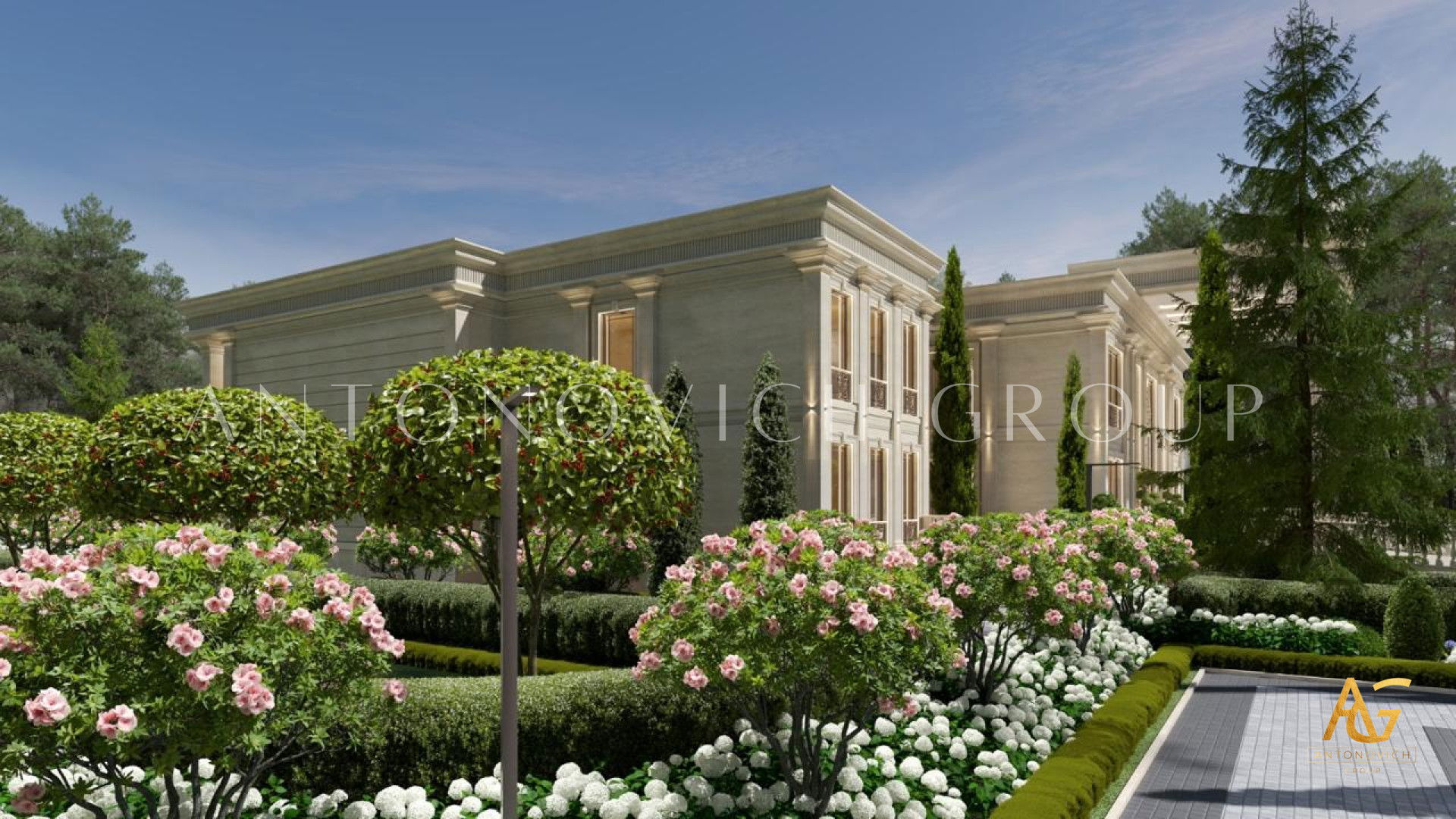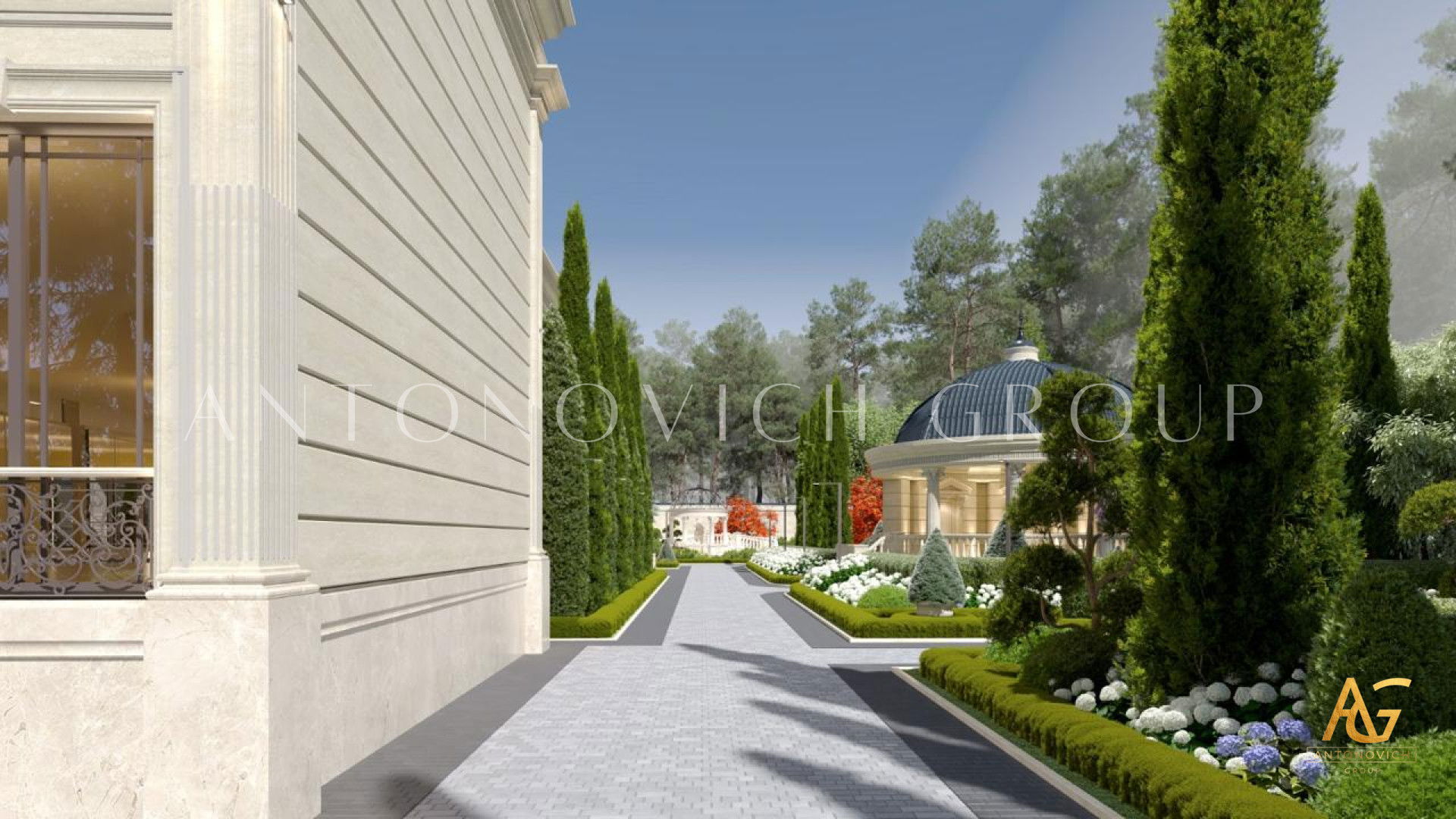 Luxury Antonovich Design accomplishes every landscape design project is intimately tied to building design and villa exterior style. The luxury villa in a modern design represents the current trends of the comfortable dwelling development. We consider each family members desires, habits, and lifestyle throughout the early phases of planning. A huge swimming pool and a large playground design represent these characteristics. The residence is owned by a young family who leads an active lifestyle.