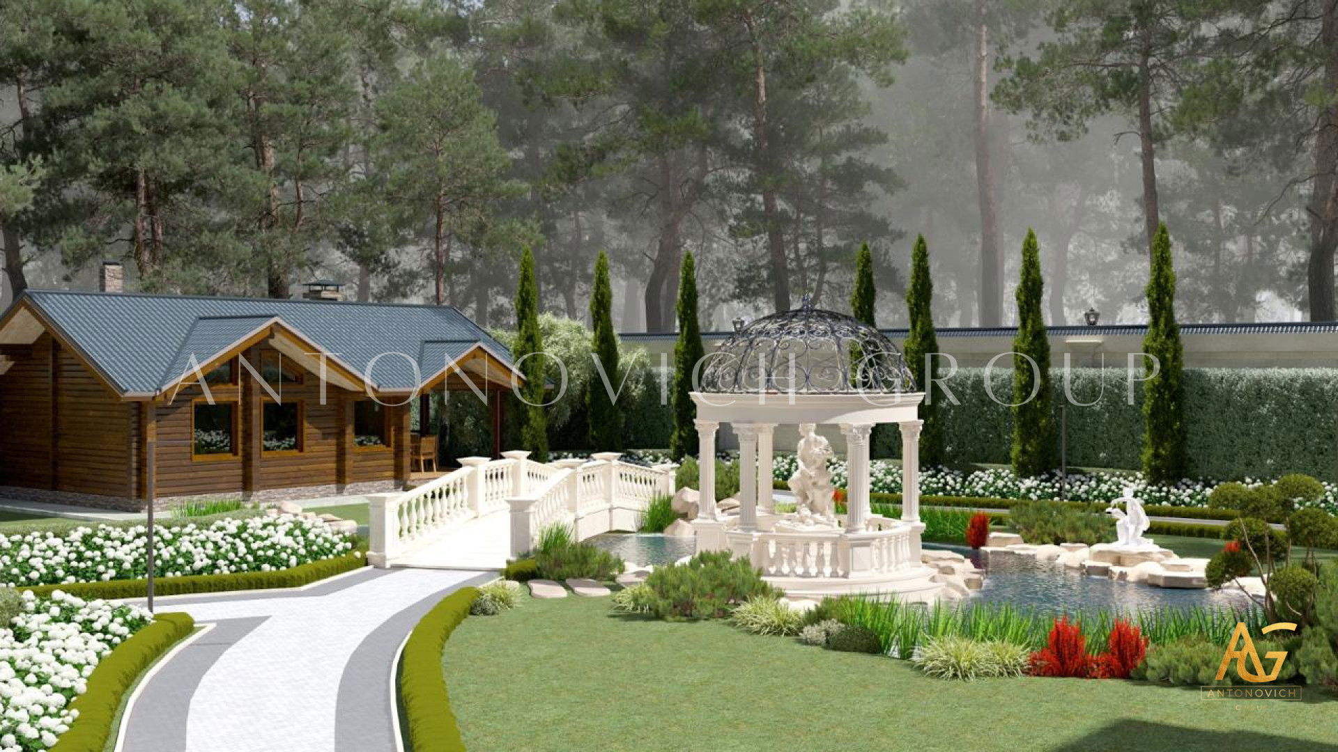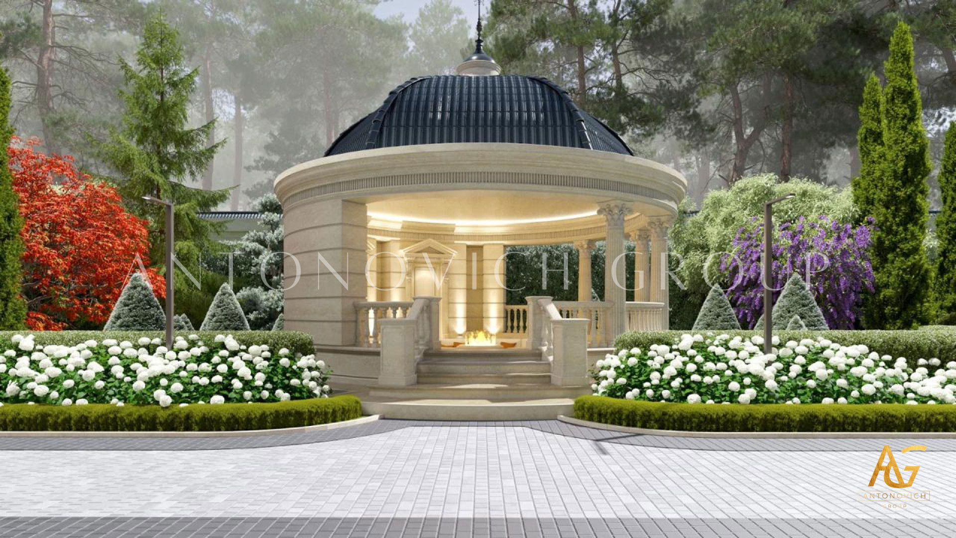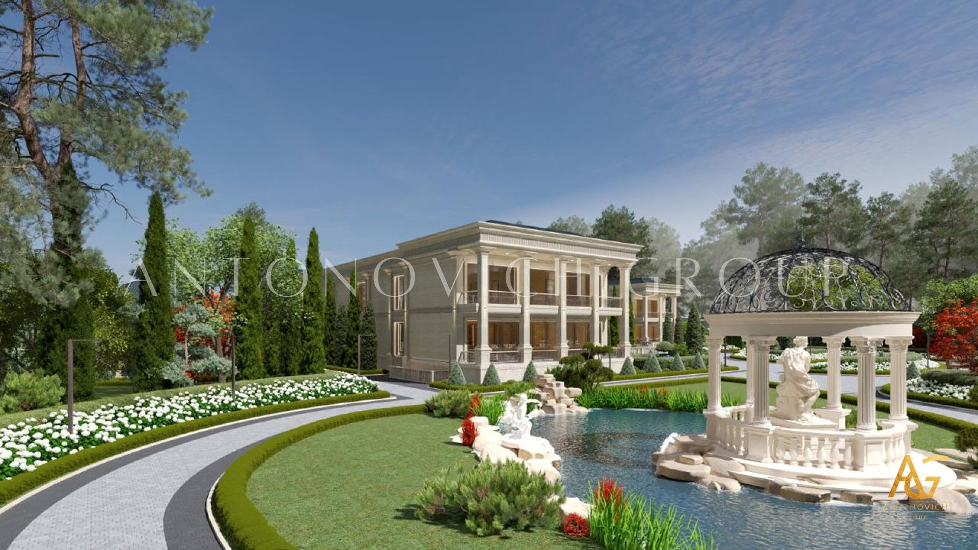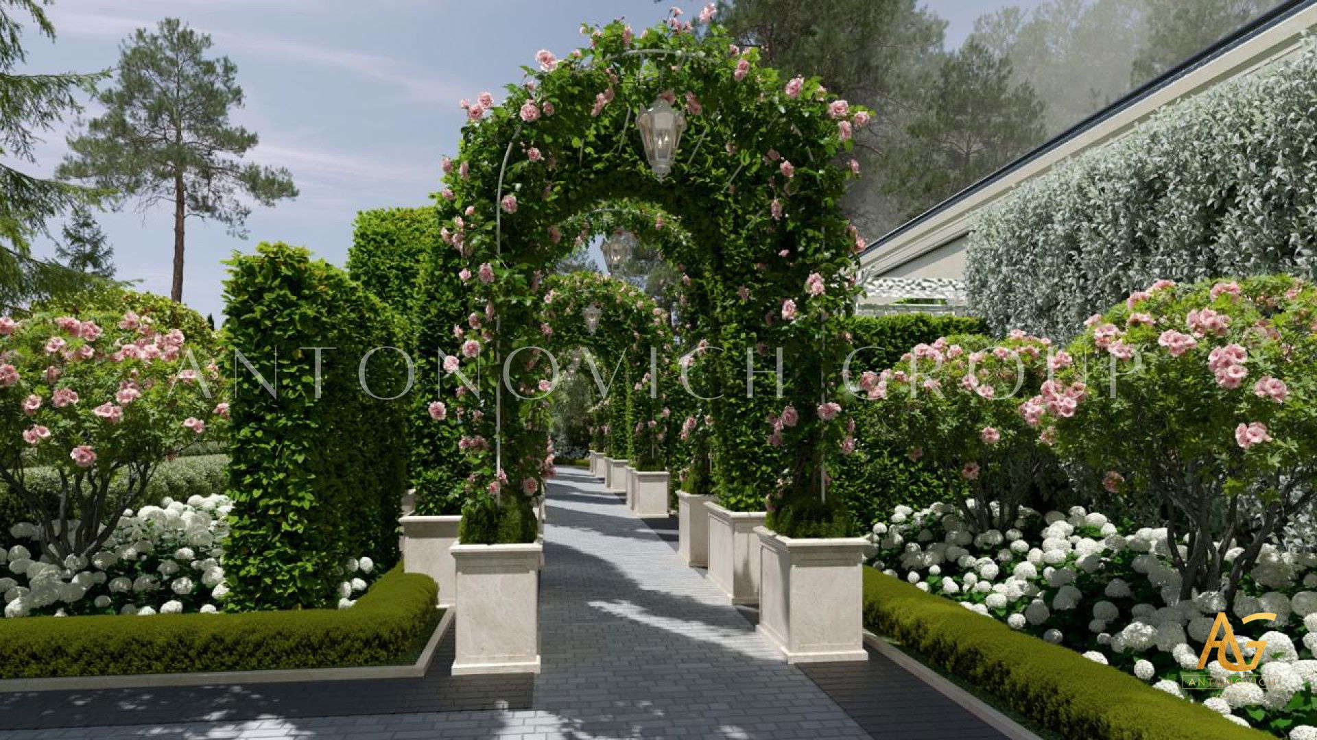 Luxury Antonovich Design accomplishes every landscape design project is intimately tied to building design and villa exterior style. The luxury villa in a modern design represents the current trends of the comfortable dwelling development. We consider each family members desires, habits, and lifestyle throughout the early phases of planning. A huge swimming pool and a large playground design represent these characteristics. The residence is owned by a young family who leads an active lifestyle.