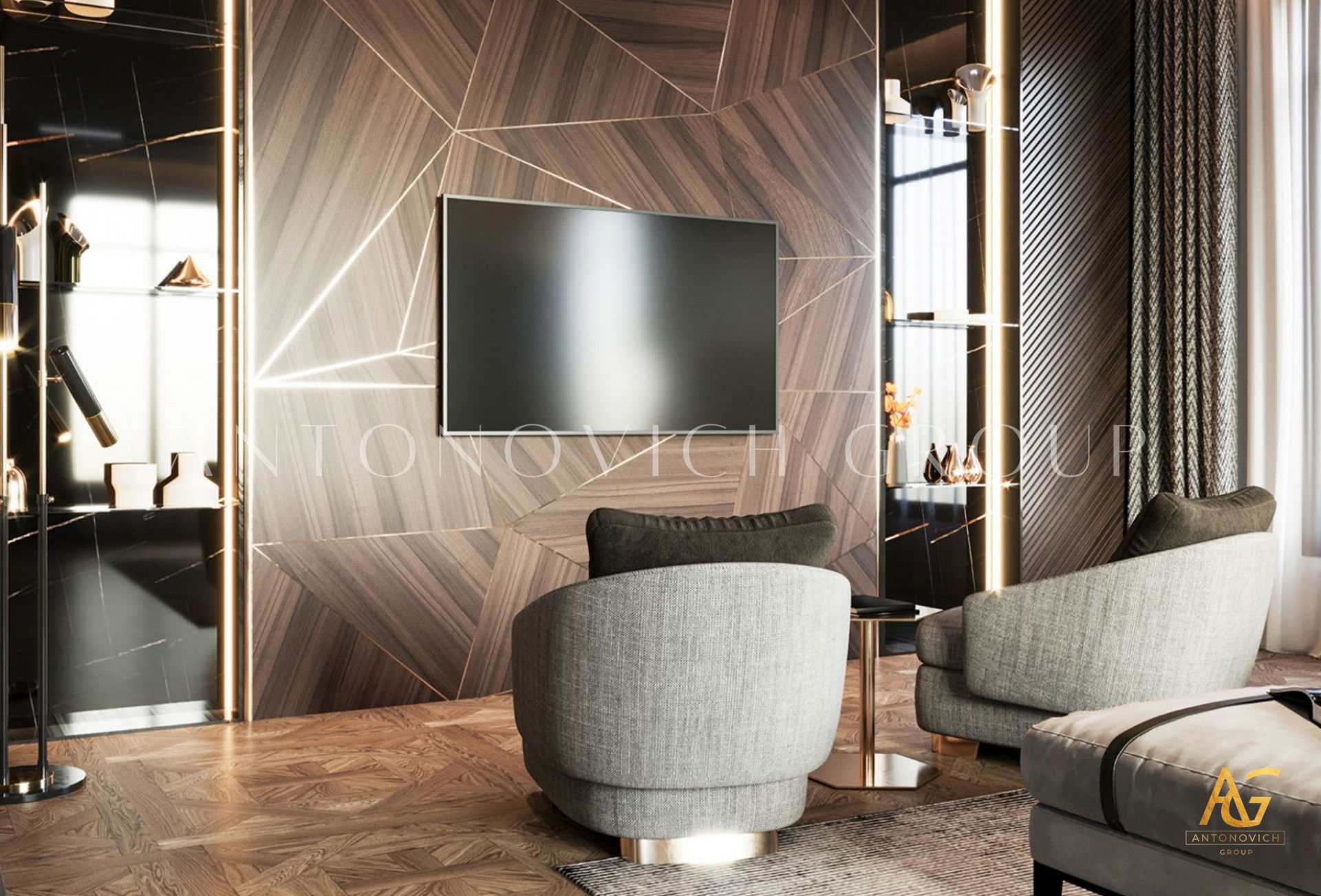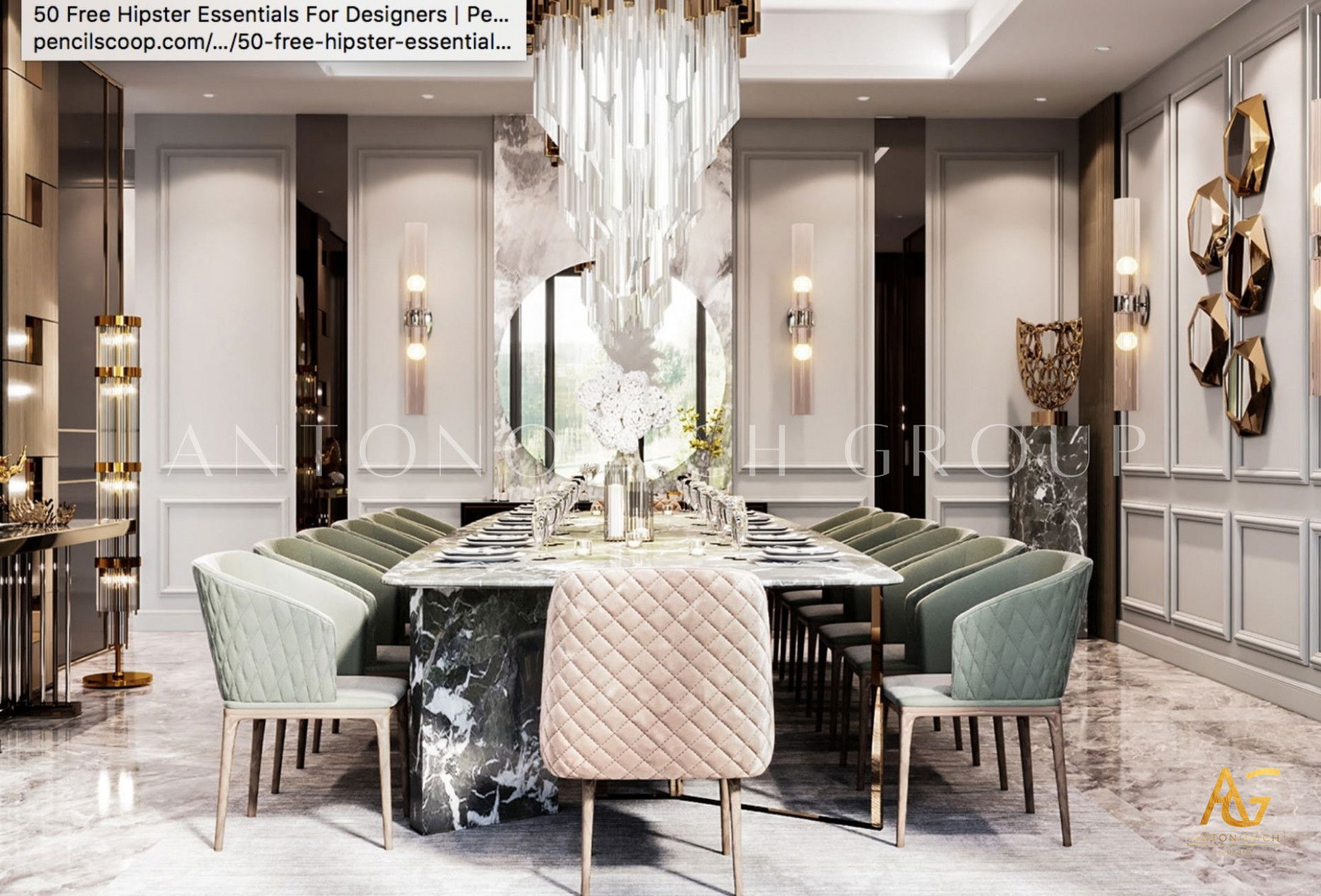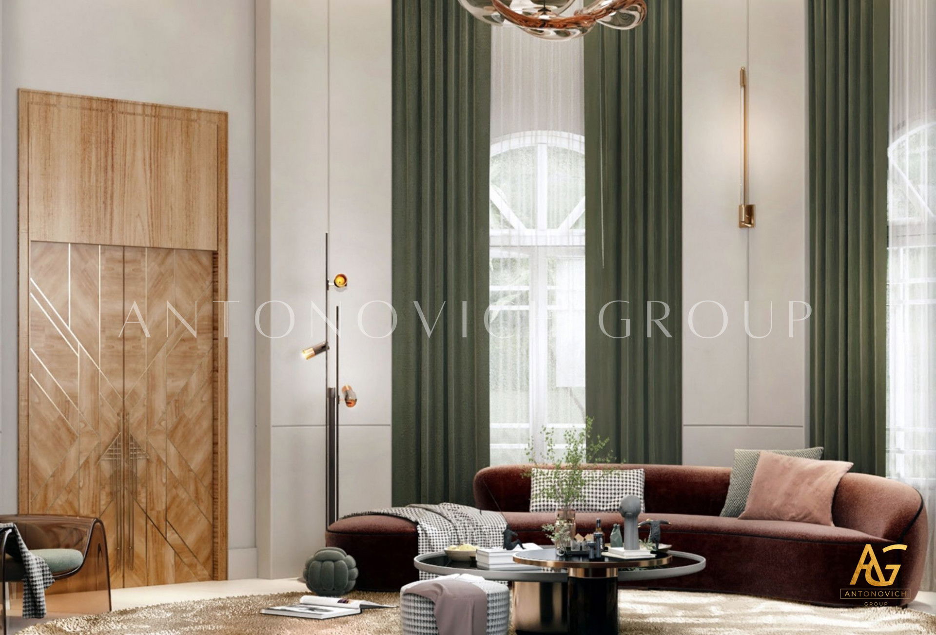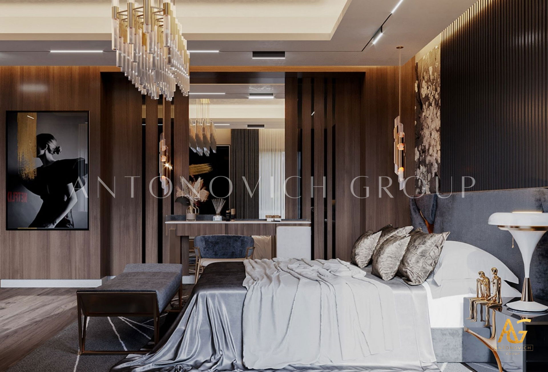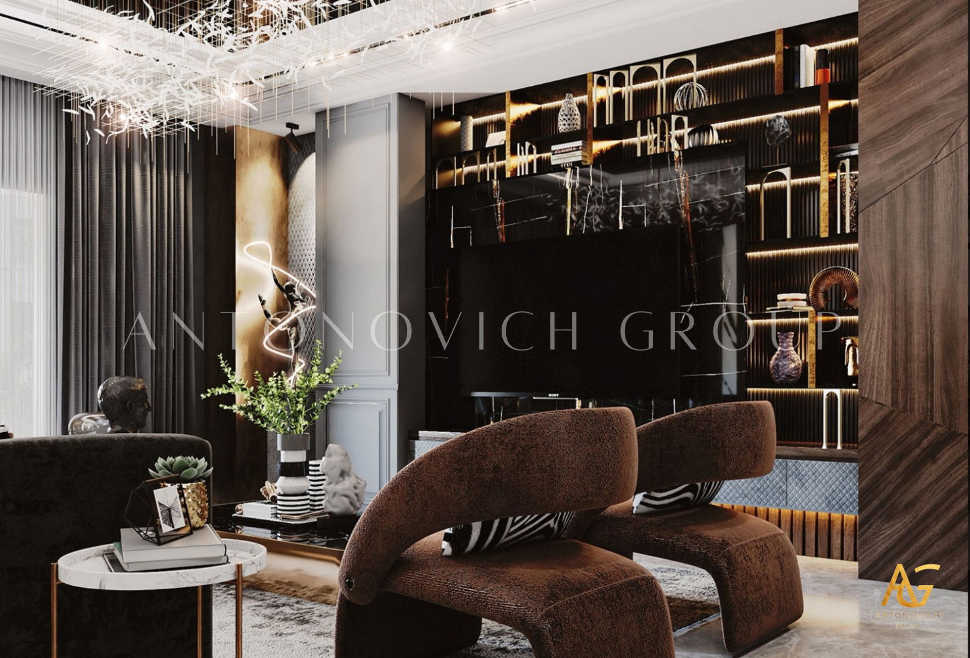Luxury Antonovich Design created it in a modern style with practical features and bright colors. After the Dubai villa design plans was completed, the customers were pleased with the results. Theyve transformed their bland high-rise into a warm and inviting house thats not just well-designed but also comfy and lavish! The living area is only a few steps away from the large dining room. Because of the tall, big windows, fitting the entire luxury Dubai villa design plans and the kitchen has been wonderful. The luxury home interior design Dubai chose to make things better.