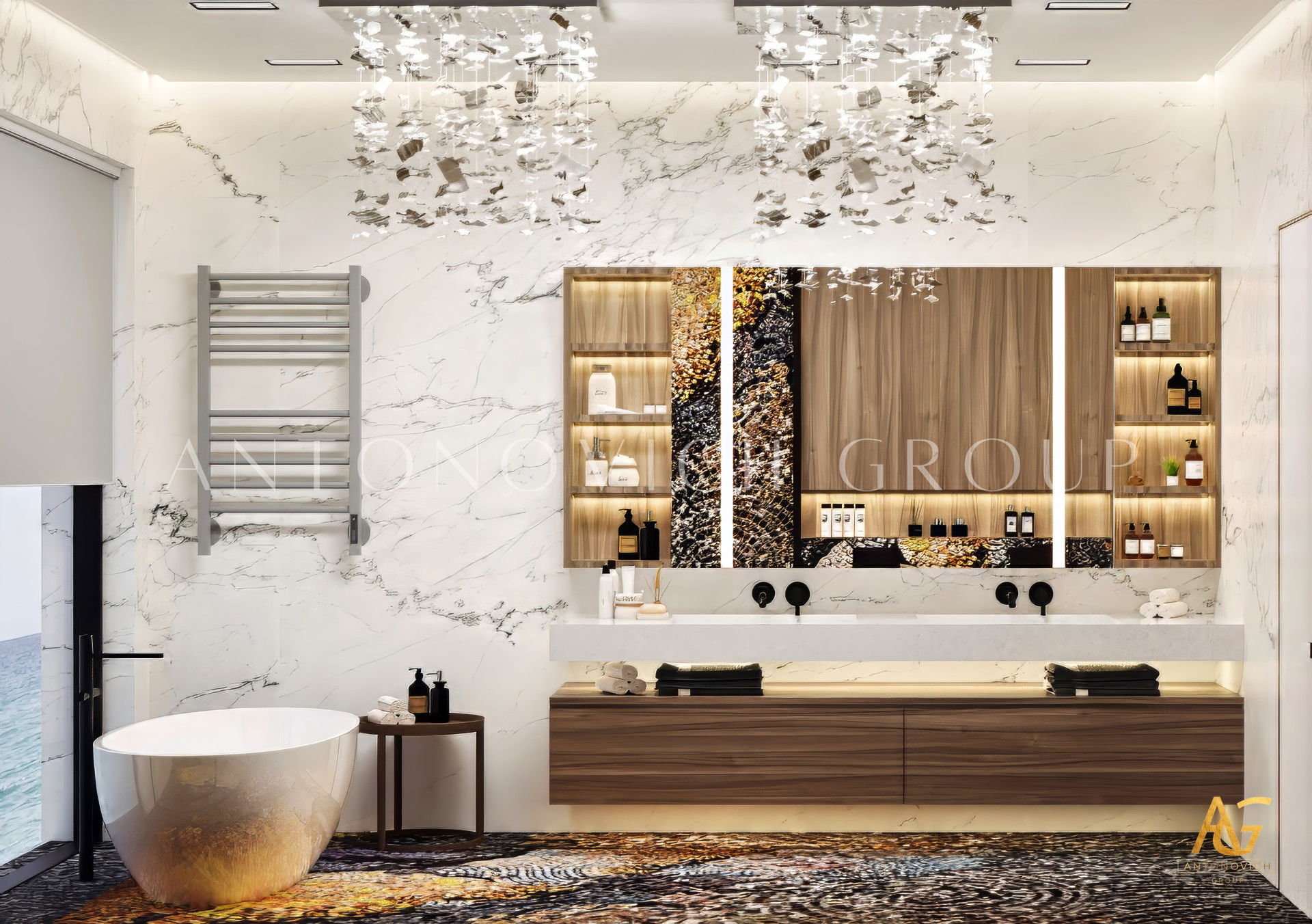 The interior decor of the other luxury bathroom is more luxurious. The room has plenty of storage space for your bath materials. The rooms feature is the stunning gold finish, which enhances the luxury bathroom interior designs overall appeal. The rooms are also large enough to accommodate your dressing up, and everything else youll need to make your luxury bathroom interior design seem more productive.