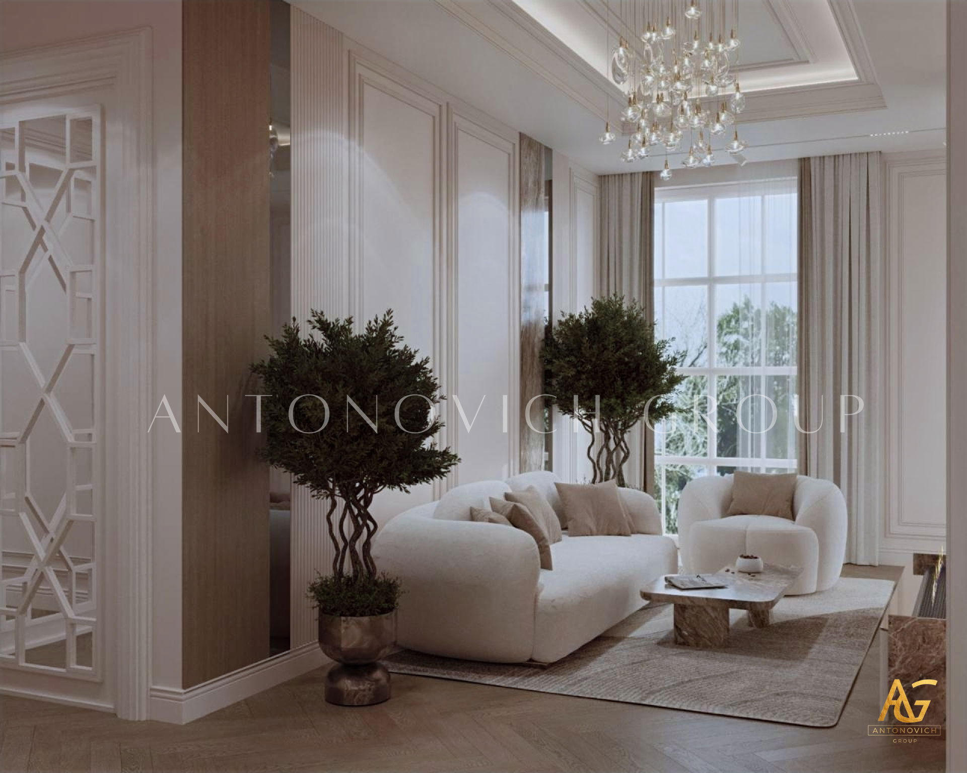 Minimalist design requires intelligent storage planning. Antonovich Group incorporates hidden wardrobes, built-in cabinetry, and concealed shelving systems that maintain a clean, uncluttered look while maximizing functionality.