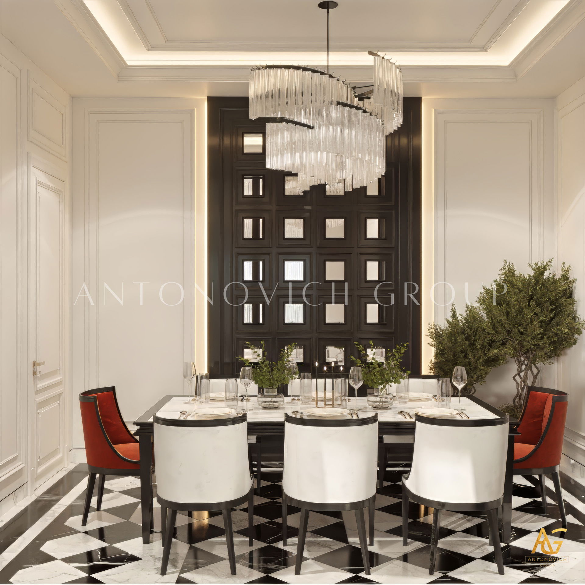 Antonovich Group believes that the dining room is the heart of family gatherings — a space that deserves both beauty and functionality. Each dining room interior design is tailored to reflect the client’s lifestyle, preferences, and architectural surroundings. Whether it’s a classic villa or a modern home, Antonovich Group ensures every detail enhances both style and comfort.