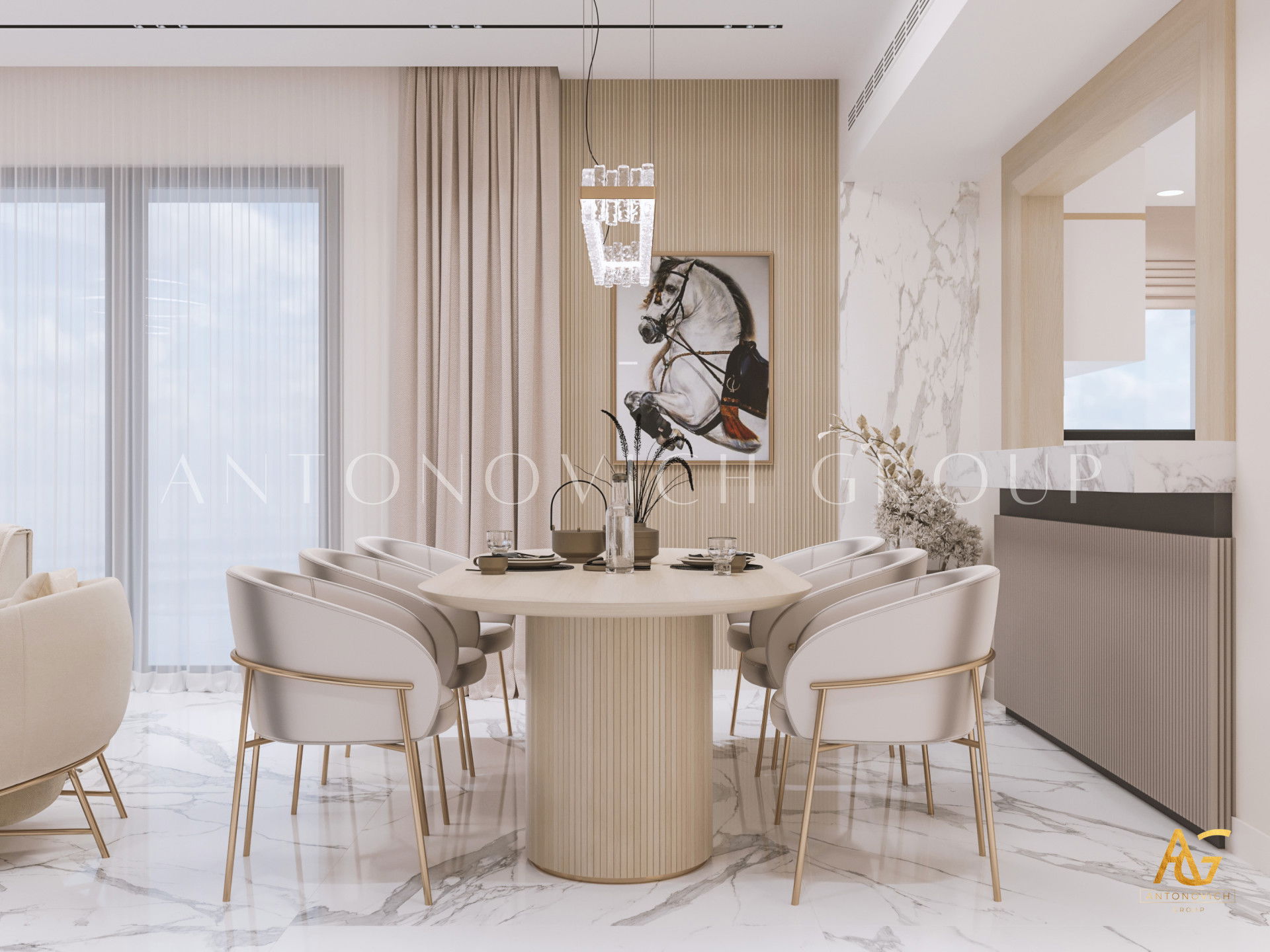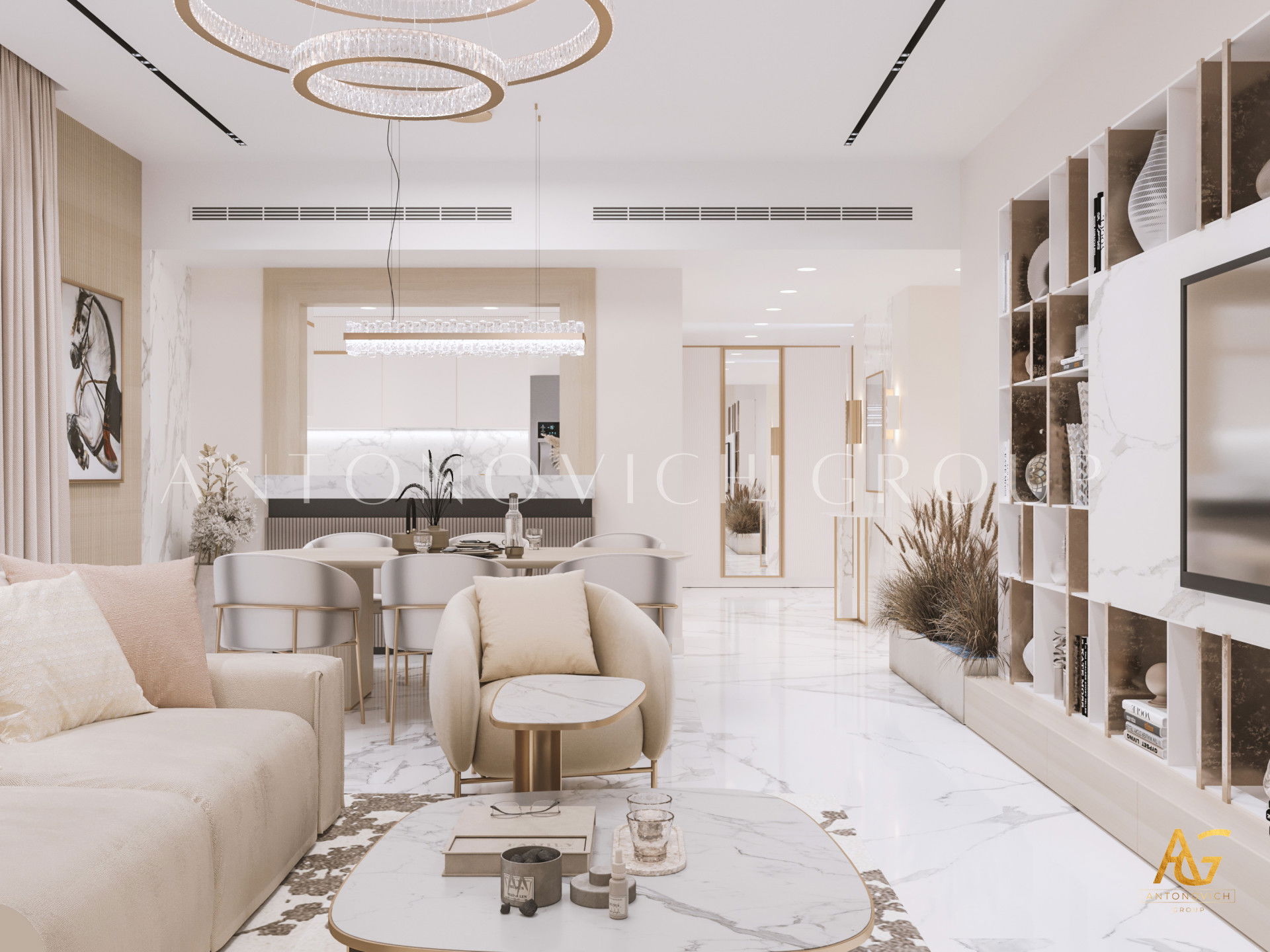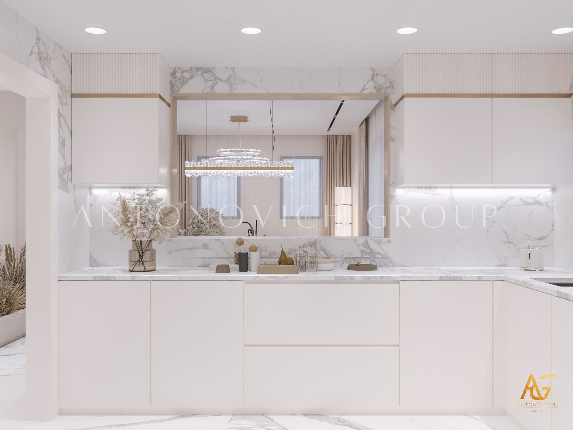 In this stunning project, the apartment interior design ideas implemented by Antonovich Group seamlessly blend functionality with opulence. The space reflects the cosmopolitan spirit of Dubai while maintaining an intimate connection to the Arabian Gulf's timeless charm.