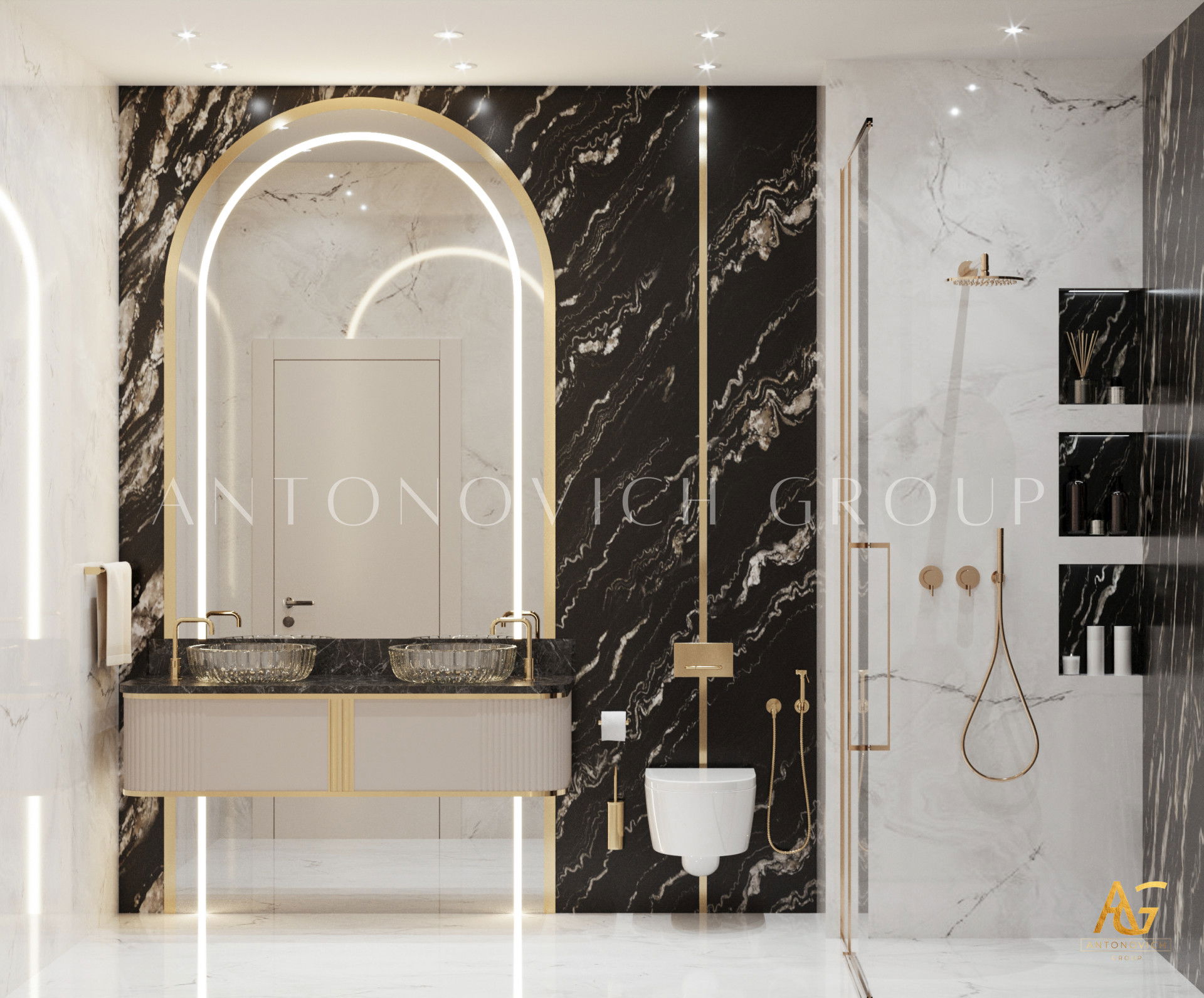 In the bedrooms, Antonovich Group has created serene retreats with custom headboards, integrated mood lighting, and premium textile selections. The master suite particularly showcases their attention to detail, featuring a boutique-style walk-in closet and an ensuite bathroom that rivals five-star hotels.