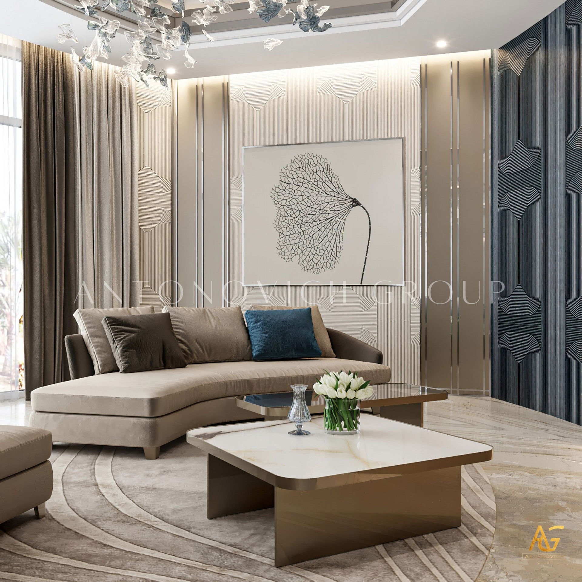 واحدة من ميزات تصاميم غرف المعيشة الفاخرة التي تصنعها مجموعة انتونوفيتش هي التصميم الفني الخاص بهم. يستوحي التصميم من الإيحاءات الكلاسيكية والعصرية، حيث يجمع بين الأناقة الخالدة والتطور الحديث. تخلق الملمس الغني، والأقمشة الفاخرة، والتشطيبات الرائعة لوحة بصرية تتحدث بشكل كبير عن الحرفية المتفوقة والاهتمام الدقيق المستخدم من قبل المصممين.