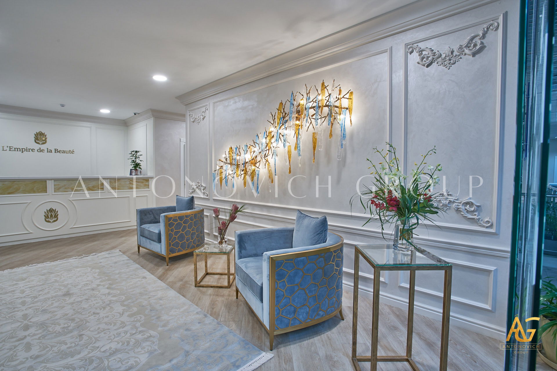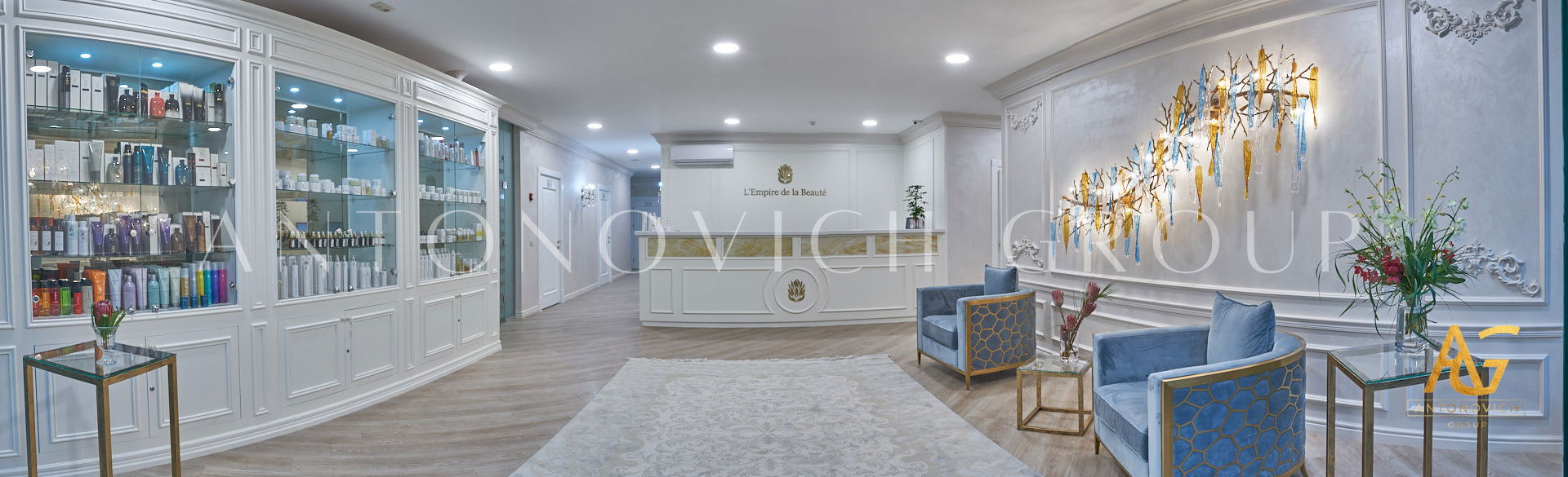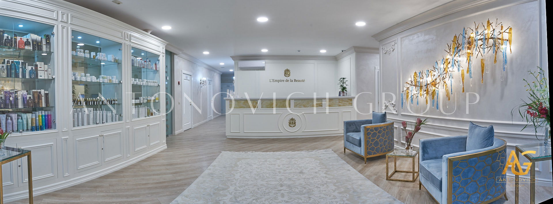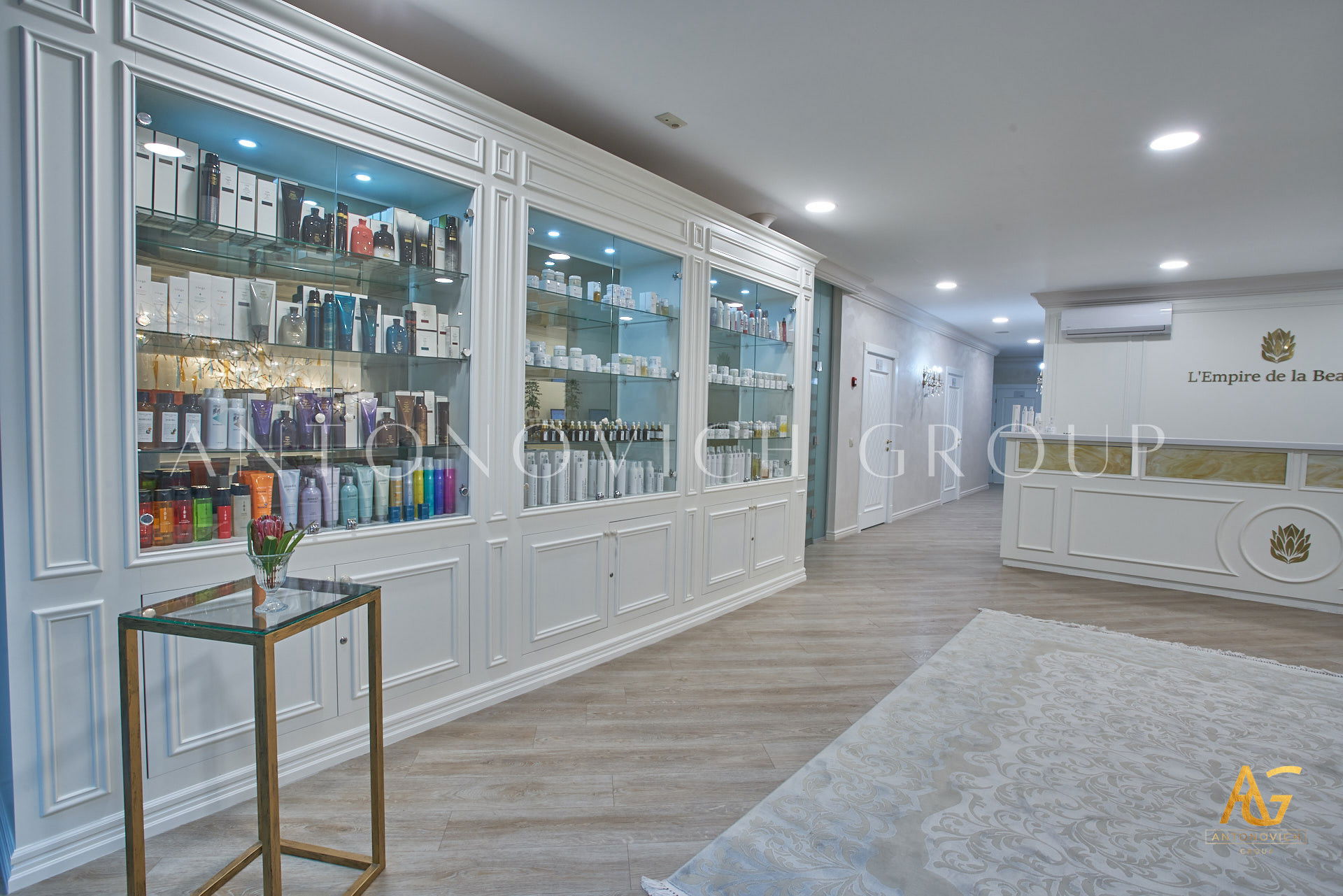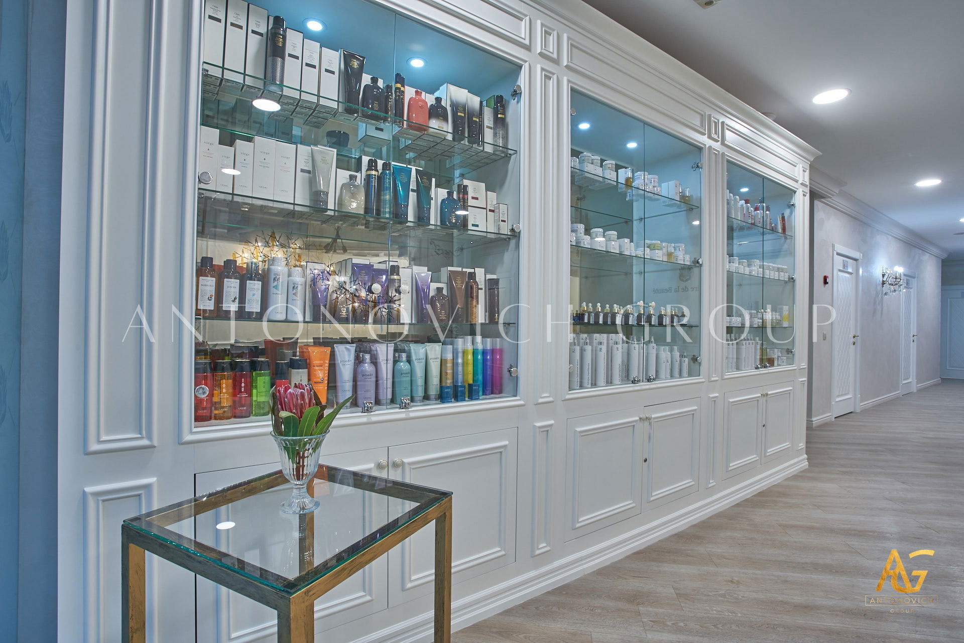 توفر لك لاكشري أنطونوفيتش ديزاين المجموعة الأكثر شمولاً من خدمات التجهيز والتصميم الداخلي في جميع أنواع المؤسسات التجارية ، بما في ذلك صالون التجميل. نحن نقدم مجموعة واسعة من الأثاث والديكور التجاري وحتى مرافق ومعدات صالونات التجميل. ولدينا شركاء دوليون يمكنهم توفير مواد عالية الجودة والصنعة لتصميم داخلي أكثر فخامة لصالون التجميل. ان هدفنا هو إبراز الأفضل دائمًا في كل مؤسسة صالون تجميل مع إنشاء التصميم الداخلي الأكثر جاذبية وإرضاءً من الناحية الجمالية. ولذا فقد ظل فريق لاكشري أنتونوفيتش ديزاين مركزا دائمًا على كل متطلبات التصميم التي ستلبي ميزانية المؤسسة. نحن نضع قيمة عالية للوقت والمال ، ونتيجة لذلك ، نؤكد أن كل تنفيذ للمشروع سيتم إنجازه وفقًا للمواعيد النهائية ومناسب للميزانية المخصصة لمشروع صالون التجميل.
