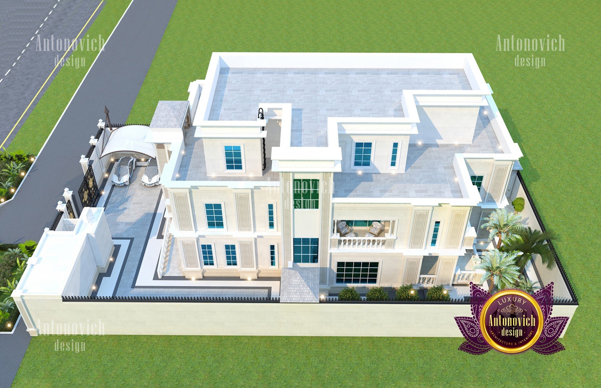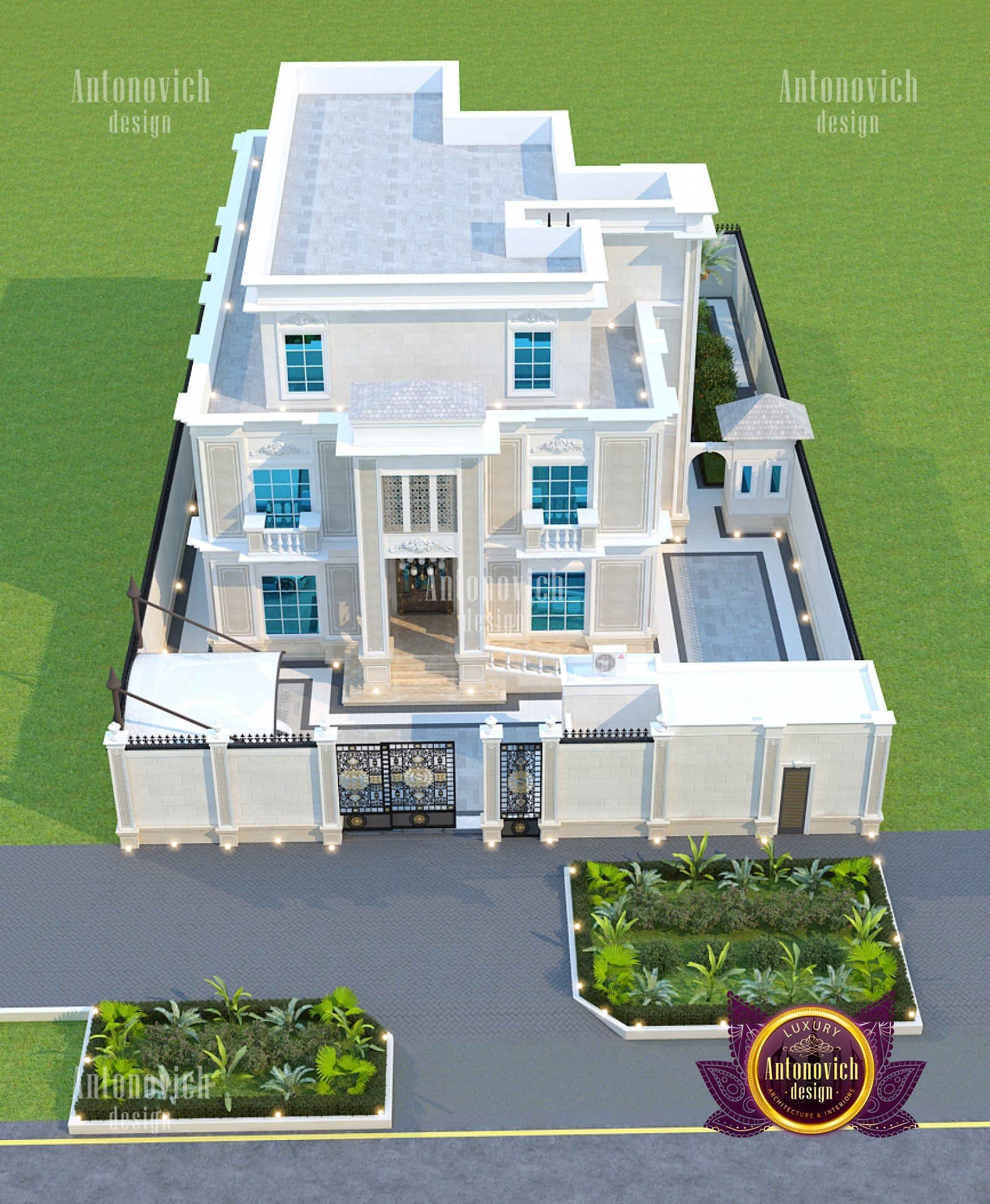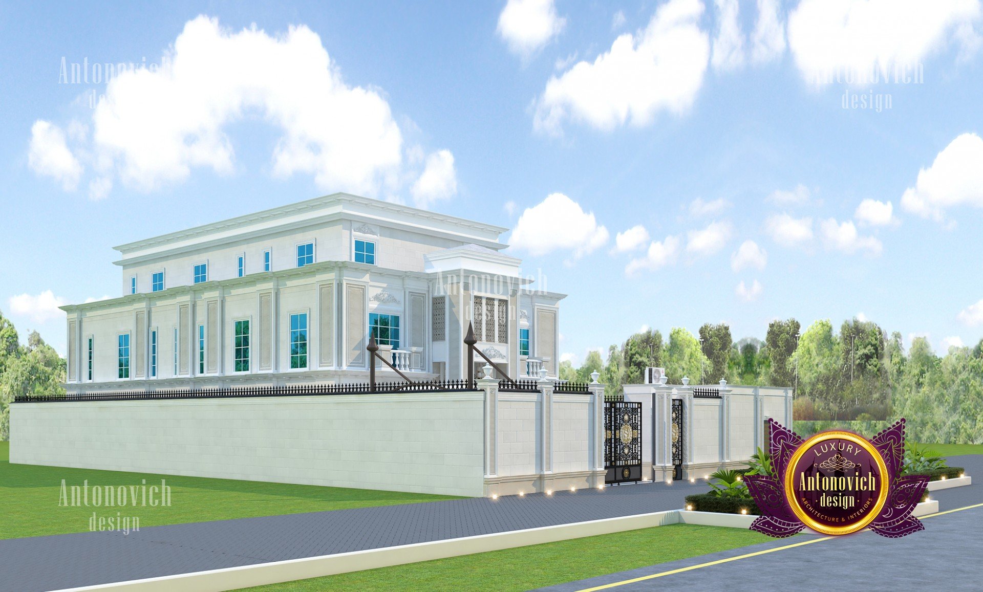 The facade design of the house primarily reflects the high status of its owner, the refined taste, and understanding of the beautiful. Architects of the studio Luxury Antonovich Design developing authors projects of elite villas use all directions of design. The facade design of the house becomes one with the landscape design, as well as with the house interior. And work on the external appearance of the building is an important part of the project of the house. The facade design, like any other design direction, is influenced by styles and fashion trends. In this project, the modern classic acquired unique beauty features, thanks to ingenious authors solutions of interior designers and architects Dubai UAE. The facade of the house is very expressive and magnificent. The exquisite elements of the building decor and the delightful play of light and shade contributes to this. Large windows visually make the building more light and graceful. A pleasant light hue of noble materials harmoniously combines with the surrounding landscape design. The smooth roof of the building along the entire perimeter is outlined by a low multileveled cornice. These decor elements are ideally in harmony with the fencing of the territory. The central gate is decorated with openwork forging. The design of the building facade is harmoniously interconnected with landscape design. Exquisite bas-reliefs, pilasters and decorative wrought-iron balconies add extravagance to the building facade. The elegant and stylish facade of the house serves as a perfect prelude to the interior story, which tells about the interior of the respectable and luxurious house.