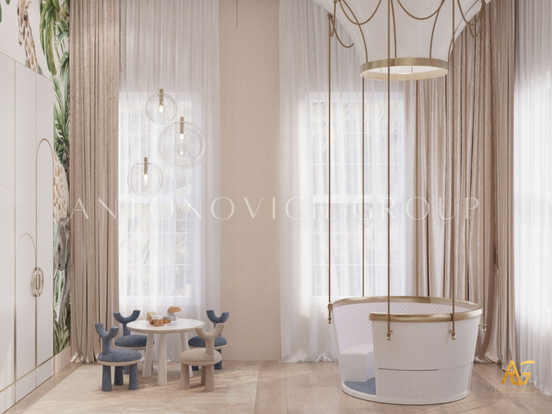 عند تصميم غرفة نوم أطفال عصرية في دبي، تركز مجموعة أنطونوفيتش على الجماليات والوظائف العملية في آنٍ واحد. يتم اختيار كل عنصر بعناية، بدءًا من الأثاث وصولًا إلى تخطيط المساحة، لخلق أجواء متناغمة وملهمة.