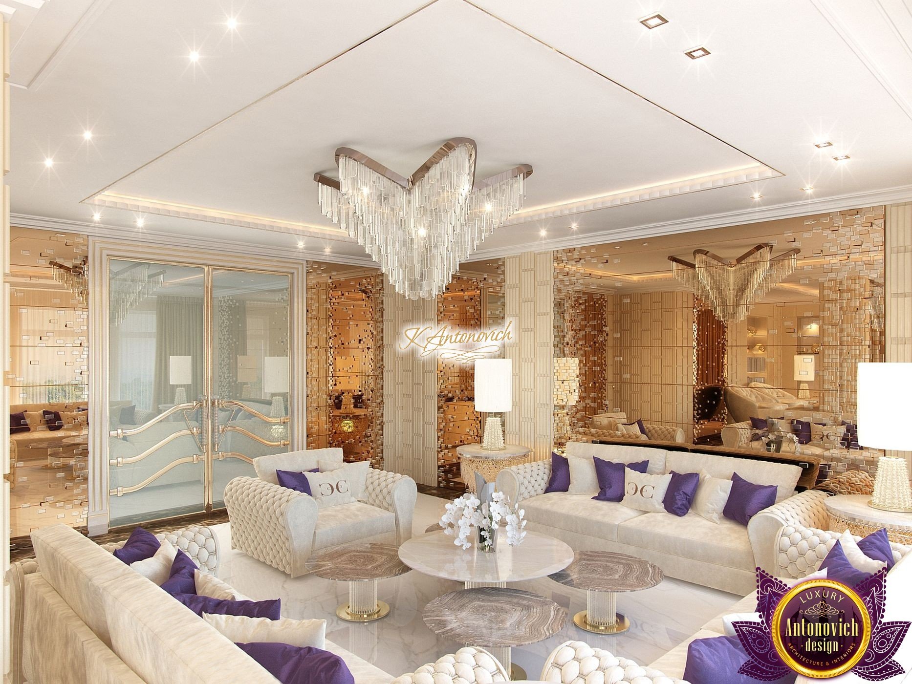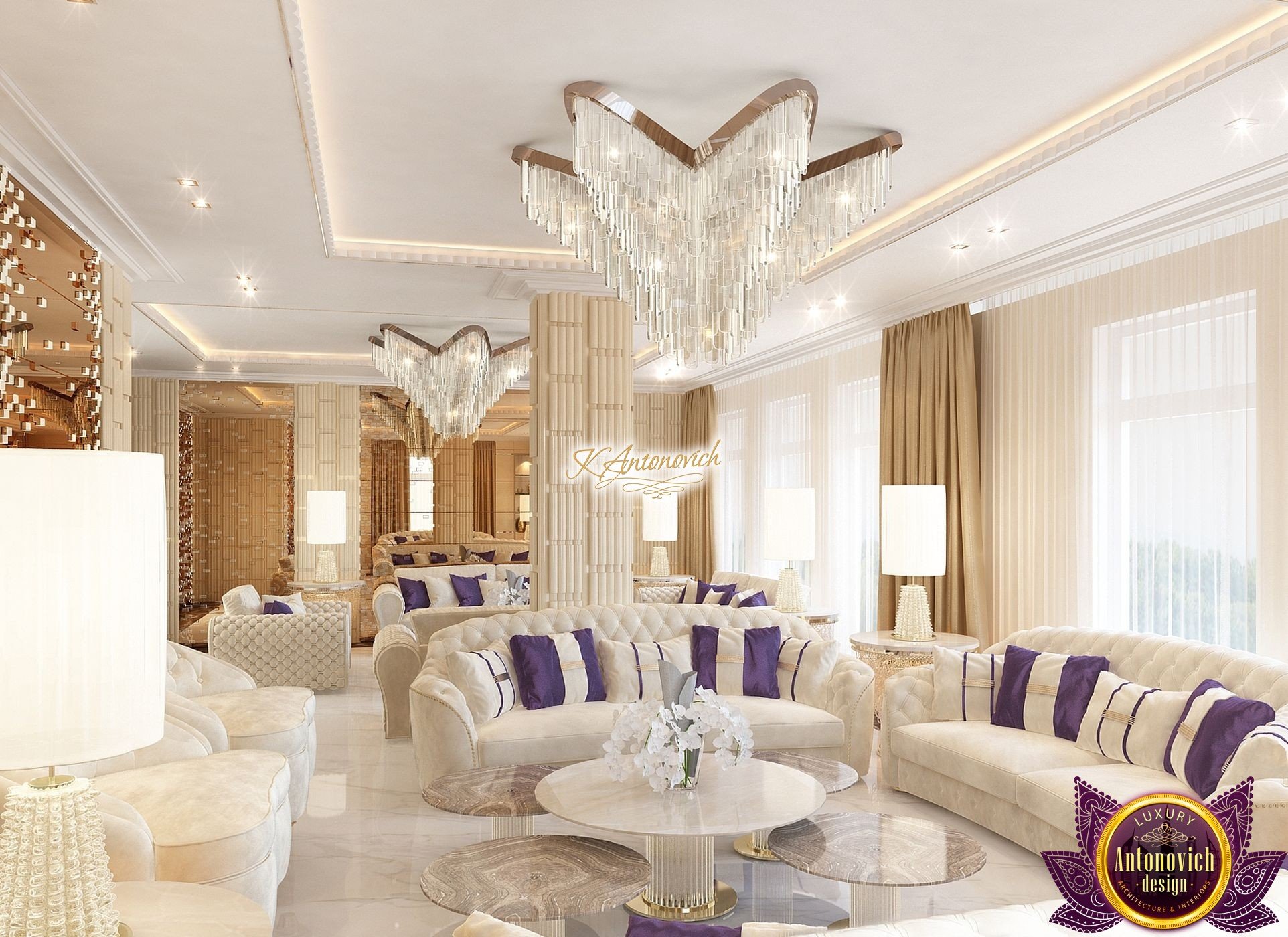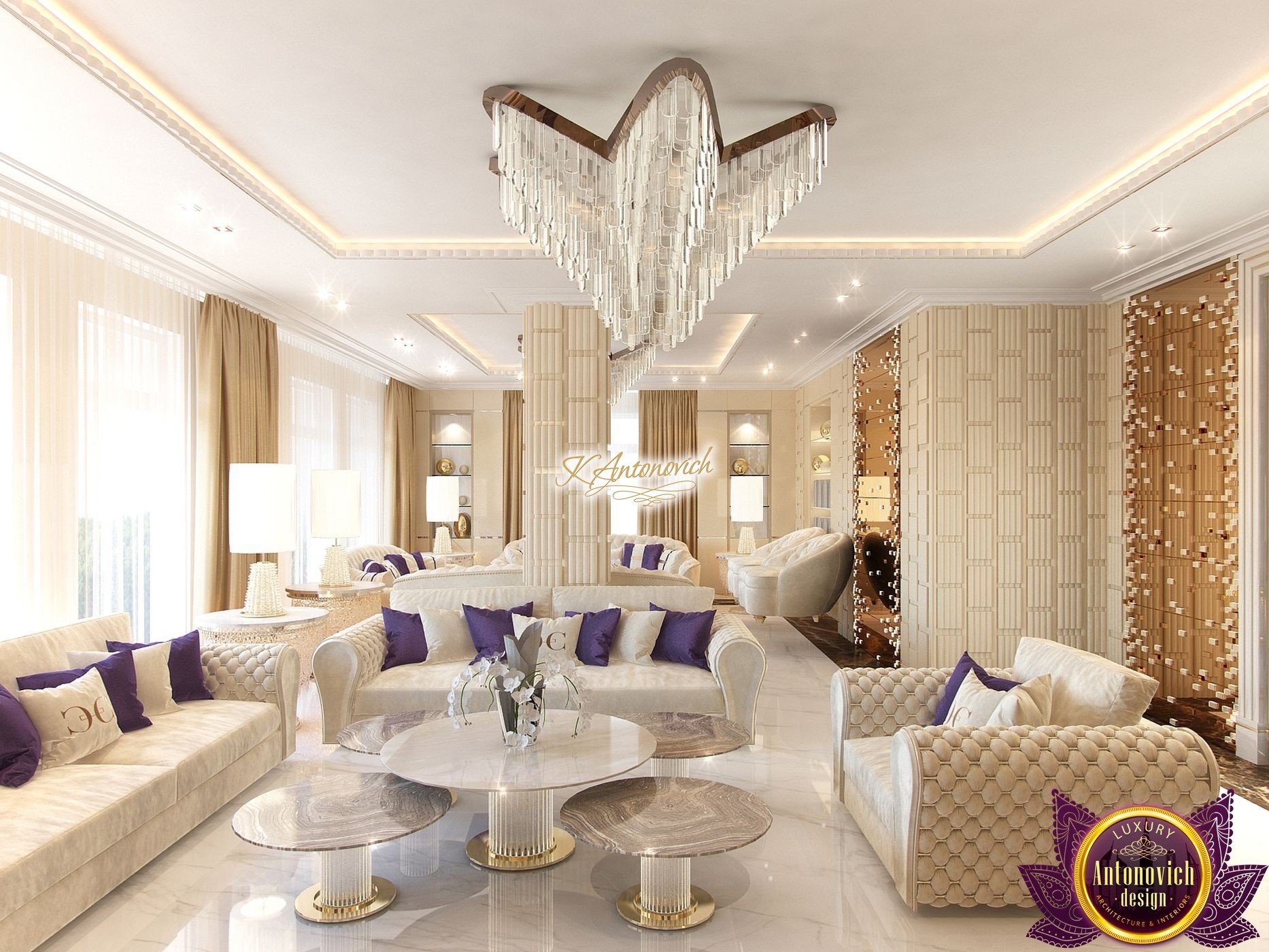 التصميم الداخلي لغرفة المعيشة على طراز فن الآرت ديكو يثير الإعجاب بصورتها المشرقة والفاخرة. ينشئ مصممو المناطق الداخلية من الاستوديو لاكشري انتونوفيتش ديزاين تصميمات داخلية تمثل بداية ظهور اتجاهات الموضة الجديدة. في هذه الغرفة الفسيحة ، يتم الجمع بين الطراز الكلاسيكي الحديث بأسلوب ارت ديكو بشكل متناغم ، وقد أولى مؤلفو المشروع اهتمامًا خاصًا إلى ديكور الجدران. توجد هنا لوحات لامعة أصلية مع عناصر من النحاس الأصفر ، ولا يزيد اللمعان مع تأثير المرآة من المساحة بصريًا فحسب ، بل يجعلها أيضًا أنيقة بشكل خاص ، وتنقسم غرفة المعيشة الكبيرة بشكل مشروط إلى منطقتين ، ولتقسيم المناطق ، استخدم مؤلفو المشروع أعمدة مربعة ذات تيجان بيضاء. أصبح الأثاث المنجد أحد الزخارف الرئيسية للديكور الداخلي لغرفة المعيشة ، حيث تم تنجيد الأرائك والكراسي بذراعين من مخمل حريري أنيق بلون كريمي حليبي ، وعلى خلفية هذه الخلفية ، تبدو الوسائد الحريرية الأنيقة للغاية بألوان أرجوانية غنية. تعتبر زخرفة النوافذ وتصميم الأرضيات من أكثر الحلول اقتضابًا والتي تم تصميمها لإبراز بقية عناصر الديكور الأكثر إشراقًا. النوافذ الكبيرة مُزينة بستائر مصنوعة من الحرير أحادي اللون الفاخر من ظلال الكراميل. اتضح أن الداخل دافئ ومشمس للغاية ، وذلك بفضل مجموعة الضوء من الظلال من الأبيض اللبني إلى الذهبي. أصبحت عناصر الإضاءة لهجات مشرقة تؤكد على أسلوب فن الآرت ديكو ، وتم تزيين السقف بثرتين أنيقتين. وطاولات أنيقة مع مصابيح مزينة بقلادات كريستالية رائعة. يمنح الرخام الأبيض على الأرض مع عروق طبيعية جميلة المساحة الداخلية لغرفة المعيشة إضاءة بصرية وسهولة.