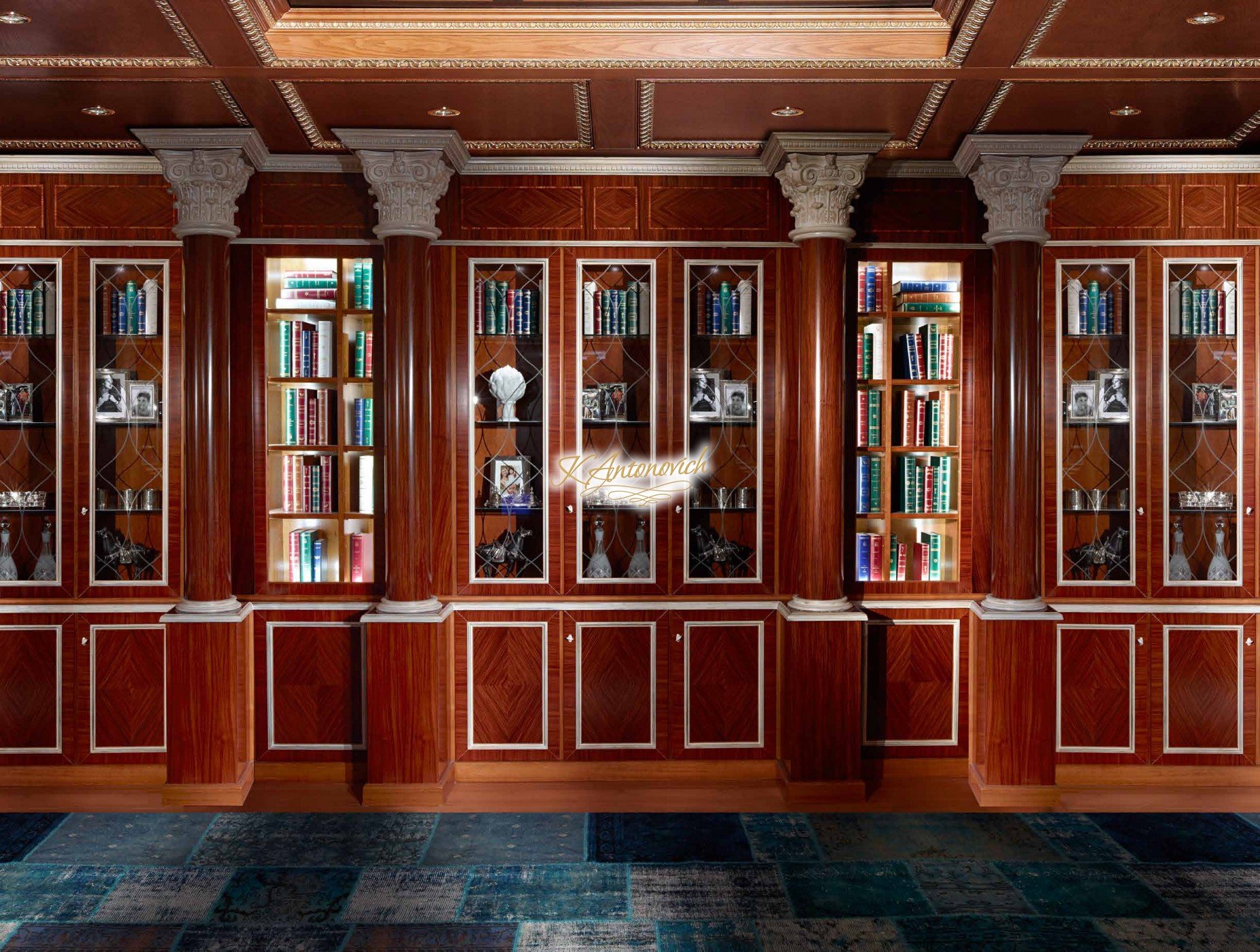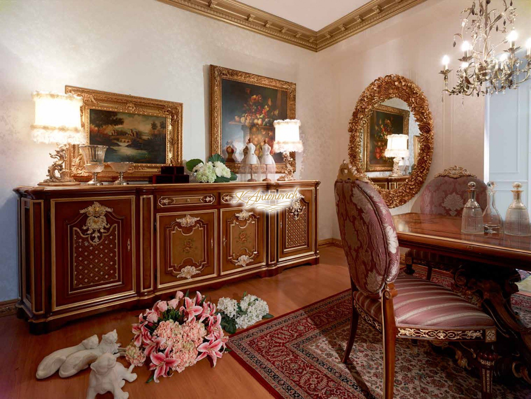الحياة جميلة مليئة بالانتصارات والنجاحات والإنجازات. هذا ما أراد المصممون الداخليون في استوديو لاكشري أنتونوفيتش ديزاين التعبير عنه ، حيث ابتكروا هذا التصميم لغرفة المعيشة بأسلوب كلاسيكي ، بعد كل شيء ، حقق أصحاب منزل النخبة نجاحًا كبيرًا وتمتعوا بمكانة عالية. عش تراثي خاص به ، والذي سيسعد بجمال ورفاهية أكثر من جيل واحد من العائلة ، وهو النمط الكلاسيكي هو طريقة عالمية لخلق تصميمات داخلية راقية لن تخضع لتغيرات الوقت أو الأذواق. أصبحت غرفة المعيشة الفاخرة امتدادًا طبيعيًا للداخل الداخلي للقاعة الأنيقة والرائعة. هنا ، قام المصممون الداخليون ببراعة بدمج جميع العناصر التقليدية للطراز الكلاسيكي في الصورة العامة للغرفة المريحة والدافئة. يبدو السقف أكثر اقتضابًا وضبطًا. سطحه الناعم الأبيض الثلجي مزين بوردة من الجص وثريا على الطراز الكلاسيكي ، السقف محاط بقالب عريض مع موجة من الزخارف الجصية ، وهي مغطاة بورق الذهب ، وخط الإضاءة الإضافي يصنع السقف أكثر اتساعا. بشكل عام ، يستمر ديكور الجدران بزخارف زخرفة القاعة ، بالإضافة إلى وجود تفصيل واحد معبر للغاية في غرفة المعيشة. هذه لوحة جدارية فاخرة مع لوحة فنية ، مؤطرة بقوس ولوحات قماشية عاكسة. مشهد فينيسي رومانسي جلب إلى الداخل مزاجًا خاصًا من الوجود في إيطاليا الجميلة. لم يتجاهل مؤلفو المشروع أيضًا عنصرًا تقليديًا في غرفة المعيشة الكلاسيكية ، مثل الموقد الرخامي. هذا الرمز الجميل لدفء الموقد محاط برخام جميل من اللون البني مع نسيج طبيعي ، الباركيه النخبة على الأرض بنمط كلاسيكي وسجادة فارسية طبيعية تجعل صورة الفخامة والراحة تكتمل في ديكورها النبيل.