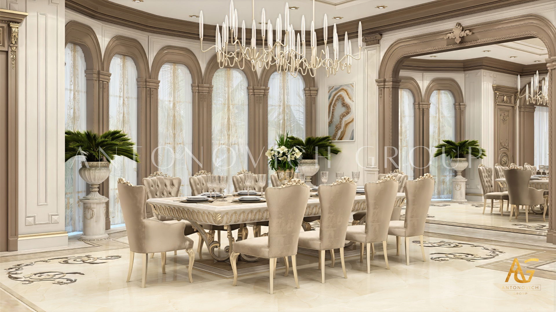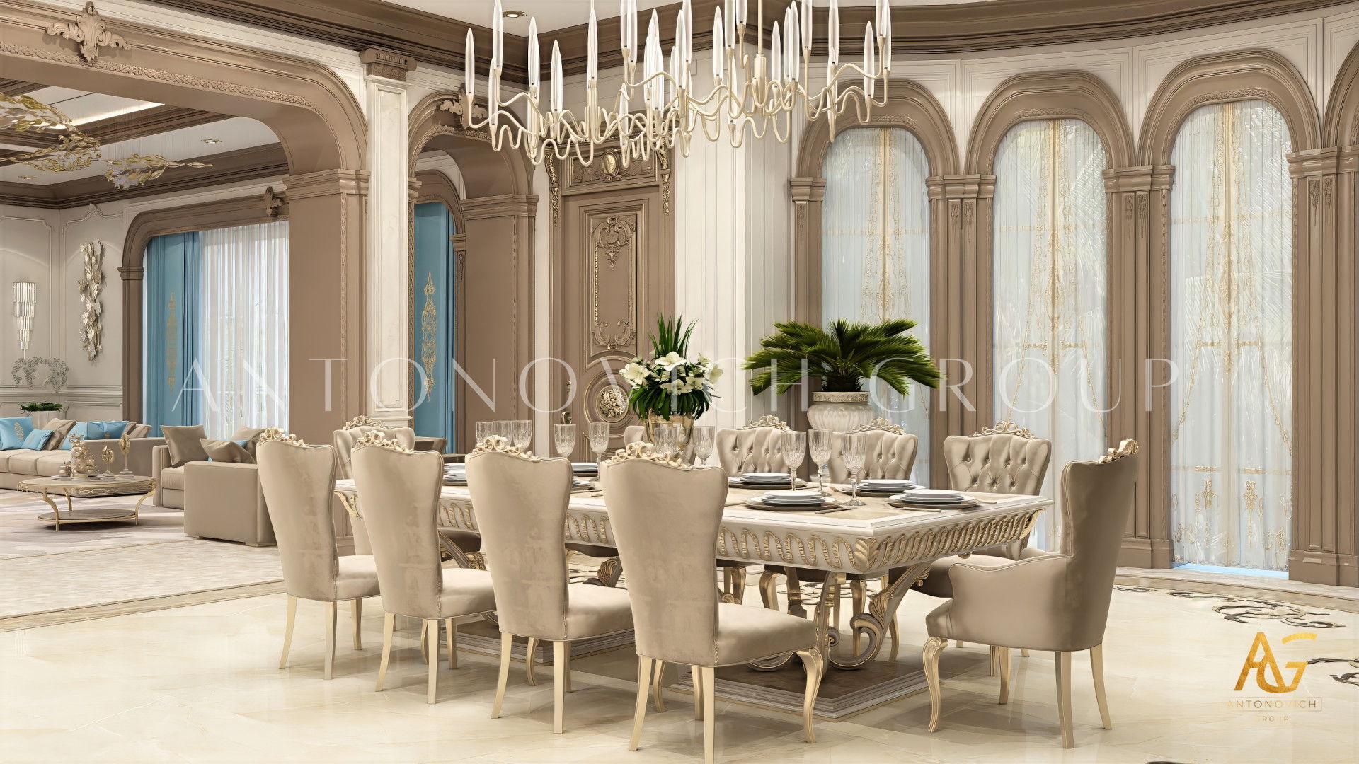 تم الجمع بين نظام الألوان الداخلي واختيار الأثاث بشكل مثالي بواسطة لاكجري أنتونوفيتش ديزاين. اختار المتخصصون لدينا نمط الغرفة الصحيح الذي يتناسب تمامًا مع الذوق الفردي للمالك. ألوان الباستيل المذهلة التي يتم تقديمها في ظلال من اللون البيج والبني الفاتح مع مزيج من العناصر الذهبية في العناصر الزخرفية ، وقطع الأثاث الناعمة والرائعة ، والأرضيات والزخارف الرخامية ، والثريا الكريستالية الرائعة - كل هذا ما نسميه التصميم الداخلي الرائع. واحدة من ابتكاراتنا - هي أجزاء طاولة طعام مبطنة ناعمة وقضيب خلفي.