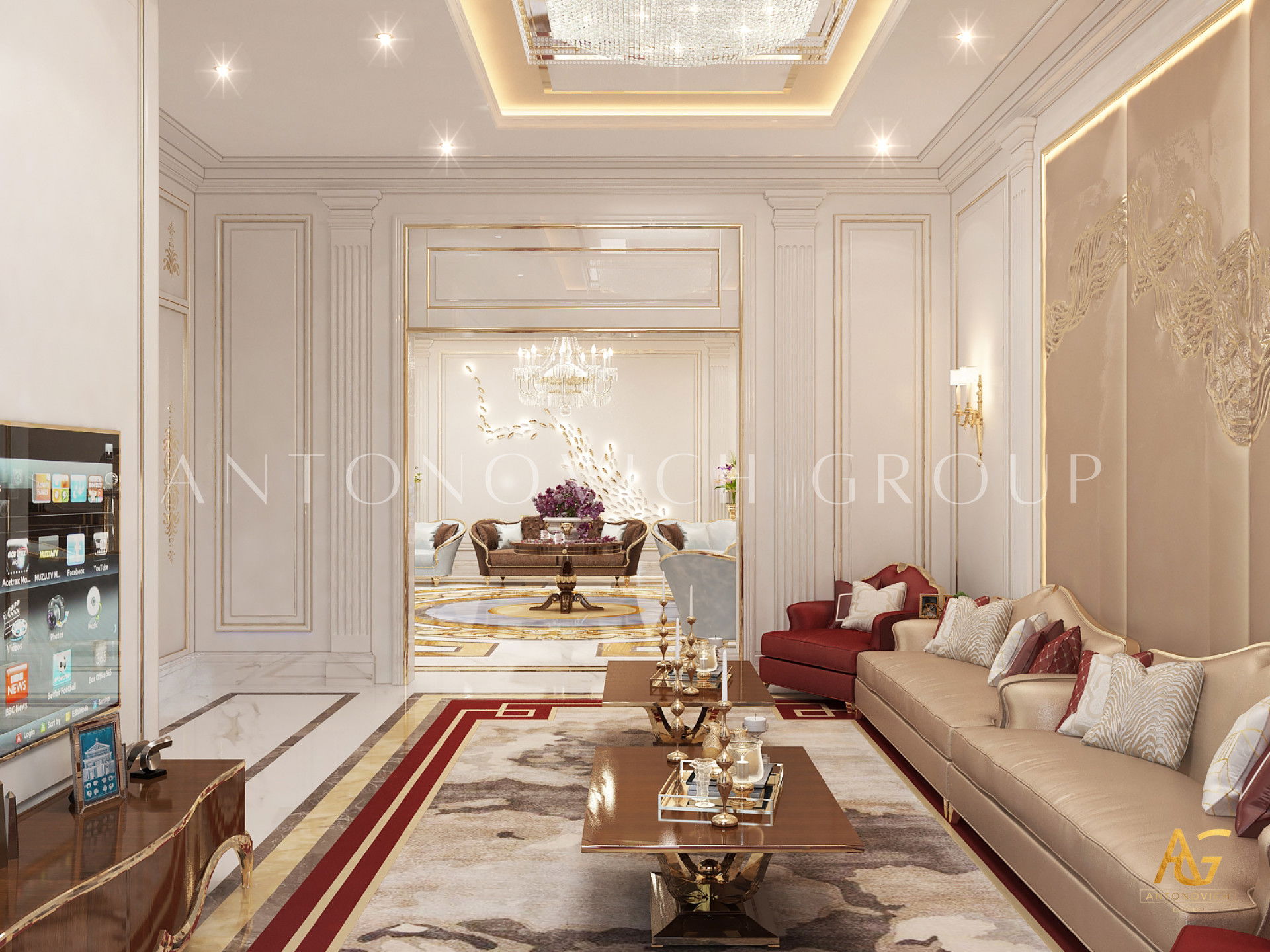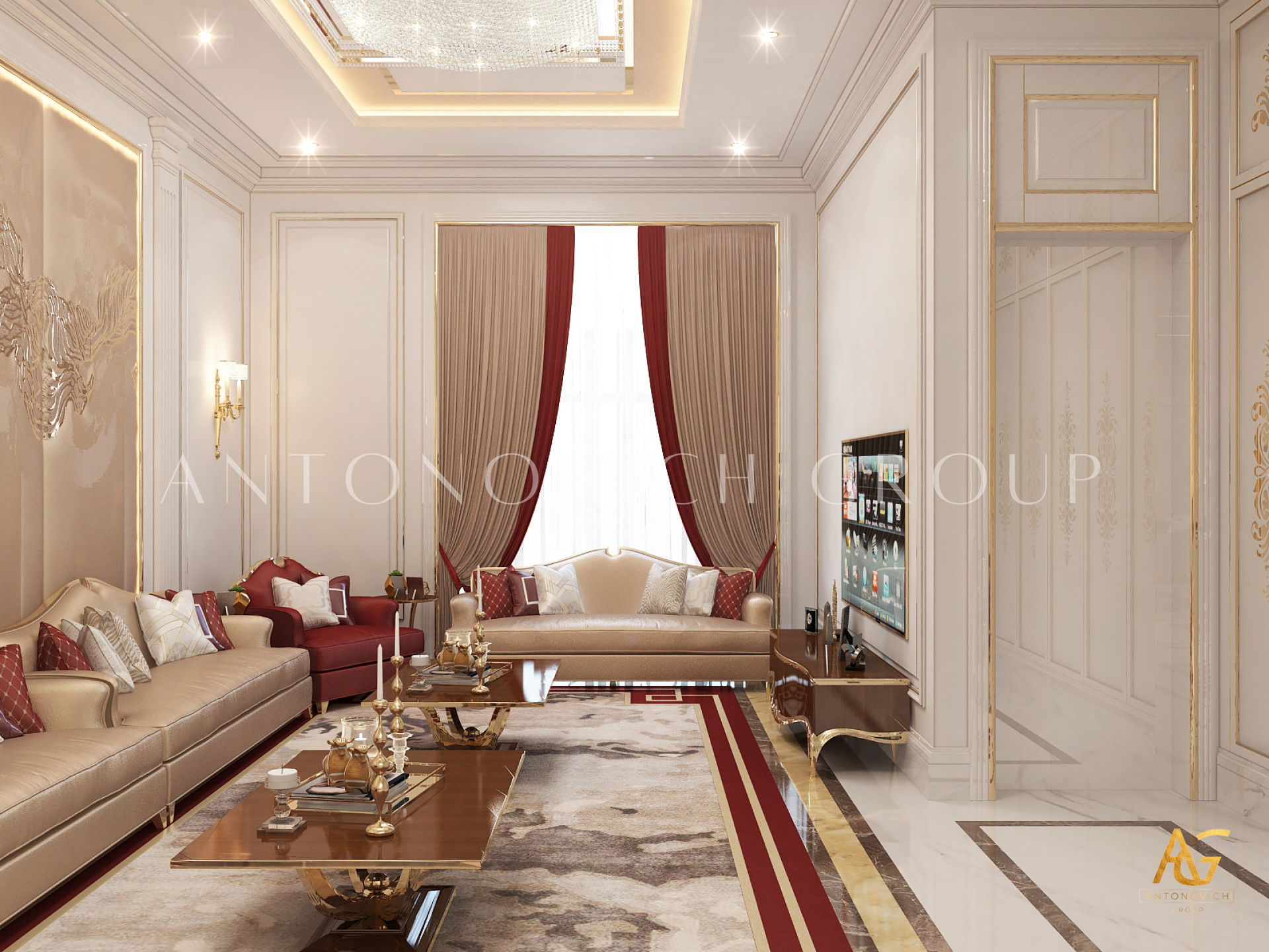 عندما تري غرفة المجلس هذه لاول مرة ستشعر بأنها تنضح بالأناقة والسحر. فإنه يحتوي على لمسات وأنماط أنيقة بشكل رائع. وبالطبع سترغب العديد من العائلات في الحصول على تصميم مجلس فاخر مثل هذا التصميم بسبب تفاصيله الجمالية والأنيقة. حيث إن نظام الألوان الأنيق والدقيق يتميز بالرقي والهدوء والجمال والصقل. مع الثريا والإضاءة والتي تساعد على تحسين التصميم الداخلي المودرن لغرفة المجلس الفخم.
