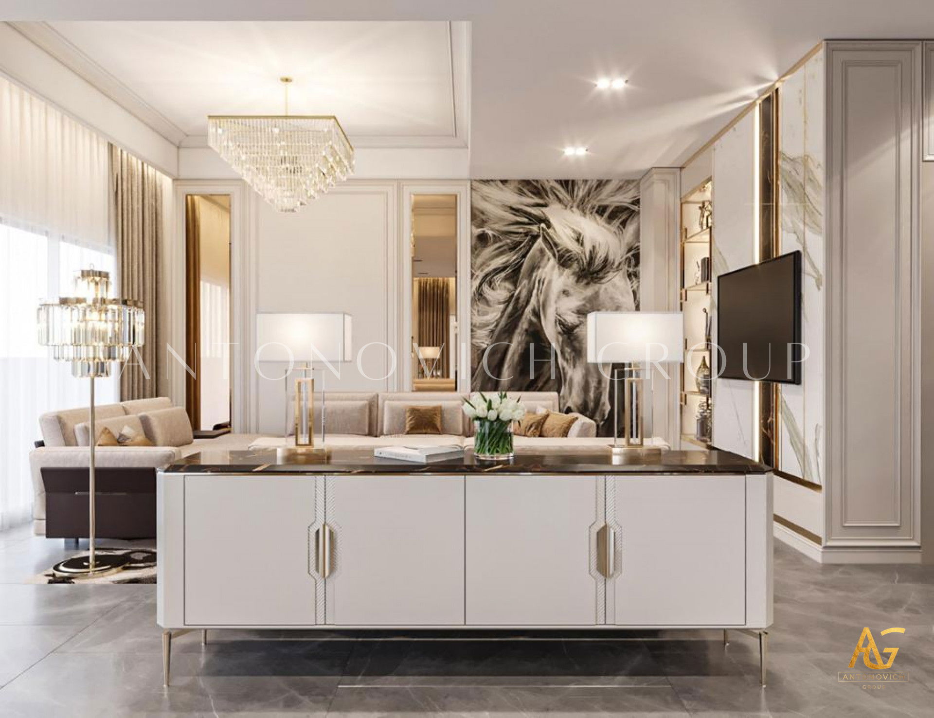 تفخر مجموعة أنتونوفيتش بتقديم أحد إبداعاتها الرائعة للتصميم الداخلي والإنتاج الكامل للأثاث في وحدة الفلل الفاخرة هذه في داماك هيلز-تاون هاوس. نظرًا لأننا نقدم تصميمًا داخليًا كاملًا وتطبيقات ملائمة ، تضمن مجموعة أنتونوفيتش دائمًا تحقيق التصميم الداخلي الأكثر روعة الذي يناسب شخصية كل عميل وأسلوب حياته. تعد مجموعة أنتونوفيتش واحدة من أفضل شركات التصميم الداخلي المشهورة جدًا بتقديمها تصميمًا مخصصًا في كل تصميم وديكور للأثاث ينفذه الفريق لكل مشروع تصميم فاخر .