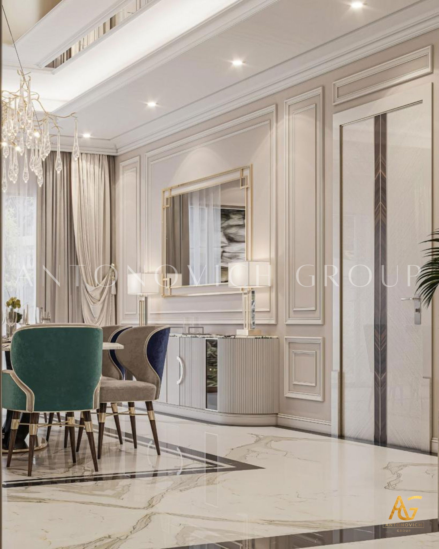 في هذه الفيلا ذات التصميم الداخلي الفاخر والعربي الحديث في الحي الأول - محمد بن راشد ، أنشأت مجموعة أنتونوفيتش أروع بيئة للتصميم الداخلي. ابتكر فريق التصميم بيئة عصرية بشكل استثنائي ، مليئة بأحدث مجموعات المصممين من الإكسسوارات والديكورات المنزلية ، باستخدام مزيج مثالي من التصميم الفاخر والحداثة. اختار فريق التصميم أثاثًا رائعًا مصنوعًا من مواد من الدرجة الأولى وبأفضل التشطيبات. حيث تشتهر مجموعة أنتونوفيتش على نطاق واسع بتقديمها الأثاث الأكثر إبداعًا وروعة بالإضافة إلى التصميمات المخصصة ، والتي تم تطبيقها جميعًا بدقة في هذا التصميم الداخلي الرائع للمنزل في المنطقة الأولى -محمد بن راشد.