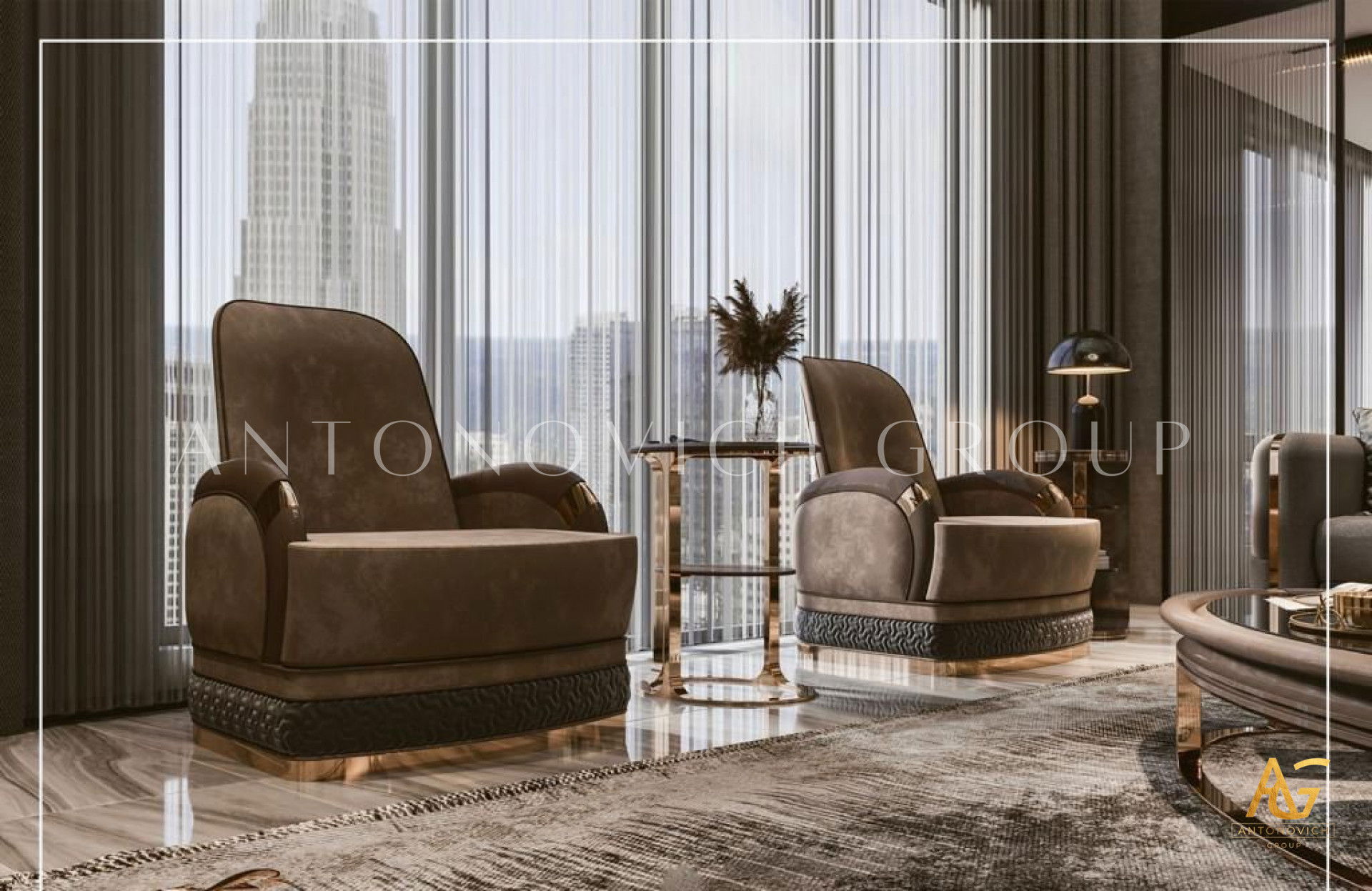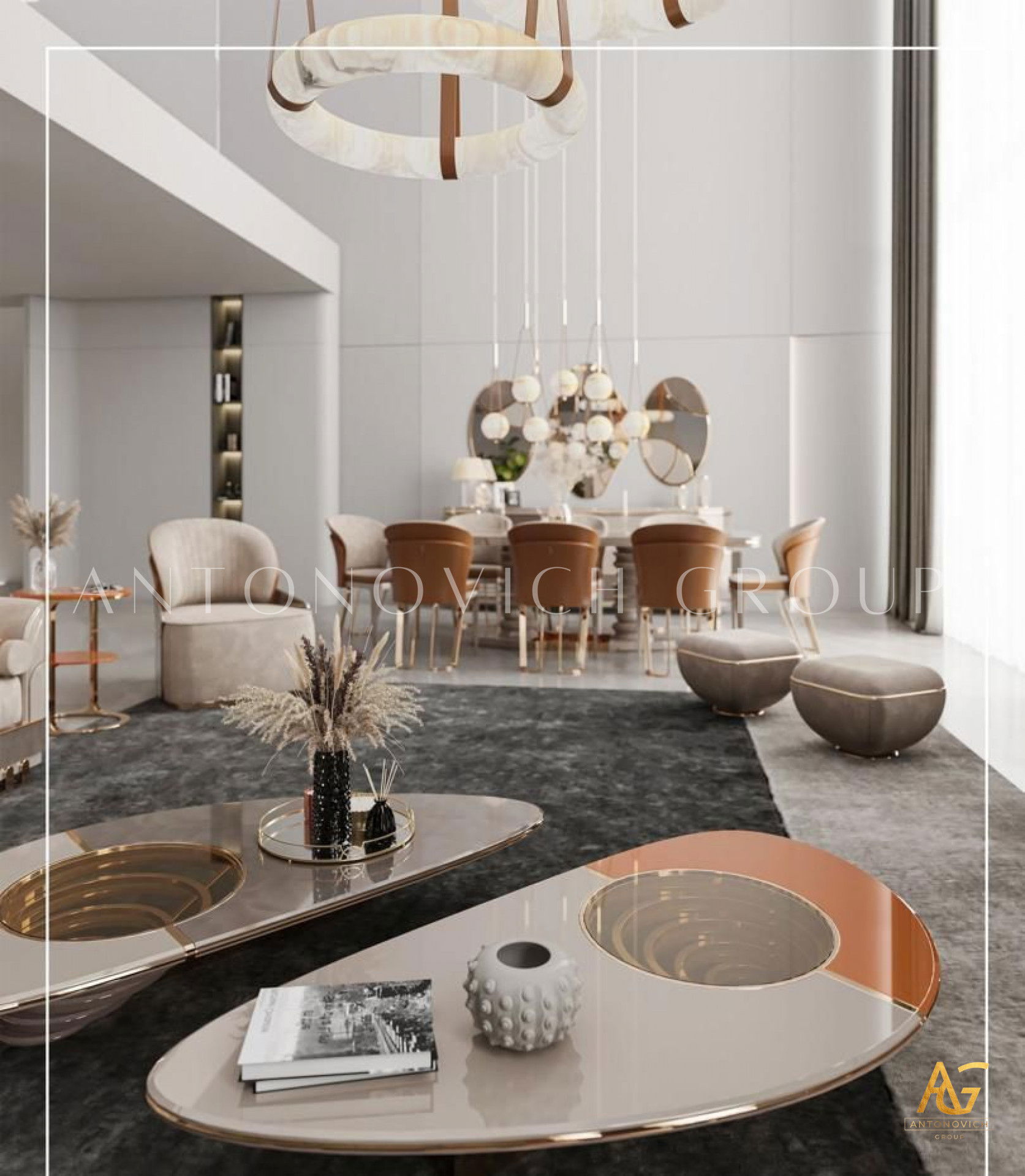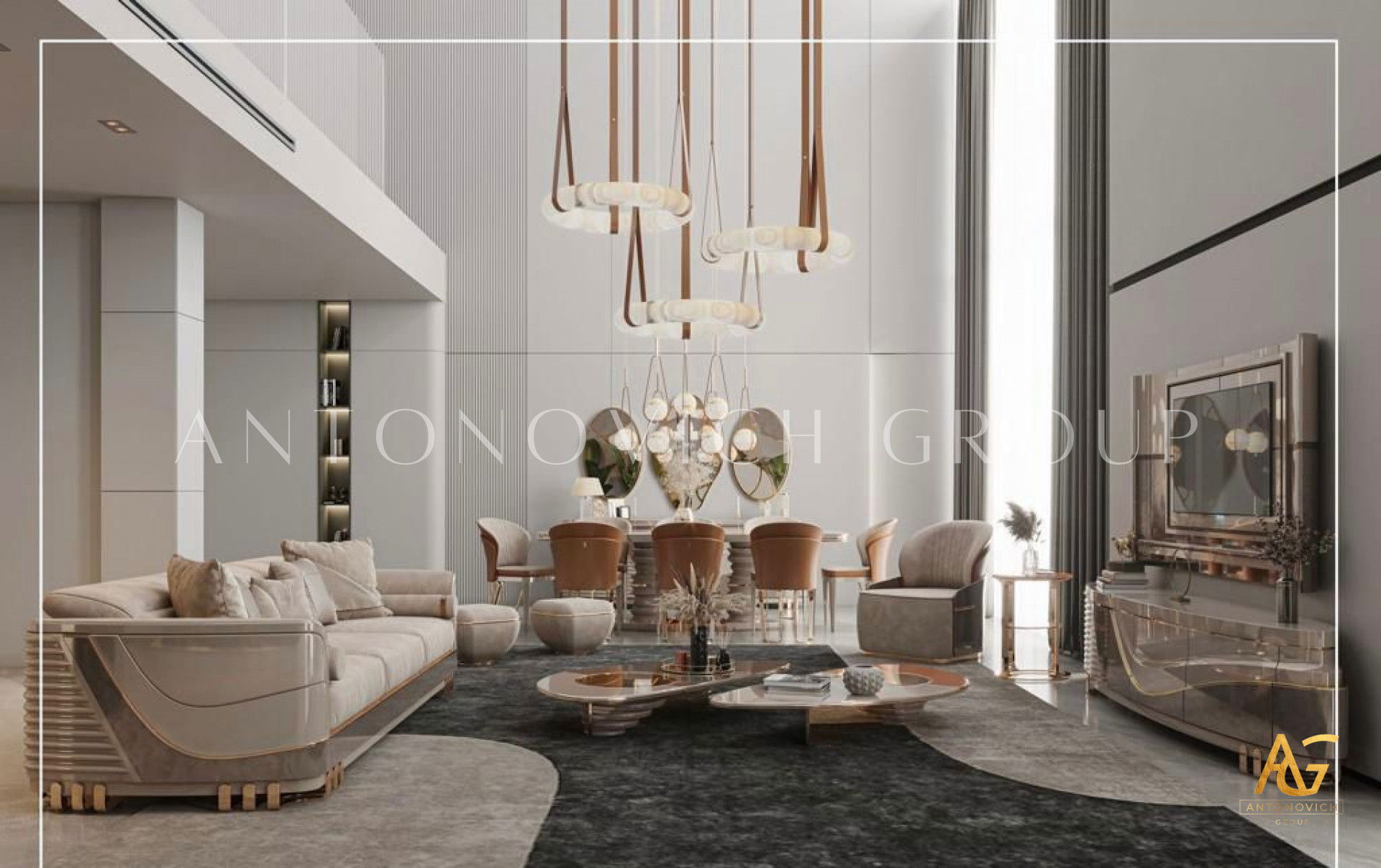 بصفتها أفضل شركة تصميم داخلي في دبي ، تفخر لاكشري أنتونوفيتش ديزاين بتقديم تصاميم أثاث غرفة المعيشة الفاخرة في هذه المقالة والتي ستجعل غرفة المعيشة الخاصة بك أكثر أناقة. لخلق جو بديل ، يجب أن يحتوي التصميم الداخلي لغرفة المعيشة الفاخرة في دبي ، مثل أي غرفة أخرى في المنزل ، على مزيج من الضوء الطبيعي والإضاءة الاصطناعية جيدة التخطيط. لإضفاء مظهر أكثر فخامة ، نقترح استخدام العديد من أنواع الإضاءة ، من مصابيح السقف الواضحة إلى مصادر الإضاءة المختلفة مثل المصابيح المعلقة ومصابيح الأرضية ومصابيح الطاولة. سيضيف هذا الدفء والشخصية إلى المساحة ، مما يسمح بمجموعة متنوعة من التجارب.