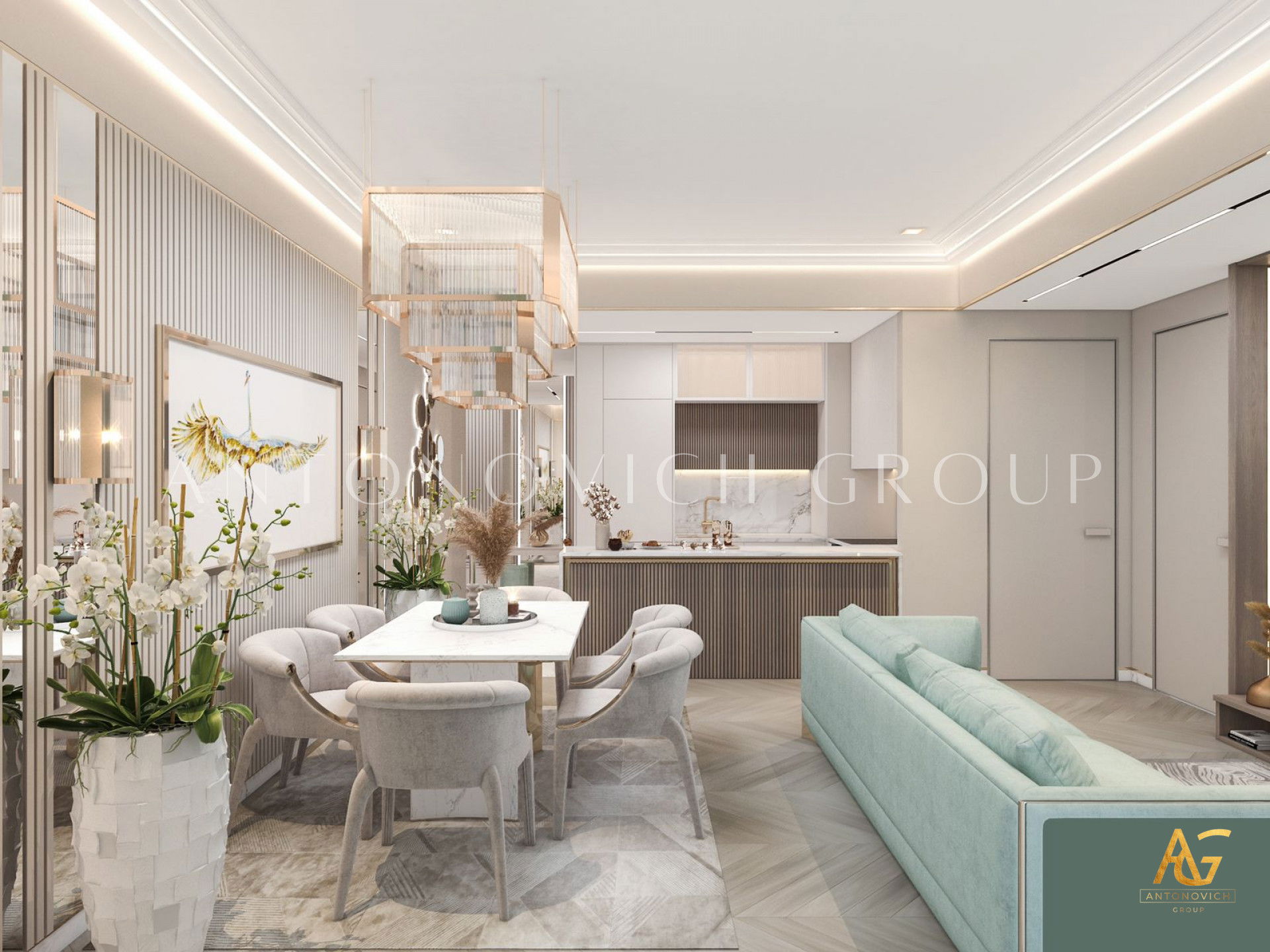 تقدم مجموعة أنتونوفيتش تطويرات تصميمية مطلقة للشقق العصرية لخدمات التجهيزات والأثاث، بما في ذلك التجهيز والتصنيع وتصميم الأثاث حسب الطلب. نحن نؤكد على الأناقة والتألق في كل شقق البنتهاوس الداخلية والخارجية. يجب انتقاء المفروشات في شقتك البنتهاوس بعناية لتناسب الديكور والجو العام وأنماط الأرضيات. في مثل هذه الأجواء، قد يكون أي شيء جاهز في مثل هذا المكان مبالغاً فيه. قسّم الأرائك وأثاث غرفة المعيشة الأخرى للحصول على مظهر أكثر رسمية. يتم إنشاء أجواء غير رسمية من خلال التجاويف والزوايا الصغيرة مع مجموعة من خيارات الجلوس. يضفي الأثاث الفاخر المصقول مع المقاعد الفخمة البراقة، مظهراً راقياً على المساحة الخاصة بك. يضفي اختيار الأثاث على الشقة مظهرًا فريدًا وجذابًا.