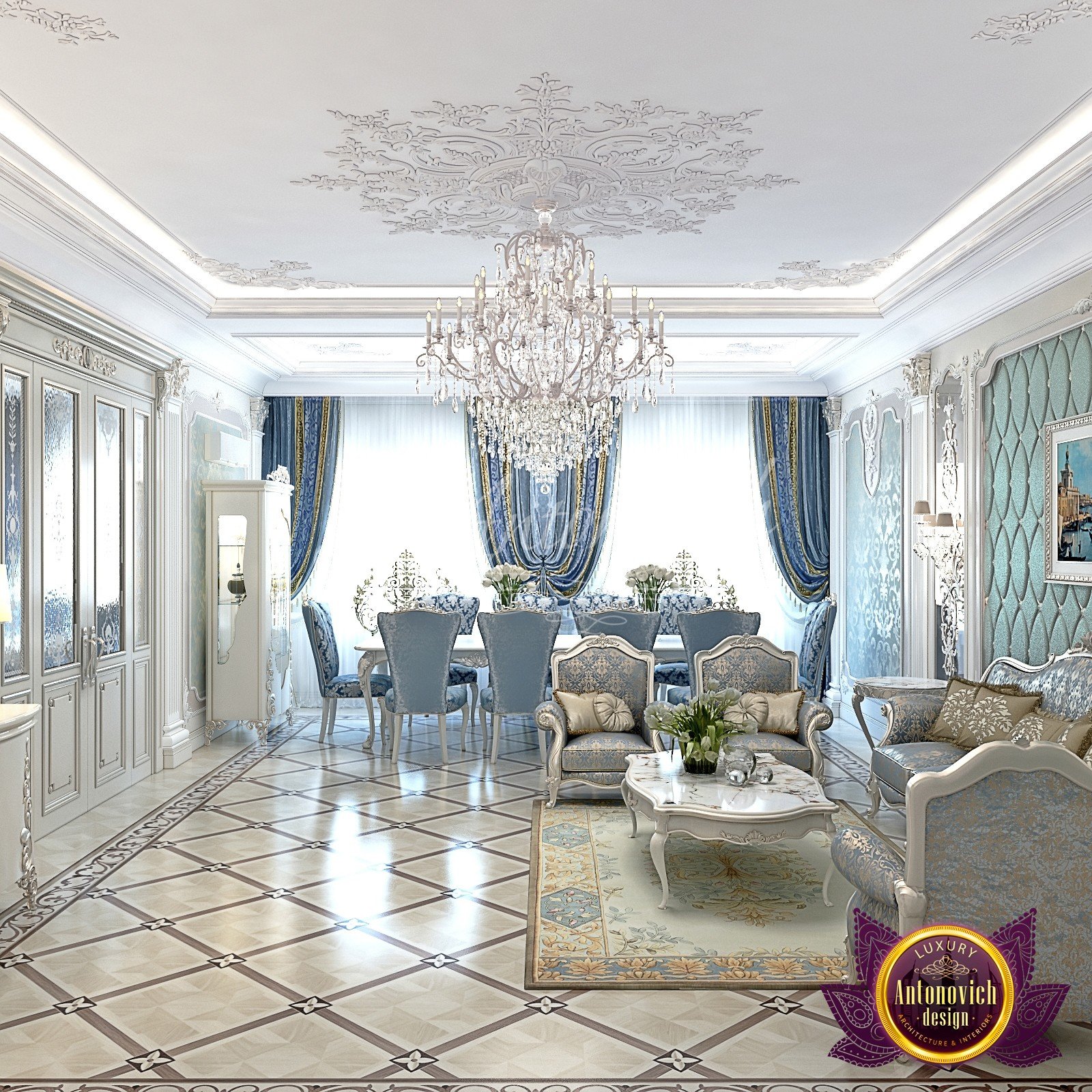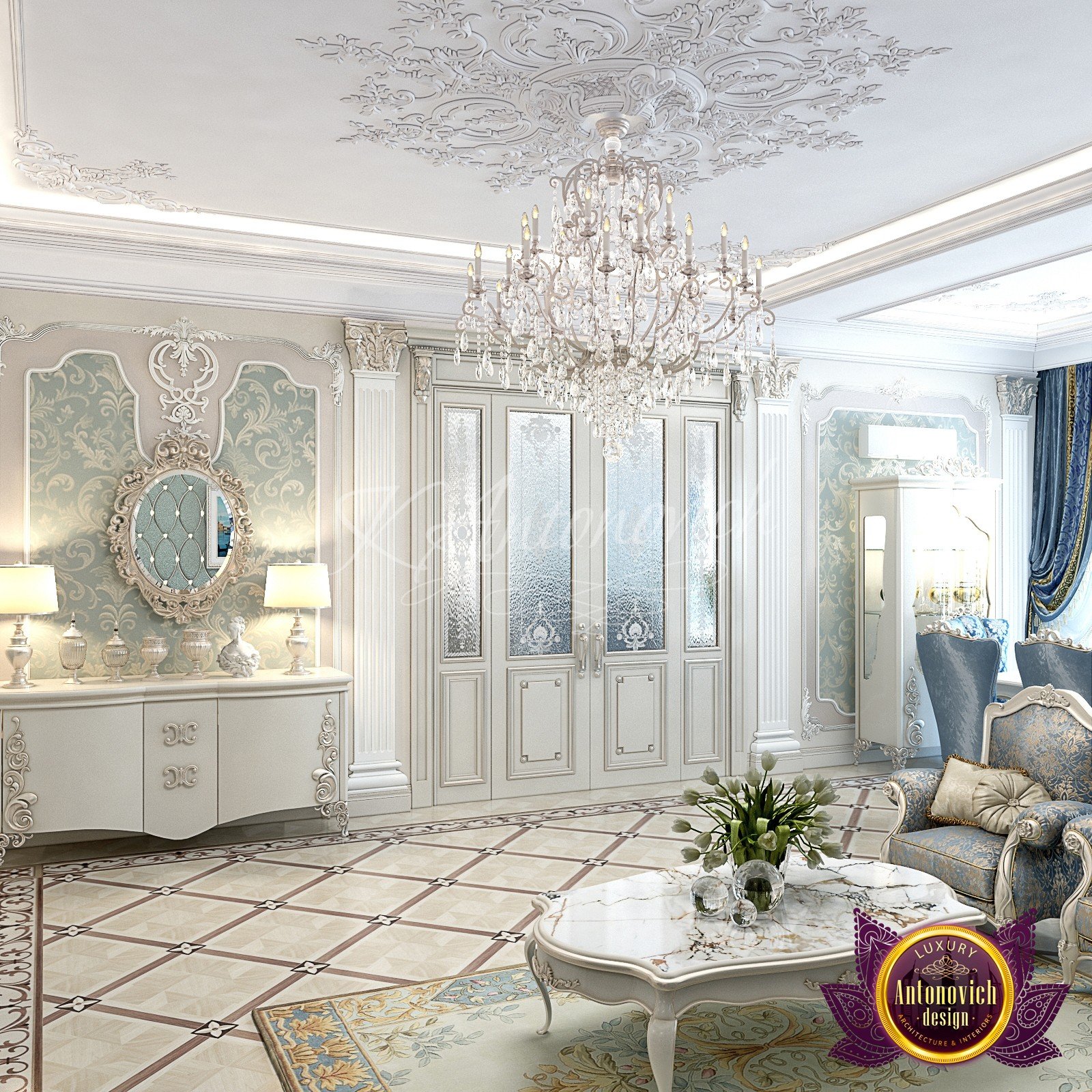 من منا لا يريد أن يعيش في شقة أنيقة؟ صمم لاكشري انتونوفيتش ديزاين أروع خيارات التصميم الداخلي لك ولعائلتك. لدينا فريق متخصص من العمال الموهوبين والمهرة الذين يمكنهم تحويل أحلامك إلى حقيقة. في هذا التصميم الداخلي الأنيق للشقة ، ستلاحظ الاستخدام الجميل لللمسات الفاخرة. الأريكة هي واحدة من أفضل الأثاثات التي تجذب الأنظار في هذه الغرفة. تفاصيله المذهلة مع نحت جميل هي أمر مذهل لدرجة أنك ترغب في البقاء هناك طوال اليوم. الطاولة المركزية الأنيقة مغطاة بطلاء رخامي مع سجادة منقوشة بشكل معقد لإكمال المظهر.