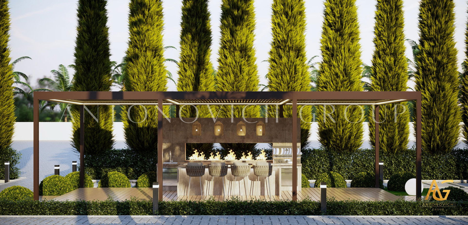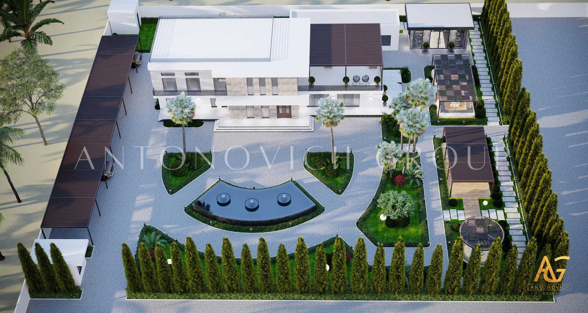 ان هذا التصميم المعماري في كينيا هو مشروع تصميم متفرد ، الذي طوره الخبراء في شركة التصميم لاكشري انتونوفيتش ديزاين خصيصًا من أجلك. تصميم هذه الفيلا يتميز بأنه يجسد الجمال والتفرد. فتصميم المنزل في كينيا هو مشروع يتطلب نهجًا فنيًا عاليًا واحترافًا. فتم تصميم هذا المنزل الممتاز في كينيا ليعطي انطباعًا جماليًا مفضلاً ويمنح الدفء والراحة لأصحابه كل يوم. فيجمع التصميم الخارجي في هذا المنزل في كينيا بين التفاصيل العصريه والكلاسيكية بشكل جميل. تظهر شركة البناء في كينيا لاكشري أنتونوفيتش ديزاين مظهرًا جذابًا ومتفردا للمبنى. فيبدو تصميم المناظر الطبيعية للقطعة المجاورة للمنزل لافتًا للنظر بشكل خاص ويجعل هذا المكان في زاوية حلمك. وحتي المناظر الطبيعية هذه بالتحديد توضح الفن الدقيق لزراعة الحدائق. حيث كل مشروع من مشاريعنا فردي ولا يشبه المشاريع الأخرى. ويتحدث اسلوب المصمم في تصميم الفيلا في كينيا عن ذلك. نافورات فاخرة ، أحواض اصطناعية على الطراز الشرقي ، أسرة زهور جميلة بأزهار منعشة جميلة ، شرفات أصلية ، ممرات دقيقة. حيث يتم إنشاء انطباع خفة ولطف المبنى بفضل خطة المنزل المدروسة بشكل صحيح في هذا المنزل في كينيا. ويتم أخذ جميع سيناريوهات الحياة في الاعتبار أثناء تطوير حلول التخطيط في تصميم الفلل الحديثة في كينيا. ولن تقوم شركة الهندسة المعمارية والتصميم لاكشري أنتونوفيتش ديزاين بأفضل تصميم للمناظر الطبيعية فحسب ، بل ستصنع أيضًا أفكارها الإبداعية من أجل تزيين المنزل. وفي النهايه ستكون بيئة حياتك مختلفة عن الآخرين ؛ ستكون جوهرة حقيقية تزين المدينة بأكملها.