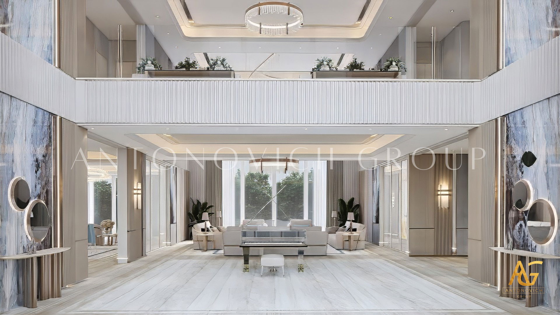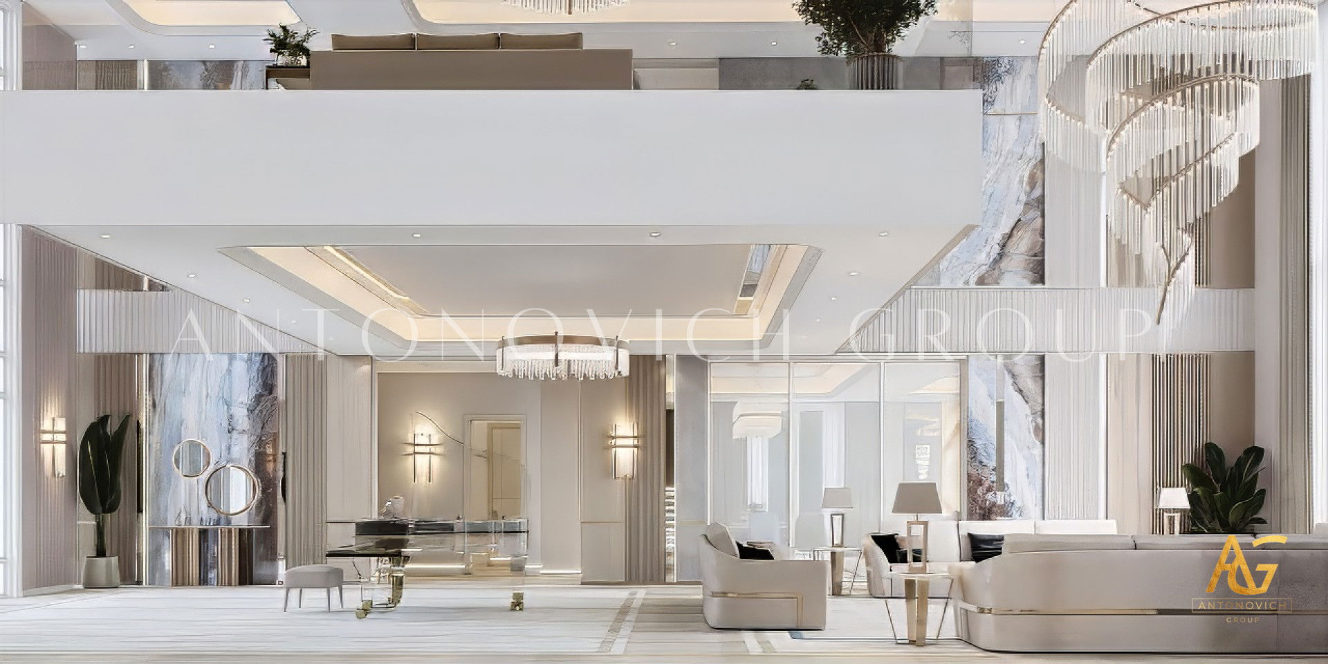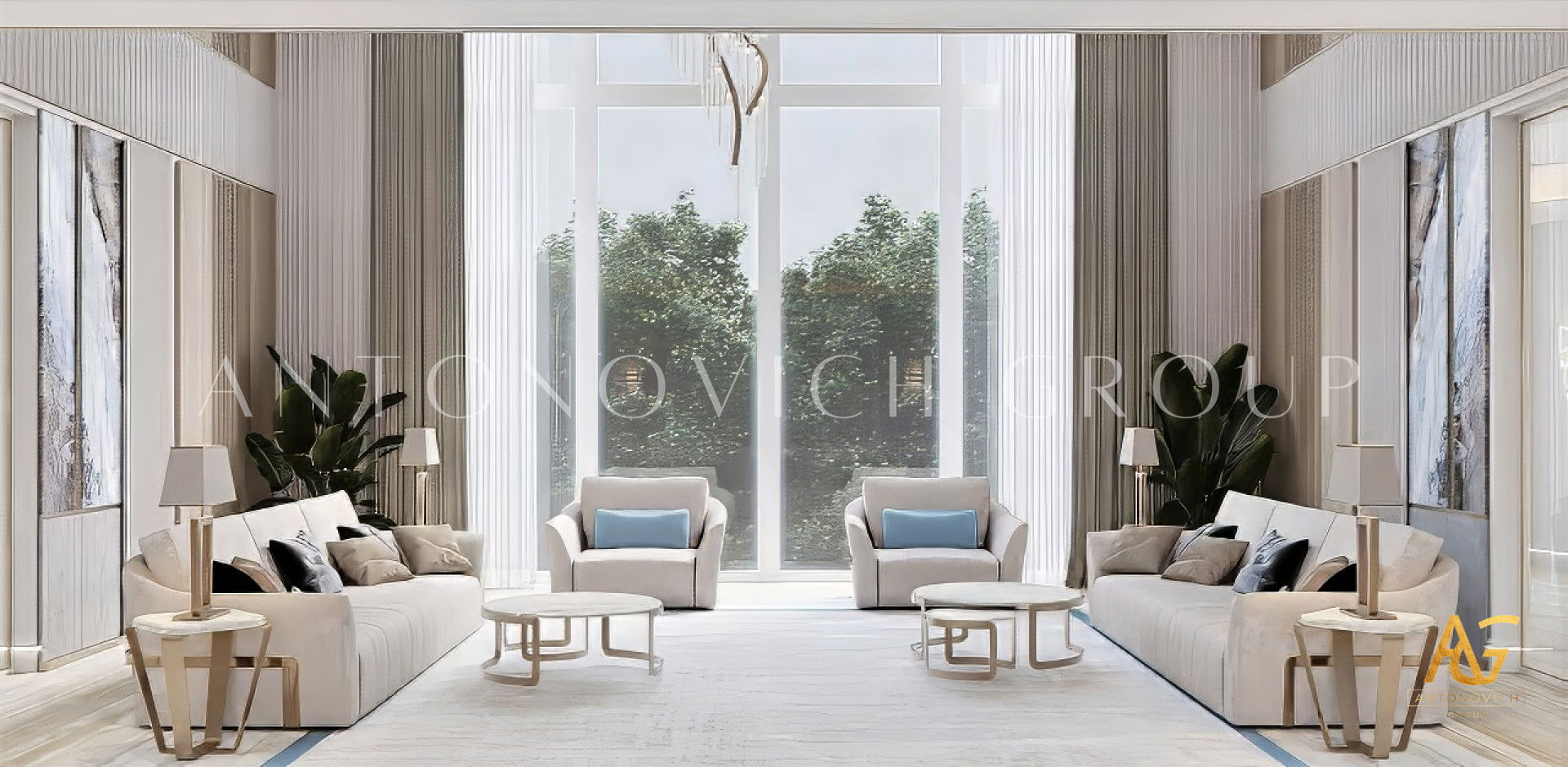 تصميم داخلي لغرفة المعيشة في دبي من مجموعة أنطونوفيتش