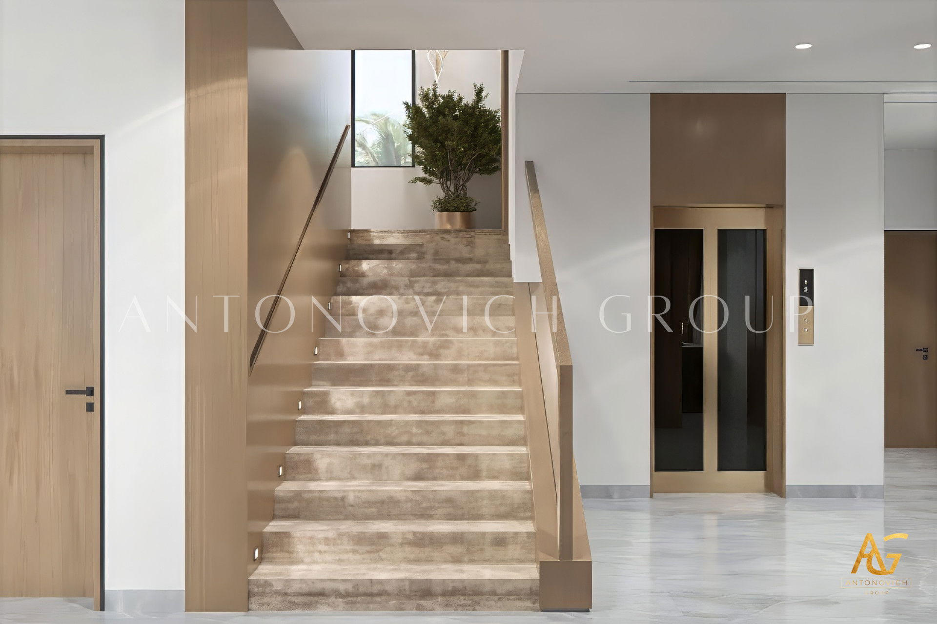 بعيدًا عن التصميم، تقدم مجموعة أنتونوفيتش خدمات تجهيز كاملة لضمان تنفيذ المشروع بسلاسة. يشمل ذلك الأرضيات، ومعالجات السقف، وتشطيبات الجدران، وأنظمة الإضاءة، والأثاث المخصص – جميعها مصممة وفقًا لمتطلبات المساحة المحددة. مع اهتمام دقيق بالتفاصيل، يقدم الفريق تصميمات داخلية لا تبدو رائعة فحسب، بل أيضًا متينة وعملية للحياة اليومية.