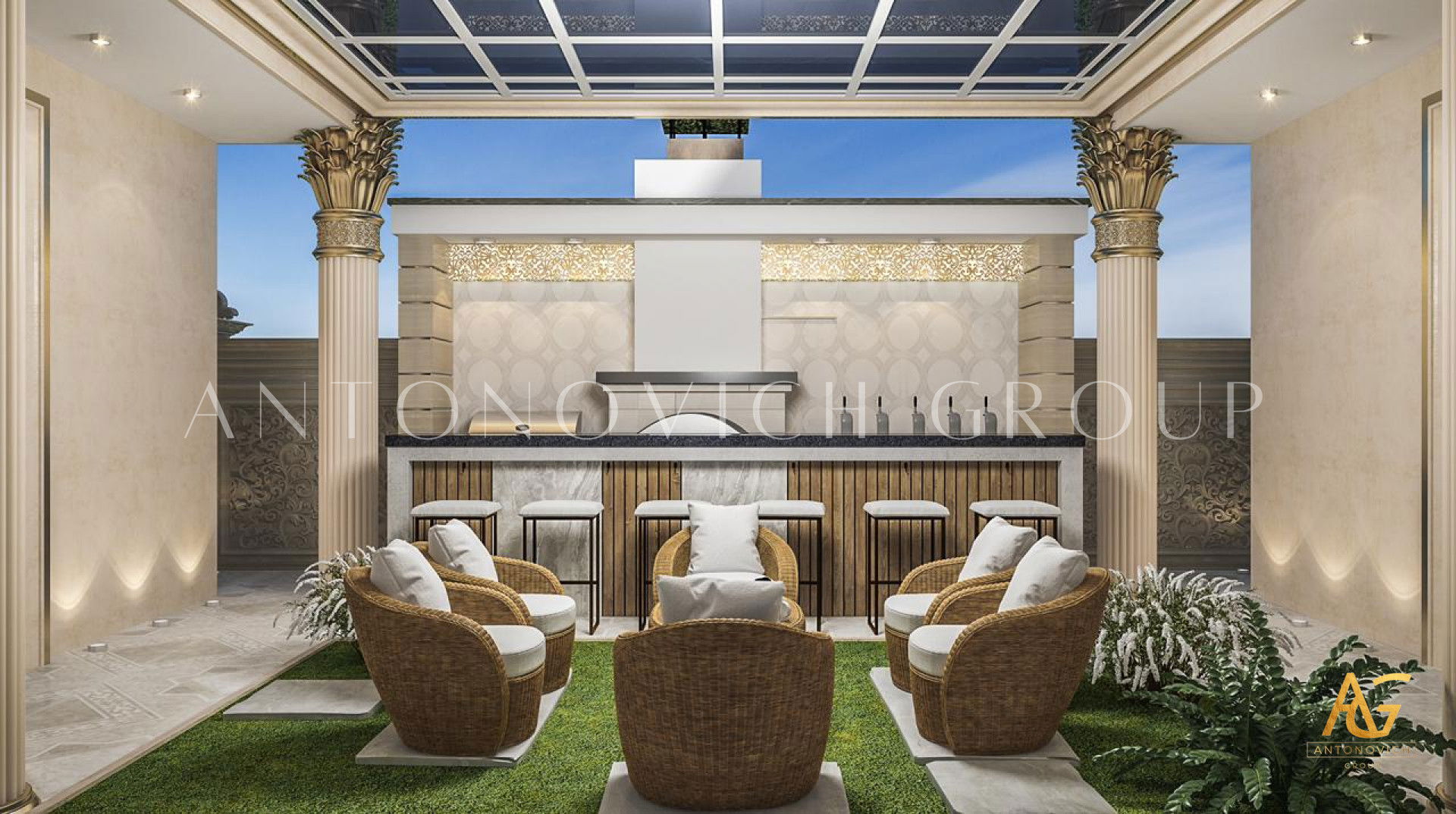 تصميم فناء خارجي فاخر لمنزل مودرن في المملكة العربية السعودية