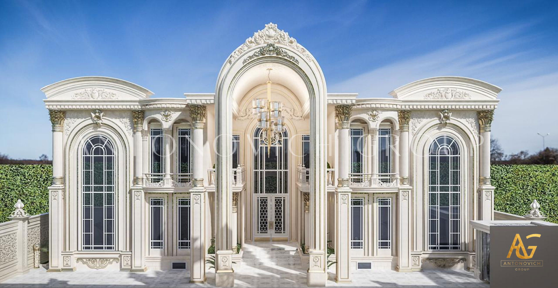 التصميم الداخلي والخارجي في المملكة العربية السعودية أنيق وجميل. حيث ان استخدام الألوان البيضاء والكلاسيكية يخلق اجواءاً مذهلةً. يضيف الديكور الجداري الأنيق إلى الإحساس بالفخامة لتصميم المنزل. هذا التصميم تقليدي مع لمسة من البذخ والفخامة الذين يكملوا التصميم الداخلي الفاخر للمملكة العربية السعودية بشكل جيد. يتميز هذا التصميم الخارجي بتفاصيل جميلة تجعلك تشعر وكأنك في منزل فخم.