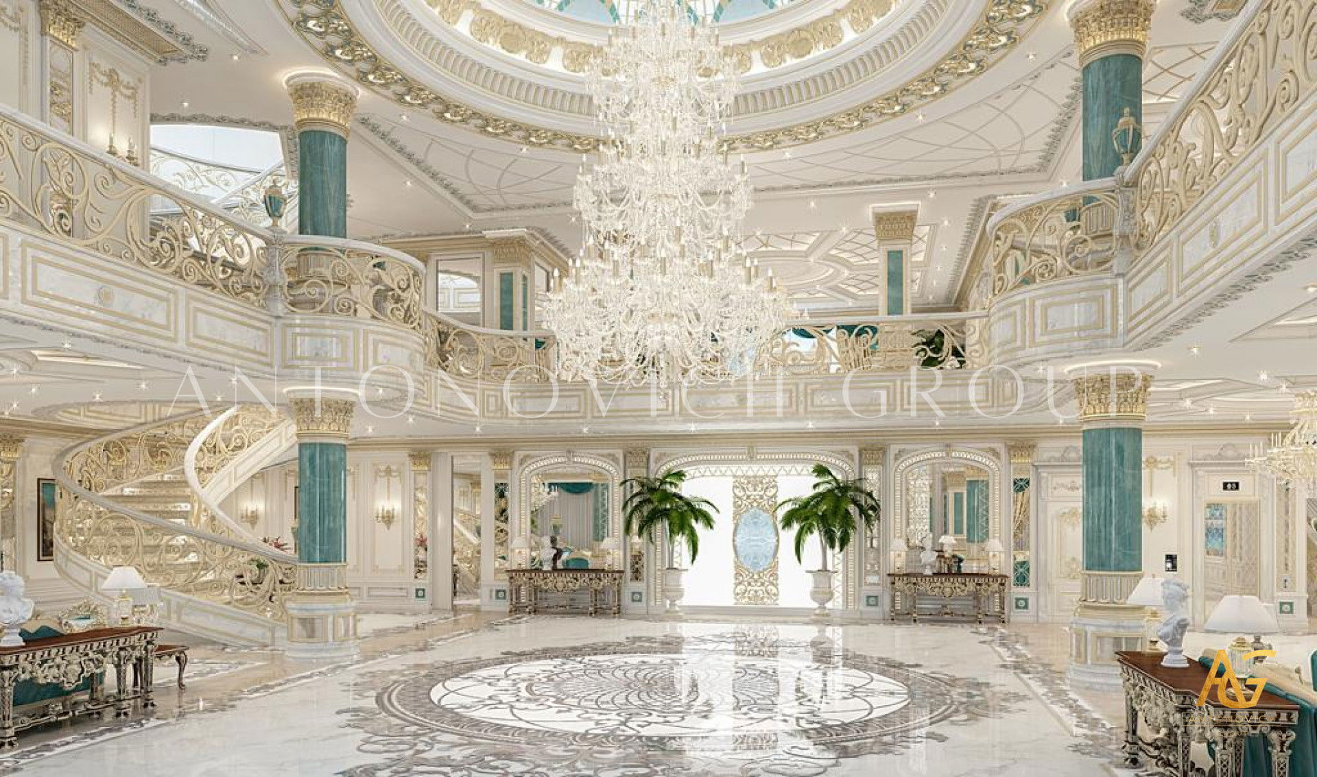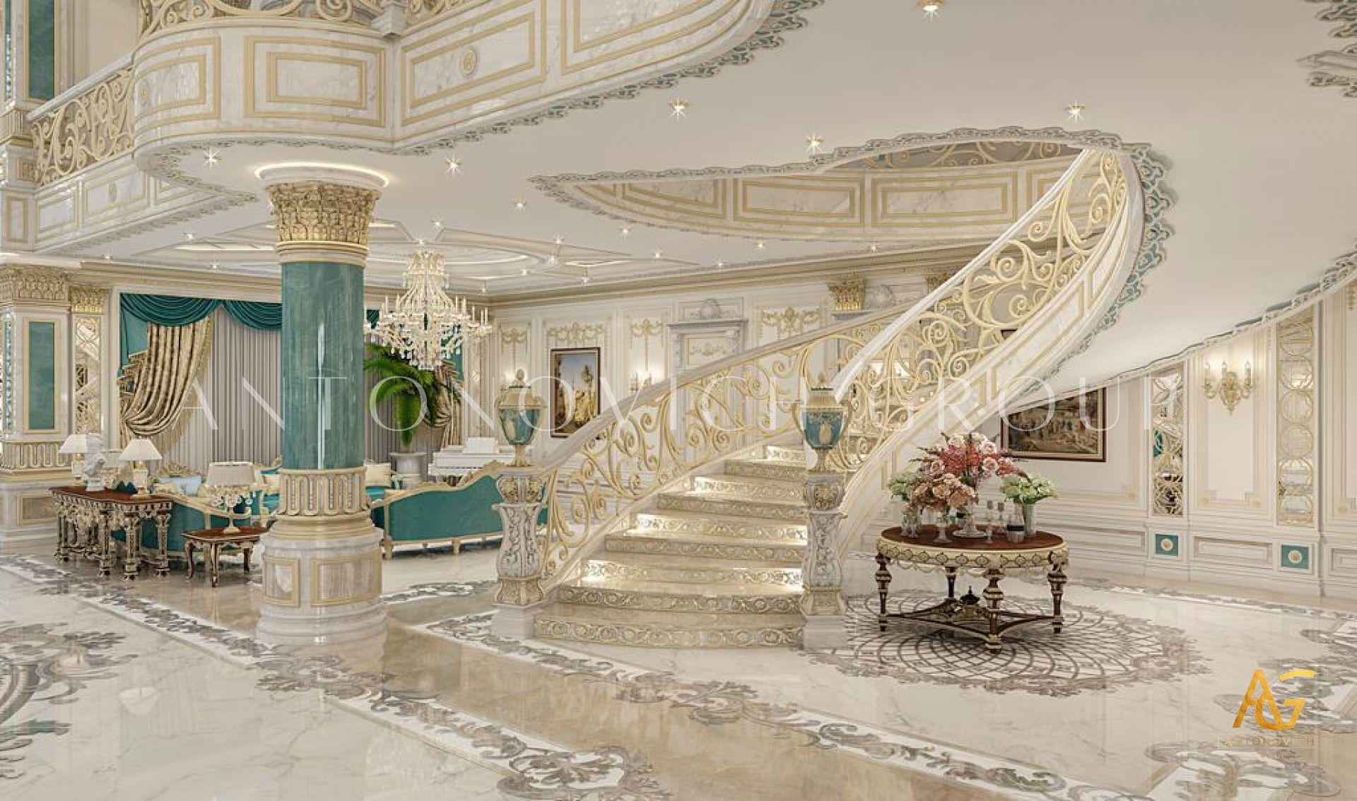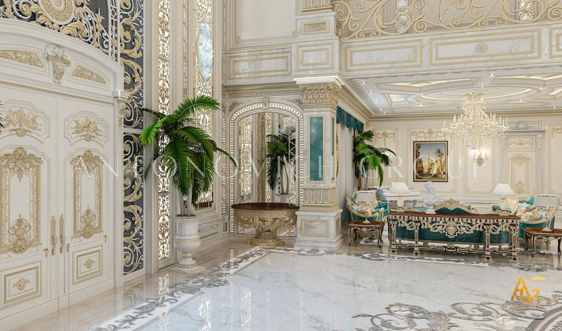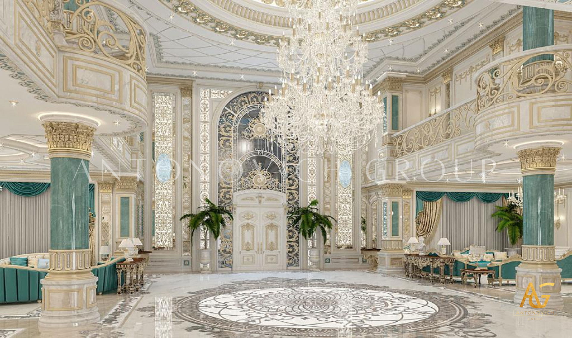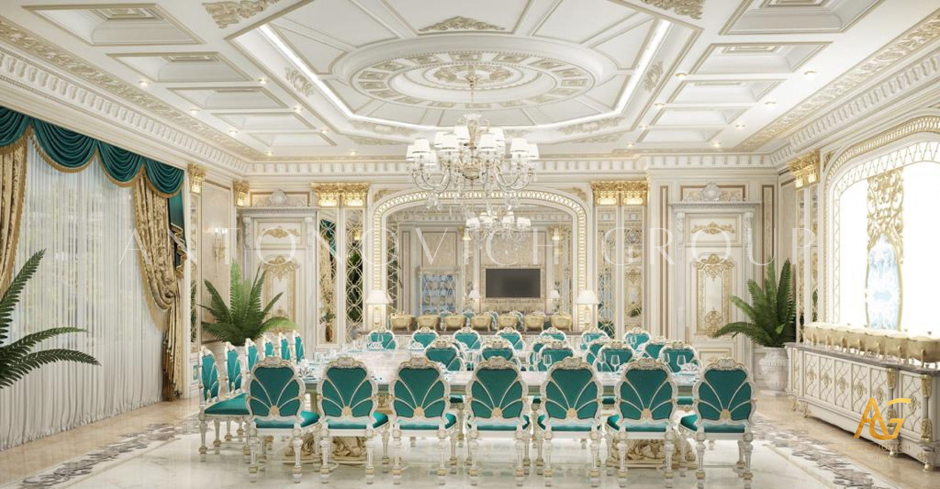 إن إنشاء تصميم داخلي في المملكة العربية السعودية مثل هذا صعب دون مساعدة أفضل مصممي الديكور الداخلي في الرياض. فقد أنتجت لاكشري أنتونوفيتش ديزاين هذا التصميم الداخلي الفاخر في المملكة العربية السعودية بأسلوب احترافي مع أفضل مصممي الديكور الداخلي في الرياض. تداخلات الألوان والأنماط مذهلة، ونظام الألوان السائد هو الأخضر مع الأبيض. لذا تتميز غرفة المعيشة الفخمة هذه بتصميم رائج لمدة طويلة . ويساهم الأثاث الرائع والفاخر بشكل كبير في اعطاء أجواء الفخامة الحديثة. ان التصميم الداخلي لغرفة المعيشة الفاخرة هو مثالي لمنازل الرياض.