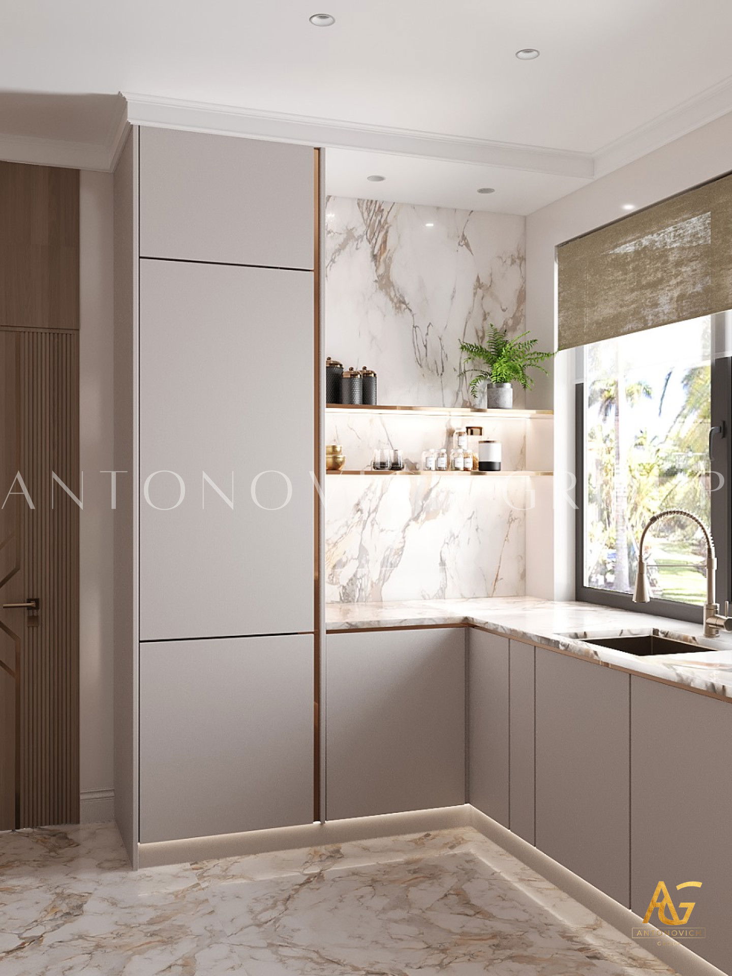 تجسد أعمال شركة تصميم أنتونيوفيتش الفاخرة النظافة الحديثة ومع ذلك التقليدية جماليًا. الفيلا هي مساحة متعددة الوظائف تم إتقانها من الخارج إلى الداخل. لا يحتاج التصميم فقط إلى أن يكون جميلًا ولكنه يحتاج إلى أن يكون متينًا في جميع الظروف الجوية. يحتوي التصميم على تهوية مناسبة للتأكد من أن الهواء سيتداول بشكل جيد في المنزل. يتم استخدام الذهب لبعض قطع الزينة لخلق ظل متباين يضيف الأناقة والطبقة إلى مظهر الفيلا الكلاسيكية.