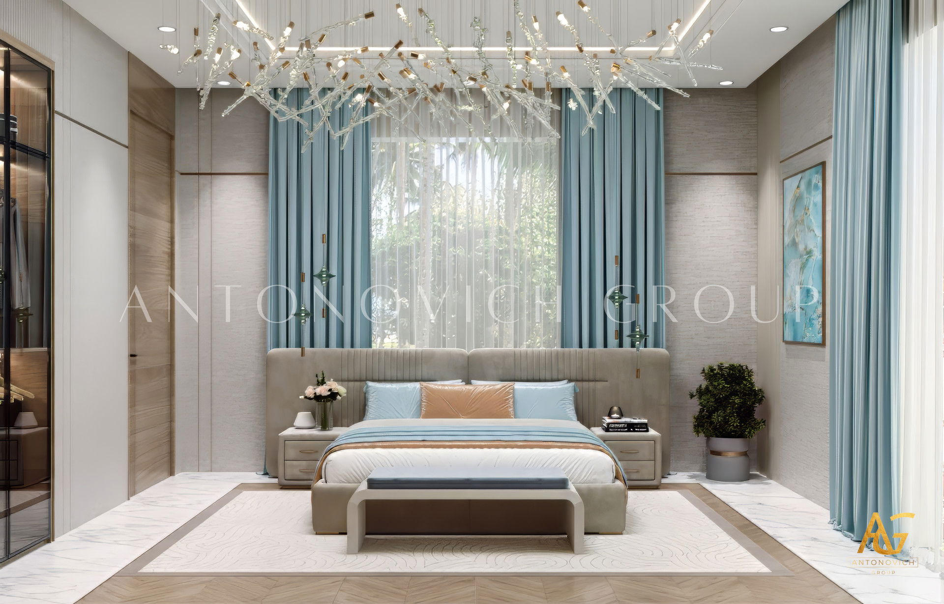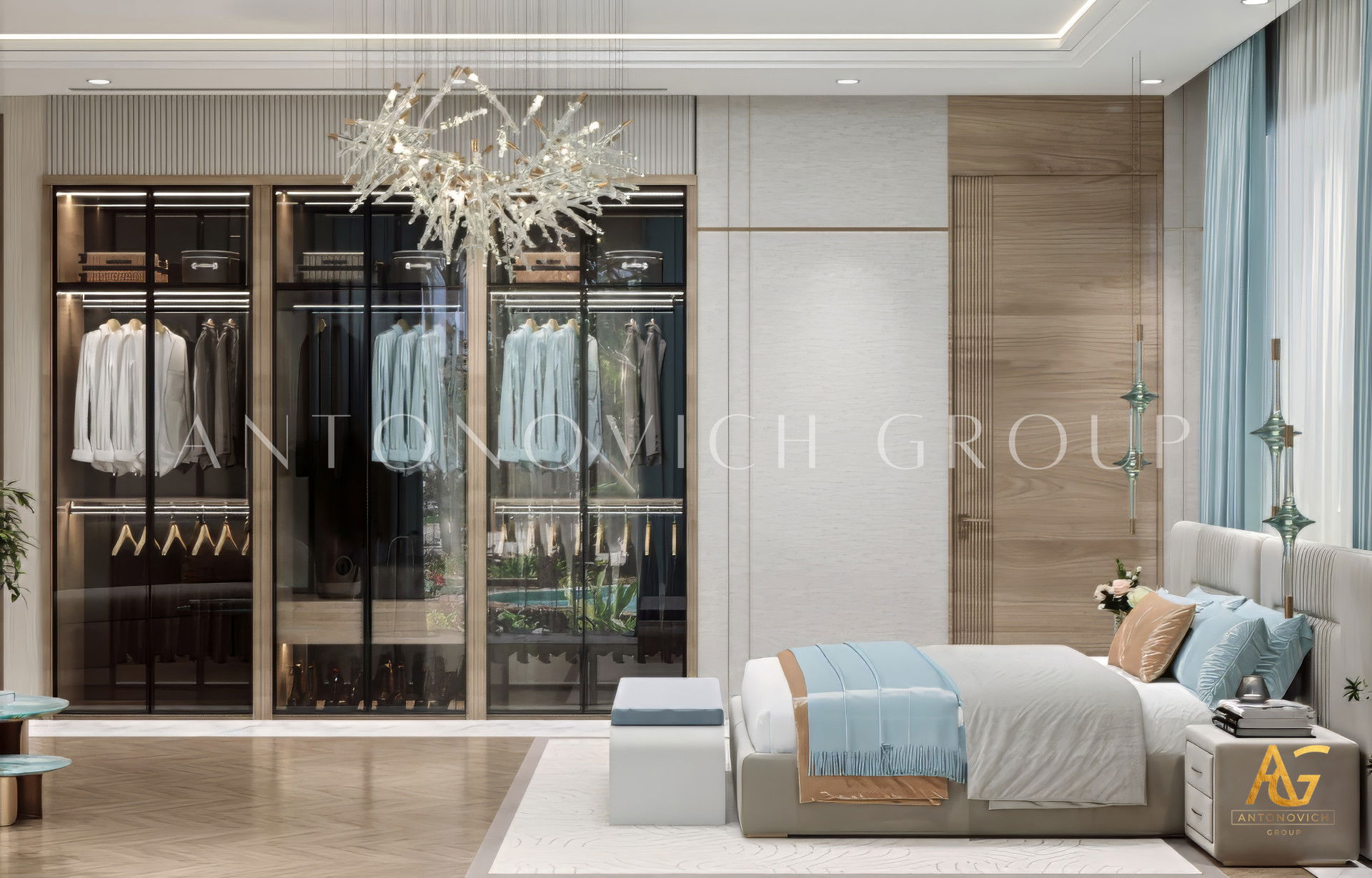ان تصميم الشاليه الحديث والمظهر العام للمنزل مذهل. يتميز السرير والرفوف في ديكور المنزل الفاخر في جدة بلونهم الذهبي غني. فان هذا اللون هو اللون المثالي لتحقيق الأناقة والصفاء. من ناحية أخرى ، فإن هذا التصميم الداخلي في المملكة العربية السعودية به إضاءة رائعة تساعد علي اضافة إحساسًا طبيعيًا للمساحة ، مما يكمل مخطط اللون الذهبي في غرفة التصميم الداخلي في المملكة العربية السعودية. هذا الديكور الداخلي المتميز في جدة هو عمل فني تم تنفيذه بخبرة.