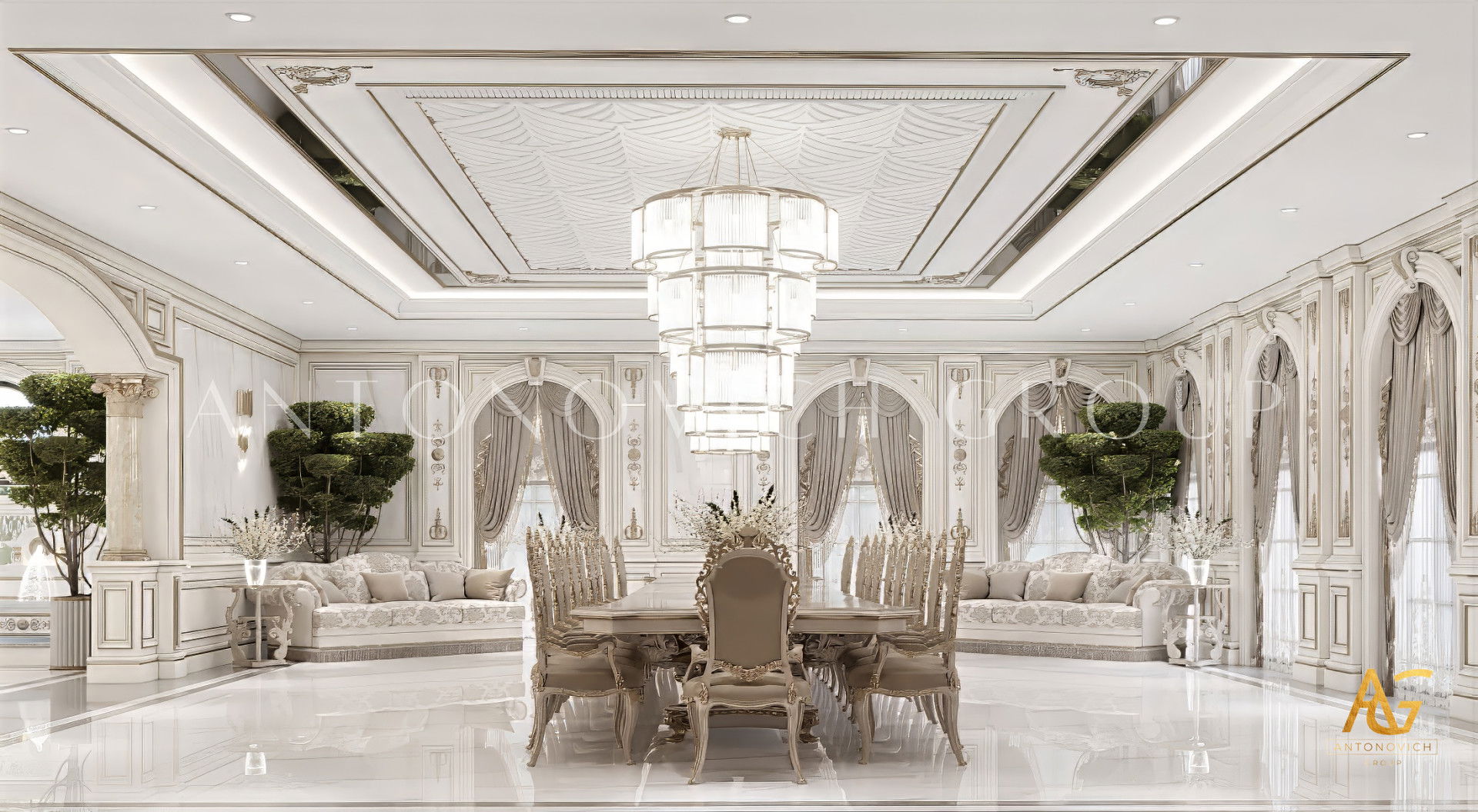 نأخذ في الاعتبار عدة أشياء قبل أن نبدأ في تصميم غرفة الطعام. في غرفة الطعام النموذجية أعلاه ، سترى أنها طاولة طعام تتسع لثمانية عشر مقعدًا يمكن أن تستوعب عددًا صغيرًا من الضيوف الذين يمكنك أن تطلب منهم القدوم إلى منزلك. تتكون تصميماتنا دائمًا من مظهر متطور. نهدف إلى منح عملائنا تصميمًا منزليًا راضيًا يبدو ساحرًا ومتجدد الهواء. الأجواء المنزلية هي ما نود تقديمه لعملائنا لجعلهم سعداء ومرتاحين في أماكن تناول الطعام الخاصة بهم. تتميز غرفة الطعام ذات المخطط المفتوح هذه بمظهر طبيعي للغاية وهو حميم ومتعدد الاستخدامات لجميع المناسبات. اللون الأبيض هو اللون الرئيسي لغرفة الطعام مع لمسات من الفضة المعدنية لمنحها عنصرًا تكميليًا. لقد حرصنا على أن تكون جميع الكراسي في غرفة الطعام منجدة بأقمشة أنيقة ومتينة لإضفاء مظهر مفصل حسب الطلب. تهدف شركتنا دائمًا إلى إبراز أفضل ما في مساحاتك للتأكد من أنه تم إعداده بشكل جميل.