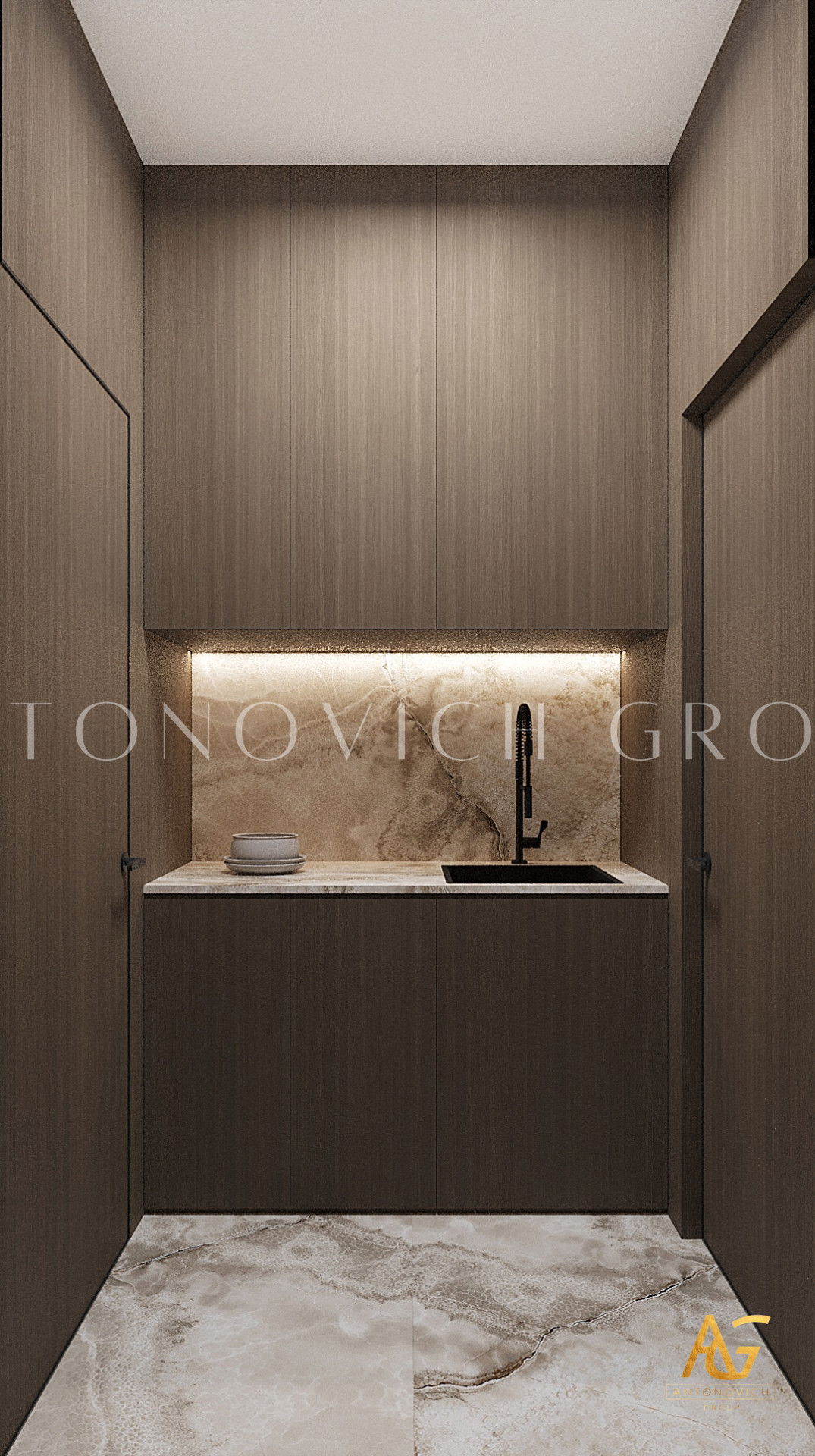 متوافقة مع الأجواء الفخمة لـ جي بي ار، اختارت مجموعة أنتونوفيتش مواد وتشطيبات ممتازة لرفع مستوى الديكورات الداخلية للمكاتب. تعزز الأخشاب النادرة وعناصر الرخام والأقمشة النادرة المظهر العام، مما يخلق بيئة تثير شعورًا بالعظمة. ينفذ الحرفيون الماهرون التابعون للشركة التصميم بدقة، مما يضمن الحصول على أنهايات لا تشوبها شائبة.