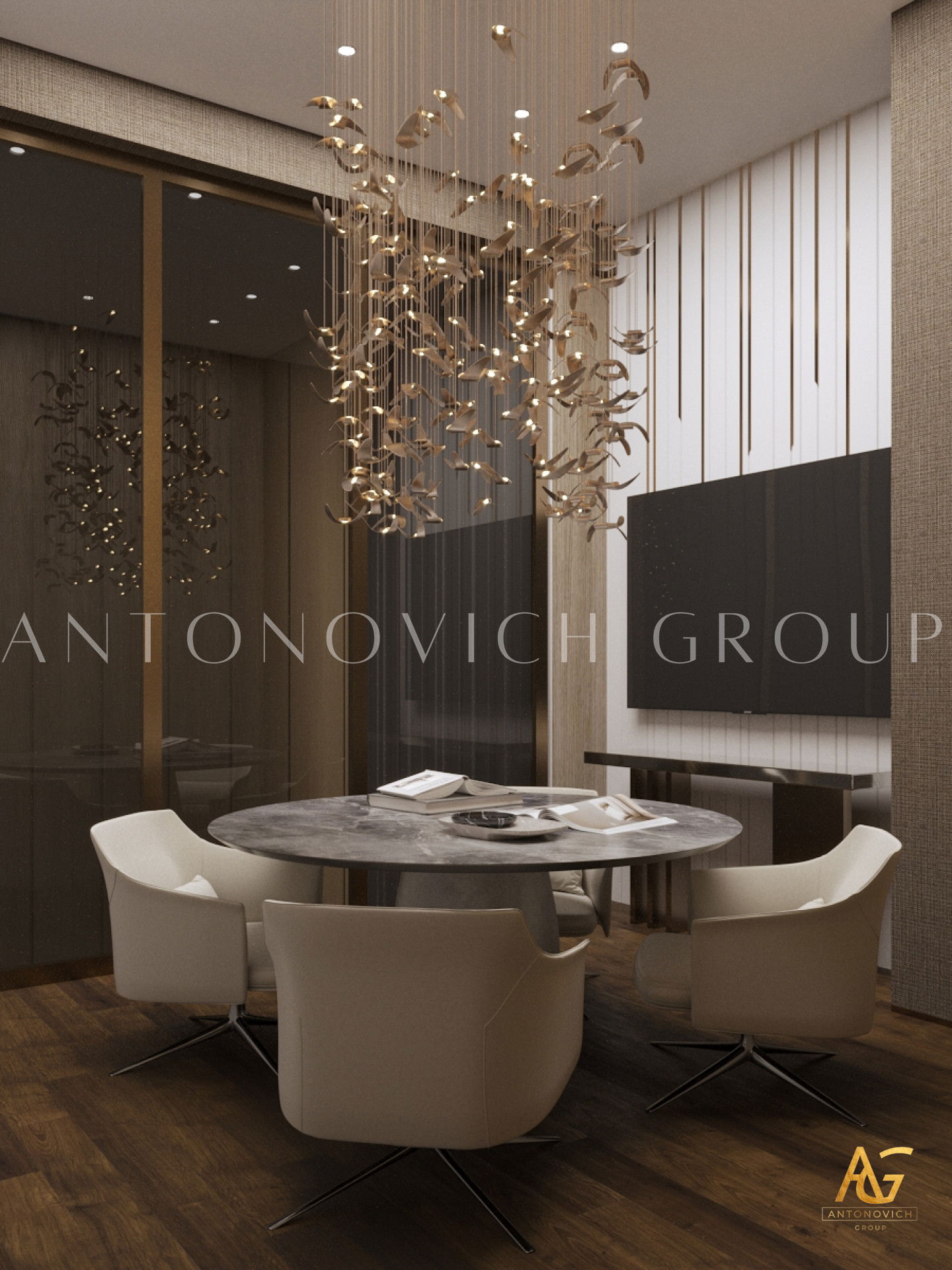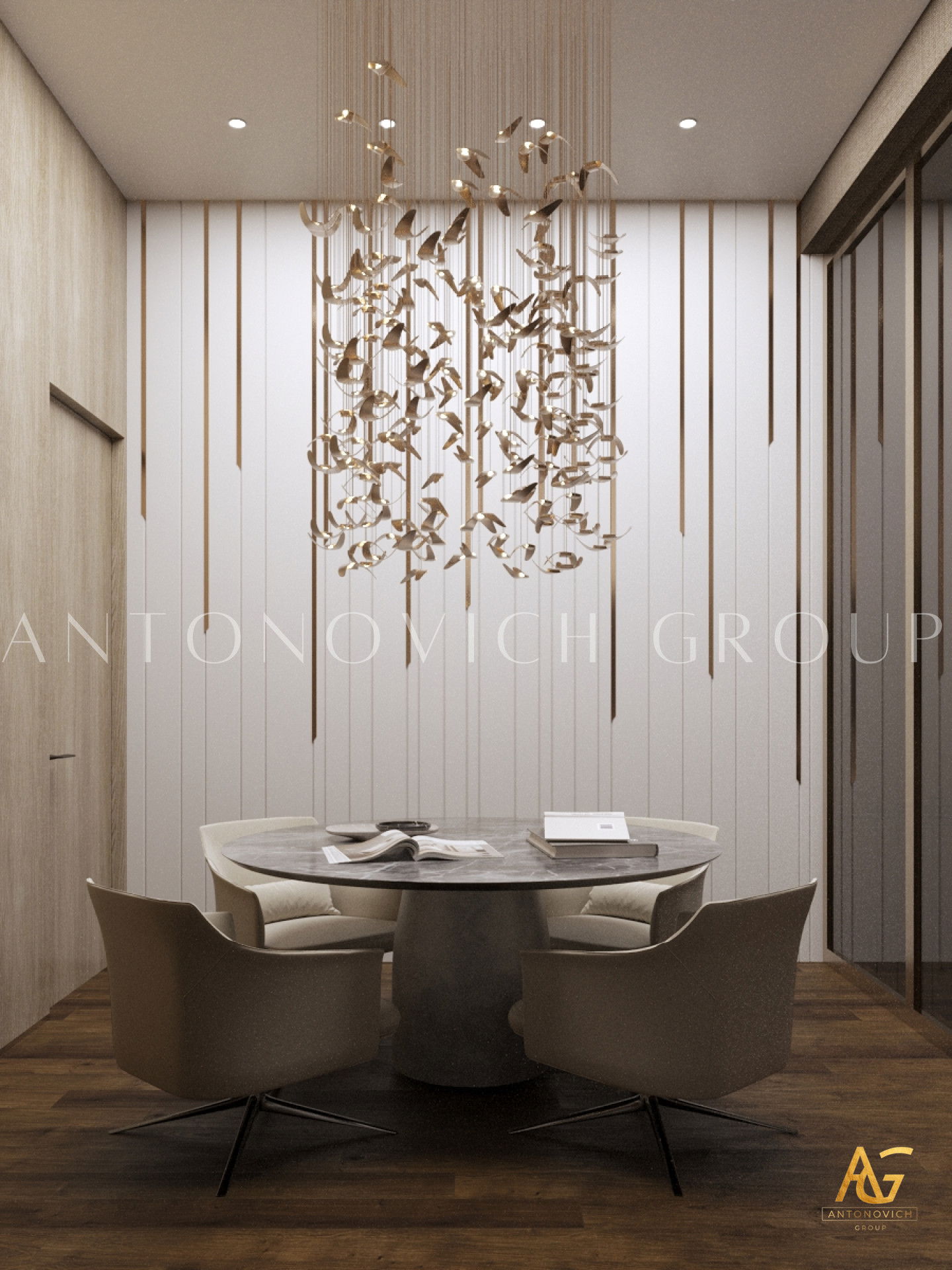 لرفع مستوى الديكورات الداخلية للمكاتب أكثر، تصمم مجموعة أنتونوفيتش الأثاث حسب الطلب وتختار الأعمال الفنية التي تتوافق مع المفهوم العام للتصميم. القطع الأثاثية ليست مثيرة للدهشة من الناحية البصرية فحسب، بل أيضًا مصممة للراحة والوظيفية. تضيف الأعمال الفنية المنتقاة بعناية لمسة من الرقي والشخصية إلى المساحة، مما يجعلها فريدة من نوعها حقًا.