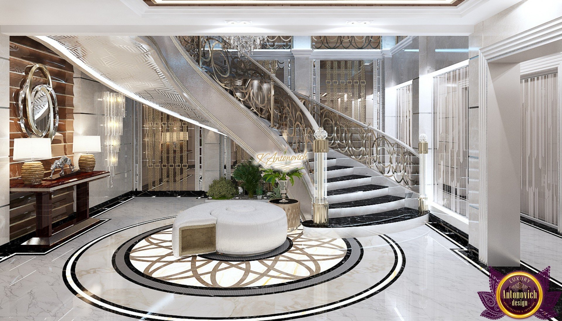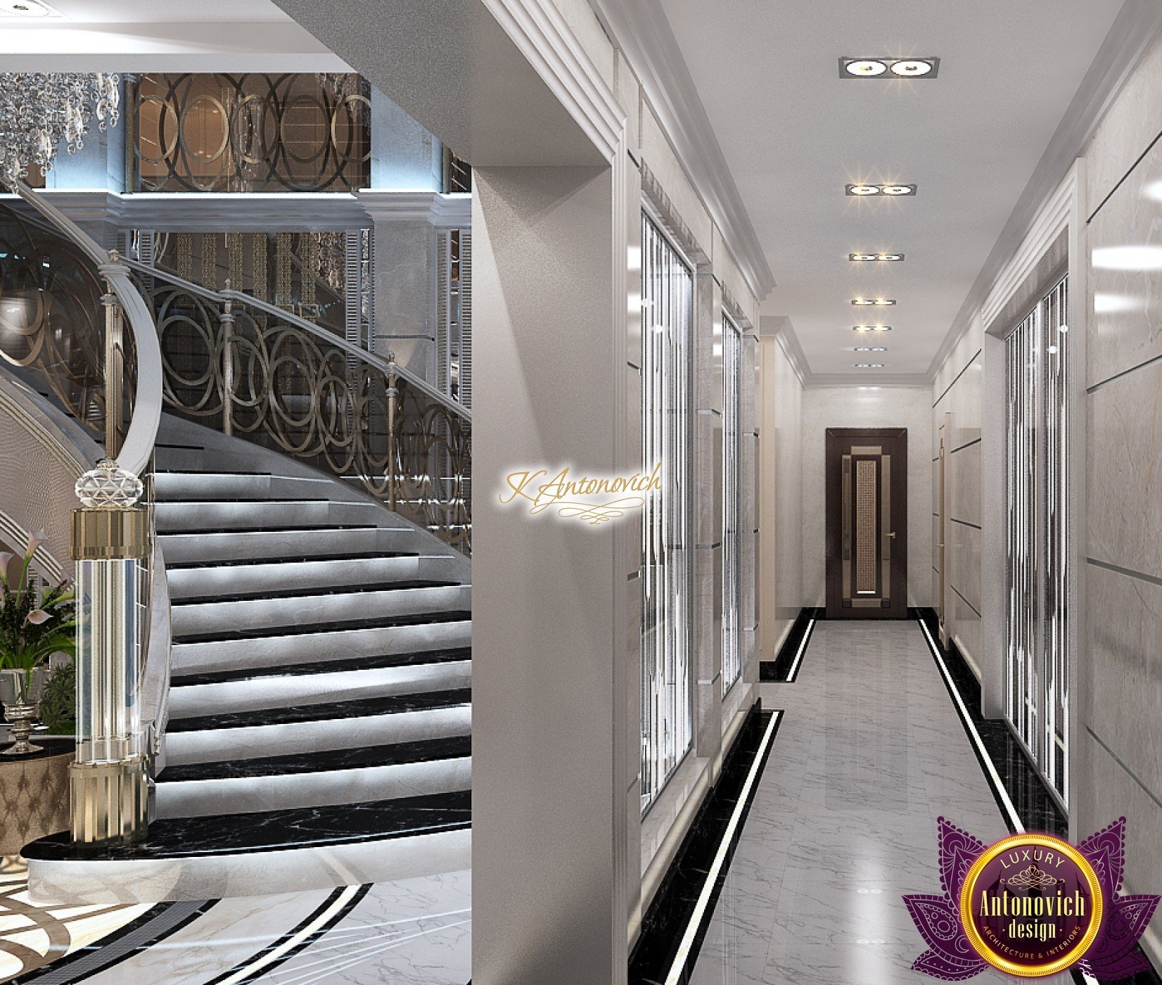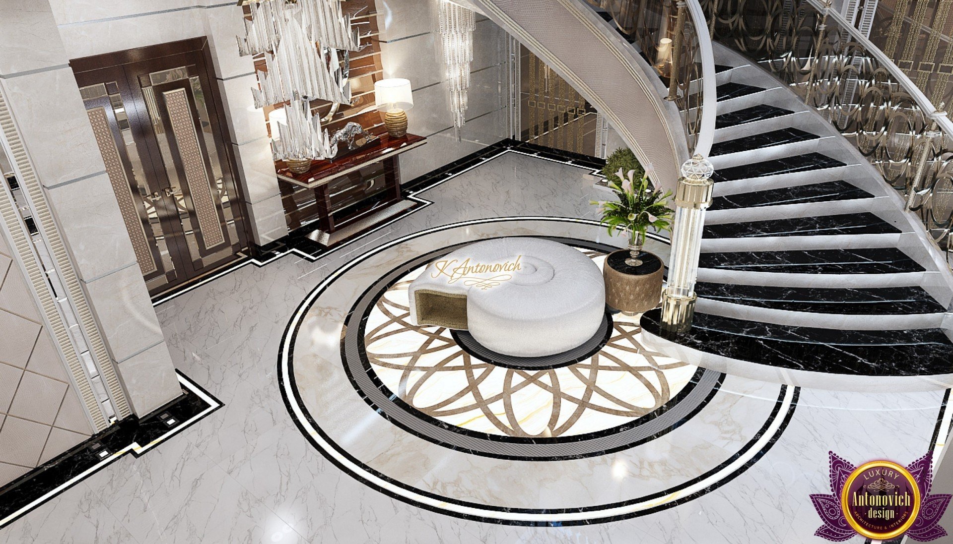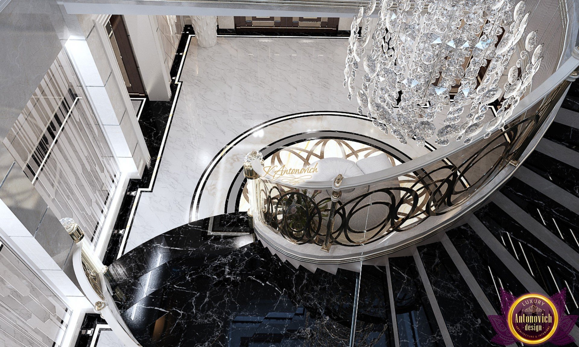 يعطي السلالم المصنوعة من الرخام الأسود مزيدًا من التركيز الدرامي على التصميم الكلاسيكي. إنها سمات أخرى فريدة من نوعها لهذا المنزل.