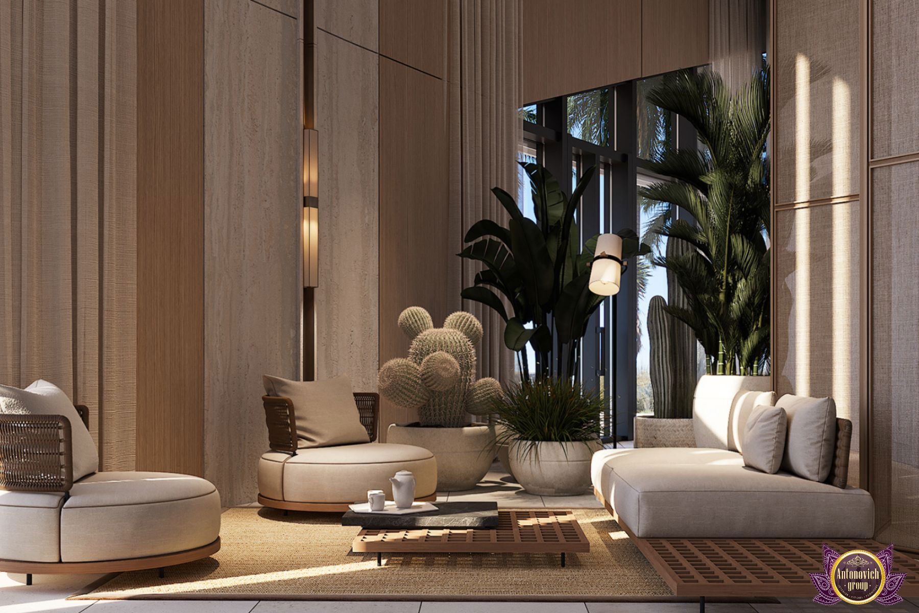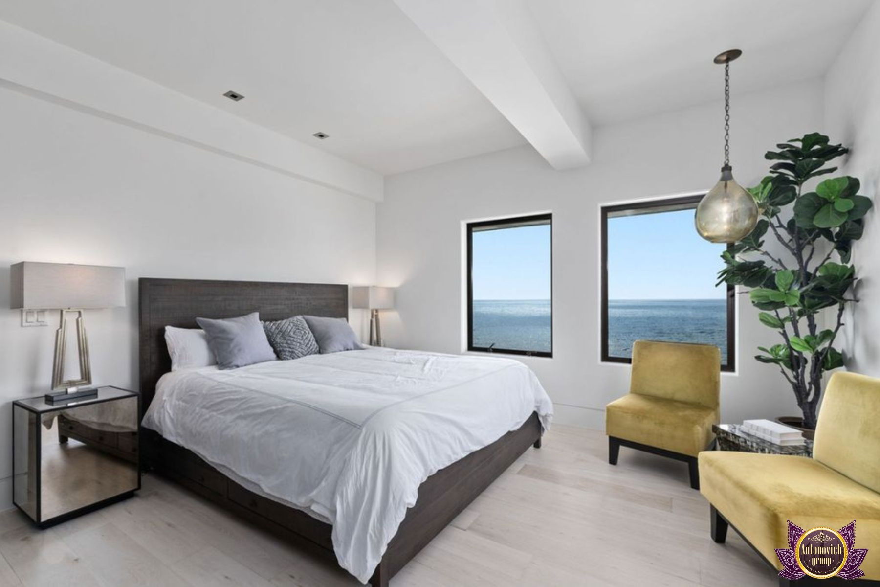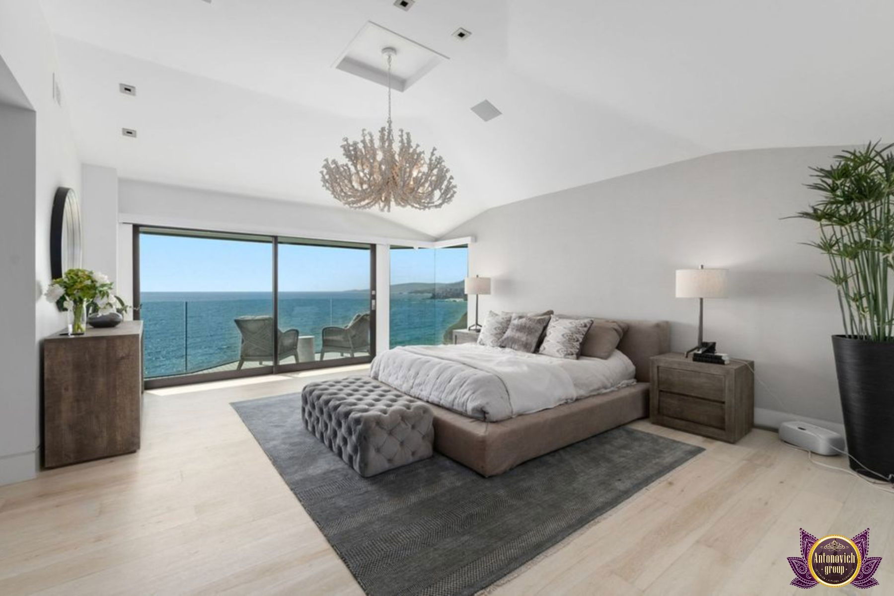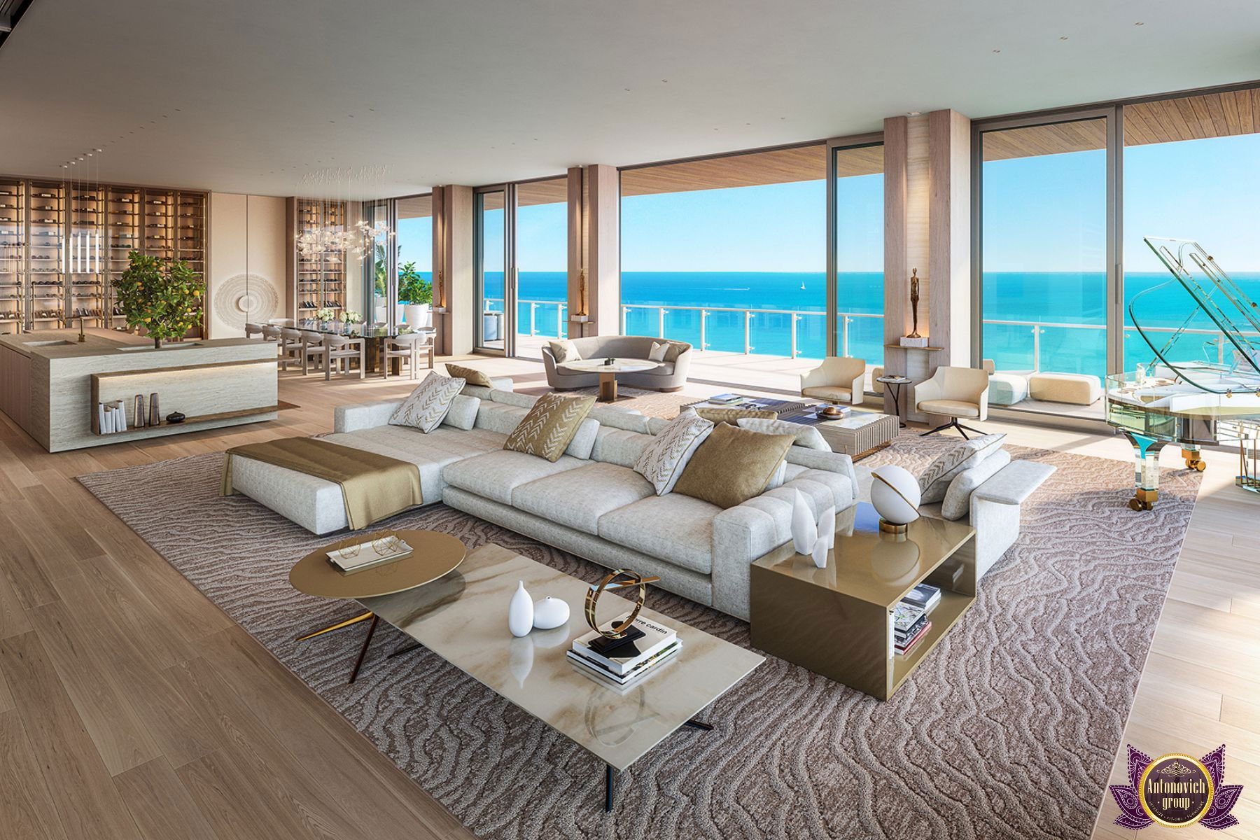 صممت مجموعة أنتونوفيتش هذا البنتهاوس الداخلي مع وضع الراحة في الاعتبار. مع لمسات متناغمة من الأناقة الفخمة ، قام فريق التصميم الداخلي لدينا بإحياء أجواء المزاج الداخلي الأكثر استرخاءً وهدوءًا. نوافذ زجاجية مفتوحة على مصراعيها تخلق مناظر بانورامية رائعة لنخلة جميرا. كفريق يقدم خدمات التصميم الداخلي الكامل والتجهيز والتجديد للوحدات السكنية الراقية مثل هذه البنتهاوس المذهلة في نخلة جميرا في أنانتارا ، بذلت مجموعة أنتونوفيتش كل جهدها ومواهبها وقدرتها على تسوية الاثاث والديكور الداخلي لتلبية المعايير العالية للمالك.