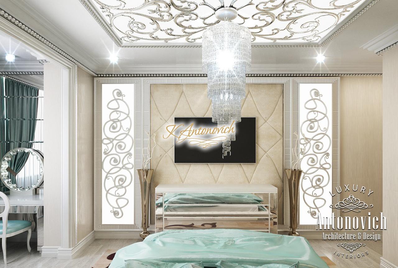 تصميم التصميم الداخلي للشقة مشروط في عدة إتجاهات. و تصميم التصميم الداخلي لغرفة النوم – هو تاريخ التصميم الداخلي مع المزاج الخاص. تصميم التصميم الداخلي الفاخر من استوديو لاكشري أنطونوفيتش ديزاين في كل مشروع يعكس اتجاهات الموضة في موضة التصميم الداخلي ، تفضيلات الذوق للعملاء، وأحلامهم حول الموطن المثالي والمكانة. تصميم الشقة في دبي منفذ في اسلوب التقليدية الحديثة مع لمسات خفيفة من آرت ديكو. التصميم الداخلي لغرفة النوم يشع بالحنان والدفء والأناقة والرقي. تصميم مشروع غرفة النوم يتضمن بعض التعديلات في الشقة. مصممين التصميم الداخلي في دبي وحدوا المنطقة الصغيرة مع مساحات غرفة النوم و قاموا بتنظيم ركن دافئ هناك مع طاولة خدر. ديكور الجداران على شكل لوحات عاكسة يوسع بصريا مساحة هذه المنطقة. نفسه التصميم الداخلي لغرفة النوم في الظلال الدافئة المشمسة، والذي أكده الحرير ذو ظلال اللون الفيروزي اللطيف في ديكور النافذة وزخرفة السرير. هذا عنصر الديكورالمألوف في التصاميم الداخلية لأي نمط وفقا للوحة الجدار اللطيفة في هذا التصميم الداخلي المؤلف لغرفة النوم يكملها ليونة ودفء. اللوحات المخملية المنجدة اللطيفة ذات ظل اللون الكريمي . و الضحلة الكبيرة من الالماس تكمل صورة التصميم الداخلي تعبيراً. مصممين التصميم الداخلي في دبي دائما استخداموا في عملهم فرص التكنولوجيات الجديدة. هذا هو وسيلة ممتازة لتحقيق قرارات التصميم الأكثر جرأة. في هذا المشروع، و بمساعدة أضواء LED الخلفية والمواد الجديدة، هي تنشأ الديكور الأصلي للجدران والسقف. المحراب مع القاعدة المضيئة من خلال الأنماط الحساسة تغمر التصميم الداخلي سحراً.