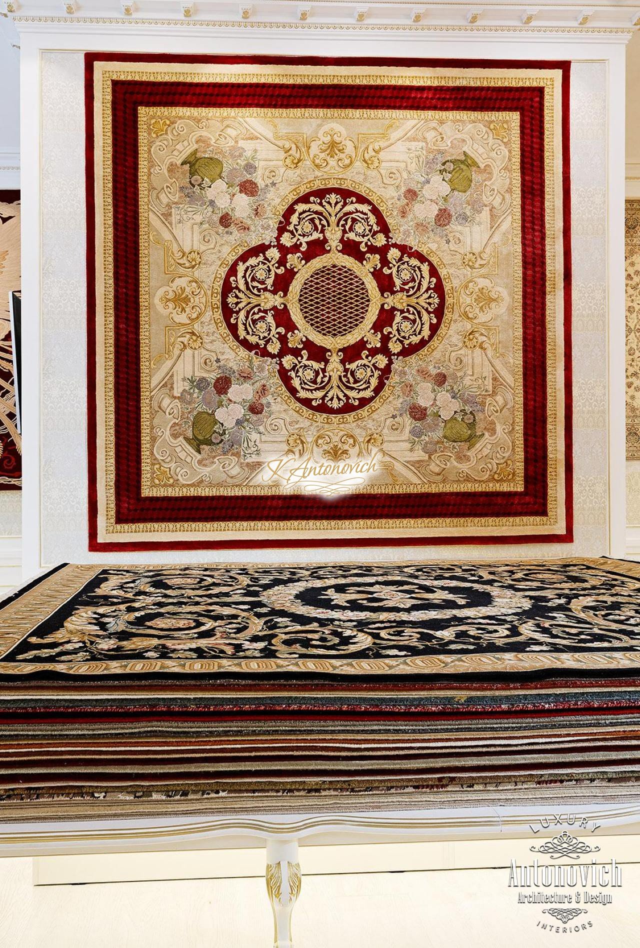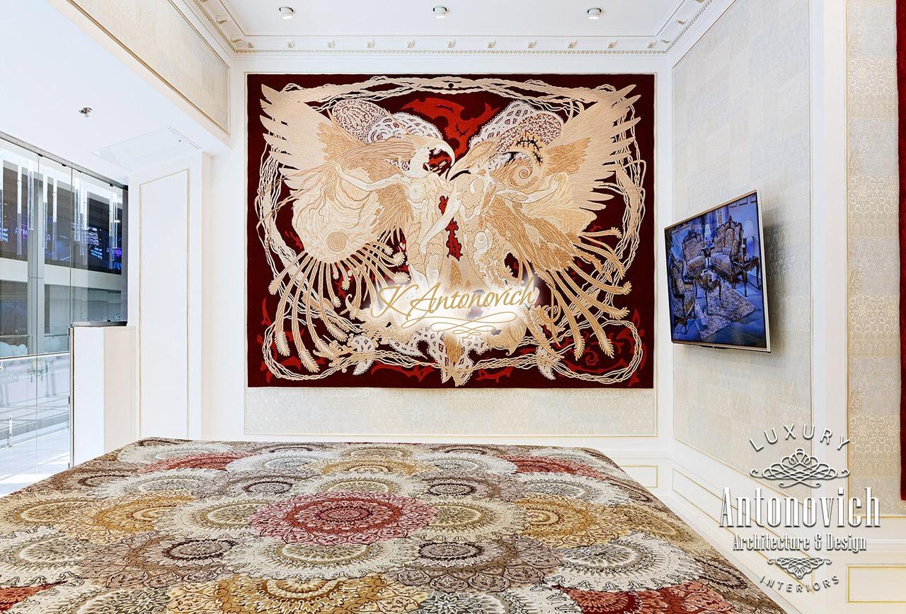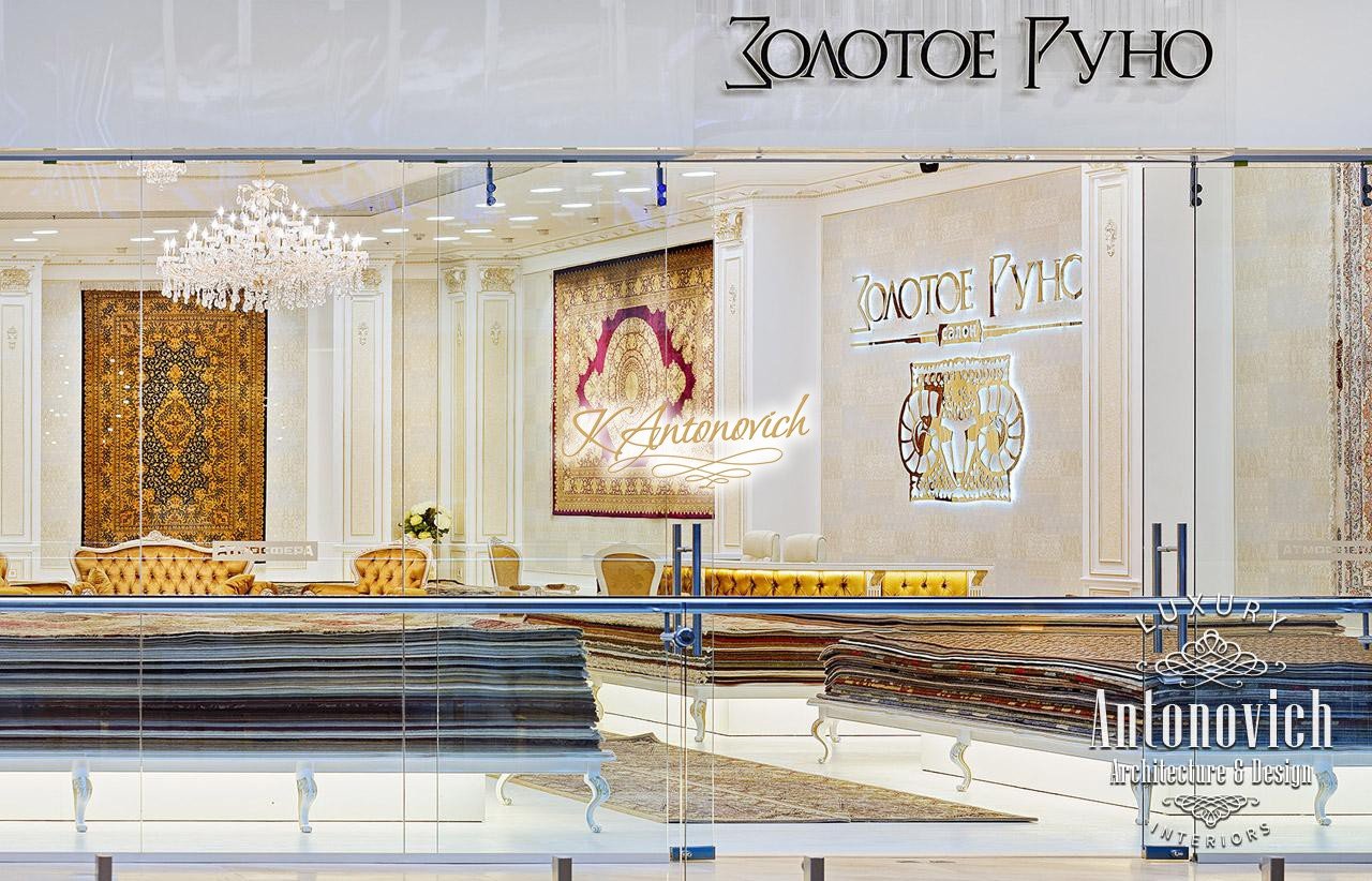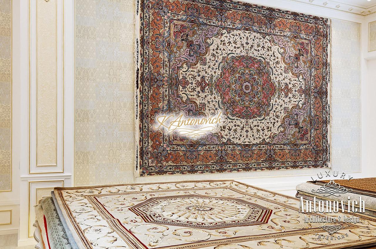 التصميم الفاخر للتصاميم الداخلية في دولة الإمارات العربية المتحدة من الاستوديو يؤكد تماما الغرض من الأماكن، ورؤيتهم والاتجاه. المشروع المؤلف لصالون السجاد الفاخر أصبح الداخلية قطع المنتجات الفاخرة. مصممين التصميم الداخلي في دبي نظموا تماما مساحة التصميم الداخلي. في المشروع سلطوا الضوء ببراعة على أهم شيء، السجاد الفاخر. وبذلك أنشأووا التصميم الداخلي والذي فيه يشعر كلا من المشترين والمديرين بالدفء والراحة. ويرتبط التصميم الداخلي ارتباطا وثيقا بمفهوم العلامة التجارية. هذا يسلط الضوء على الاستقبال الفاخر، والمزين بلوحة ناعمة باللون الذهبي مع علامة زرقاء. الأثاث المنجد يتناغم بشكل كامل مع عنصر الديكور. ويزين السقف العالي في المنتصف الثريا الأنيقة من الكريستال تحيط بها الدوامات الأنيقة من الزخارف الجصية. حول محيط السقف من أجل التأكيد على مزايا المنتجات وضع المصممين التصميم الداخلي أضواء دائرية للسقف. في ديكور الجدران أعمدة ناصعة البياض رائعة مطلية على الإطار بلون الذهب ألمع الخيارات المنتج. وهكذا، كل سجادة تشبه لوحة لفنان عظيم. و الإضاءة الإضافية تتيح للعملاء التمتع الكامل بجمال المنتج وتقييمه. كما يليق السجاد بالصالون في ديكورالأرضيات تحضر منتجات السجاد الفاخر. هذه اللحظة تملأ التصميم الداخلي بشعور لطيفا من دفء الراحة المنزلية. التصميم الداخلي في دبي – انه دائما مزيج متناغم من الفخامة والأداء الوظيفي. وكان الحل الرائع والمشرق رفع البضائع على الموائد الواسعة على الأرجل المنحنية بأمان.