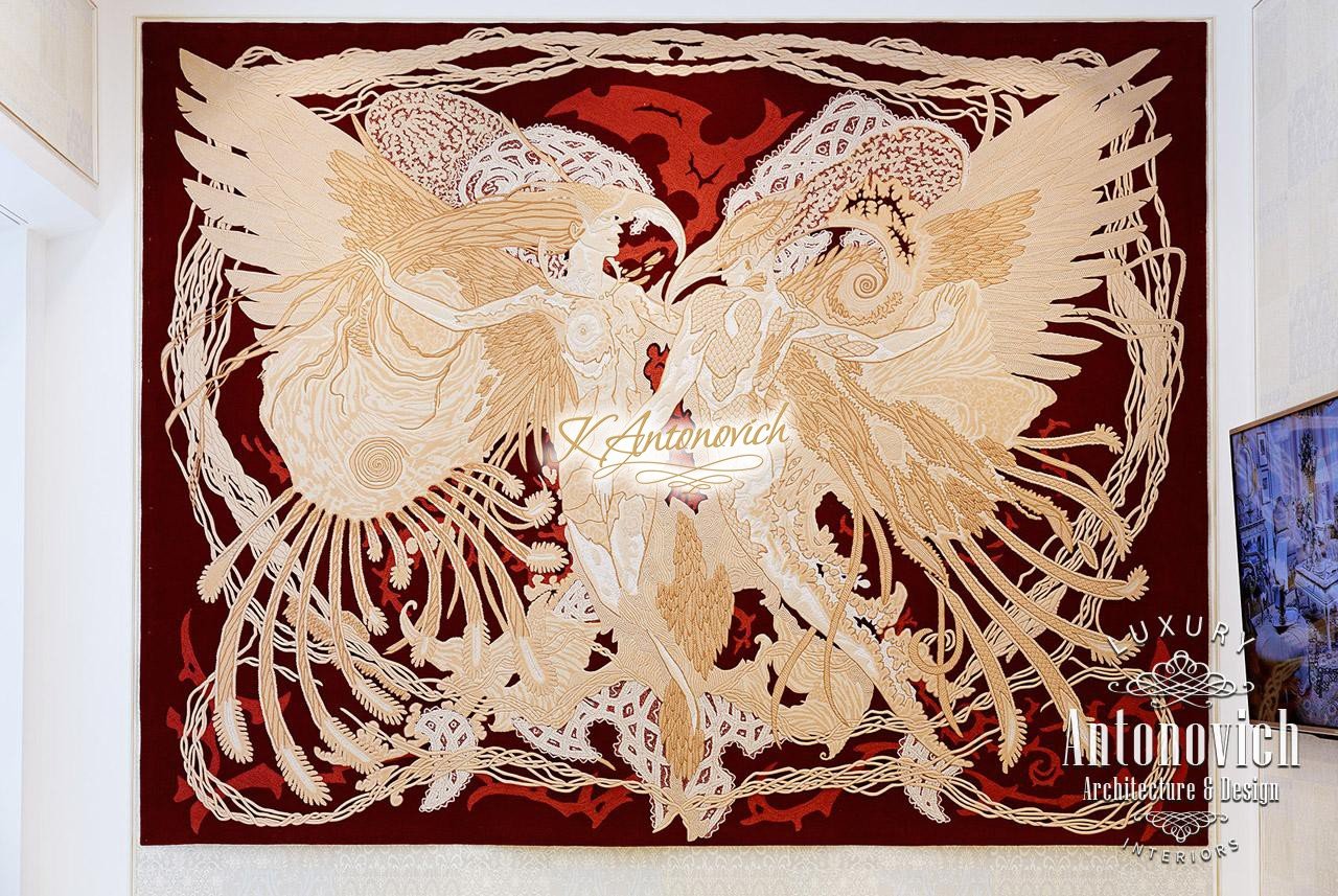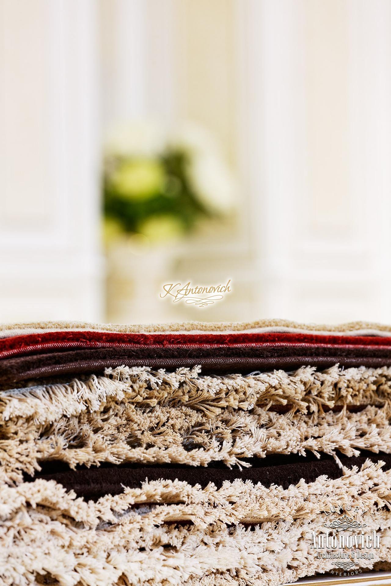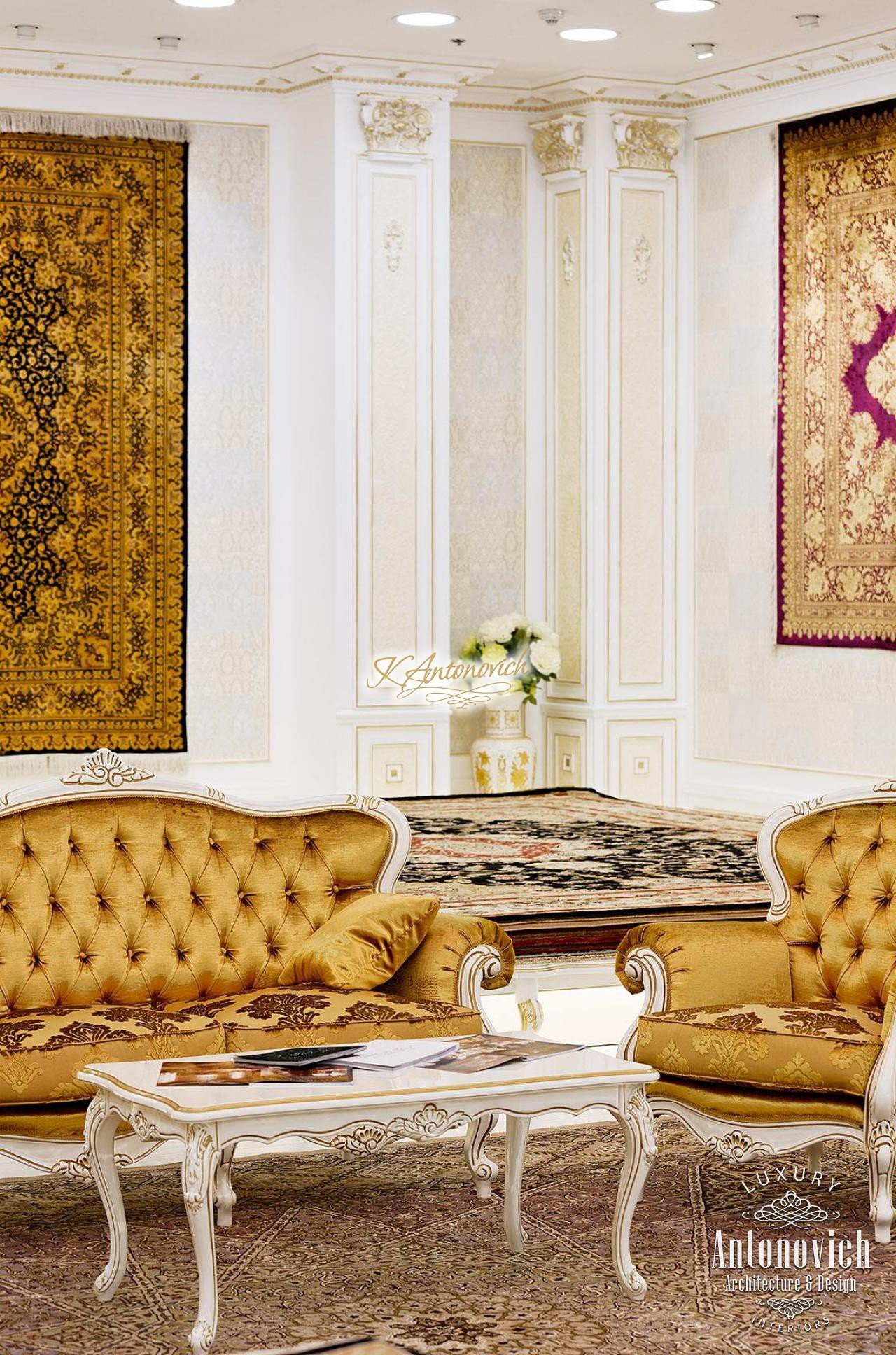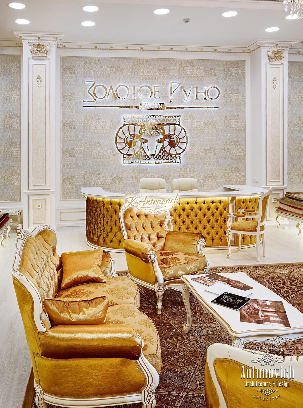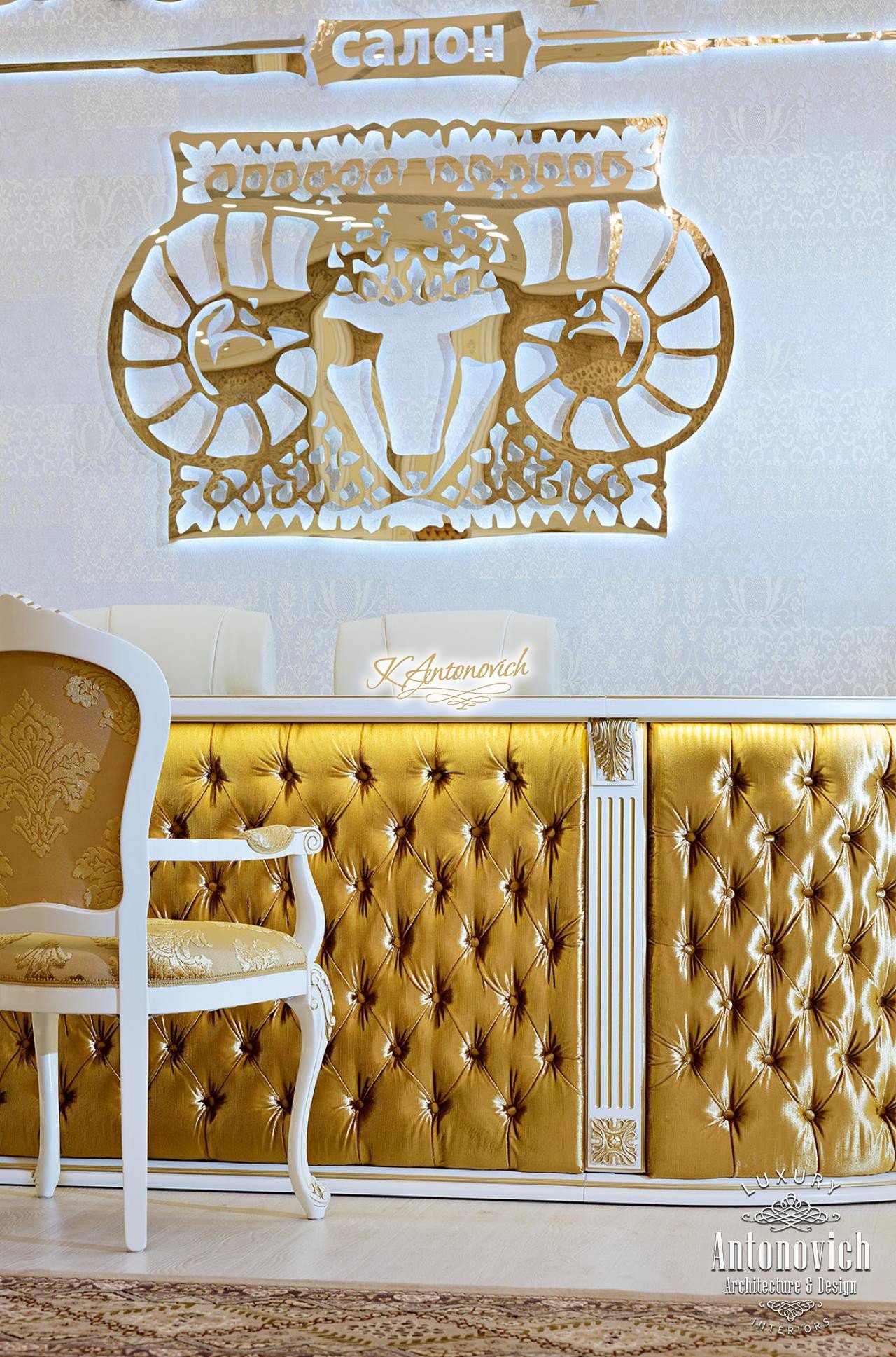 التصميم الفاخر للتصاميم الداخلية في دولة الإمارات العربية المتحدة من الاستوديو يؤكد تماما الغرض من الأماكن، ورؤيتهم والاتجاه. المشروع المؤلف لصالون السجاد الفاخر أصبح الداخلية قطع المنتجات الفاخرة. مصممين التصميم الداخلي في دبي نظموا تماما مساحة التصميم الداخلي. في المشروع سلطوا الضوء ببراعة على أهم شيء، السجاد الفاخر. وبذلك أنشأووا التصميم الداخلي والذي فيه يشعر كلا من المشترين والمديرين بالدفء والراحة. ويرتبط التصميم الداخلي ارتباطا وثيقا بمفهوم العلامة التجارية. هذا يسلط الضوء على الاستقبال الفاخر، والمزين بلوحة ناعمة باللون الذهبي مع علامة زرقاء. الأثاث المنجد يتناغم بشكل كامل مع عنصر الديكور. ويزين السقف العالي في المنتصف الثريا الأنيقة من الكريستال تحيط بها الدوامات الأنيقة من الزخارف الجصية. حول محيط السقف من أجل التأكيد على مزايا المنتجات وضع المصممين التصميم الداخلي أضواء دائرية للسقف. في ديكور الجدران أعمدة ناصعة البياض رائعة مطلية على الإطار بلون الذهب ألمع الخيارات المنتج. وهكذا، كل سجادة تشبه لوحة لفنان عظيم. و الإضاءة الإضافية تتيح للعملاء التمتع الكامل بجمال المنتج وتقييمه. كما يليق السجاد بالصالون في ديكورالأرضيات تحضر منتجات السجاد الفاخر. هذه اللحظة تملأ التصميم الداخلي بشعور لطيفا من دفء الراحة المنزلية. التصميم الداخلي في دبي – انه دائما مزيج متناغم من الفخامة والأداء الوظيفي. وكان الحل الرائع والمشرق رفع البضائع على الموائد الواسعة على الأرجل المنحنية بأمان.