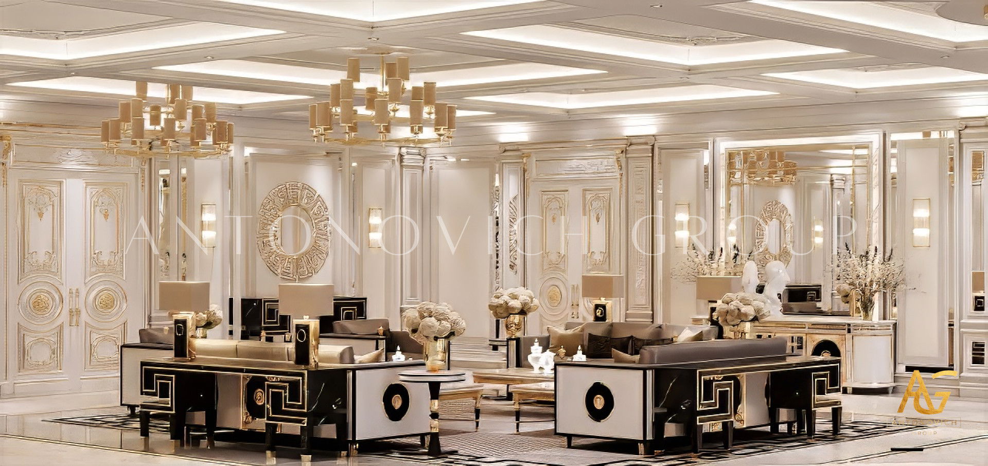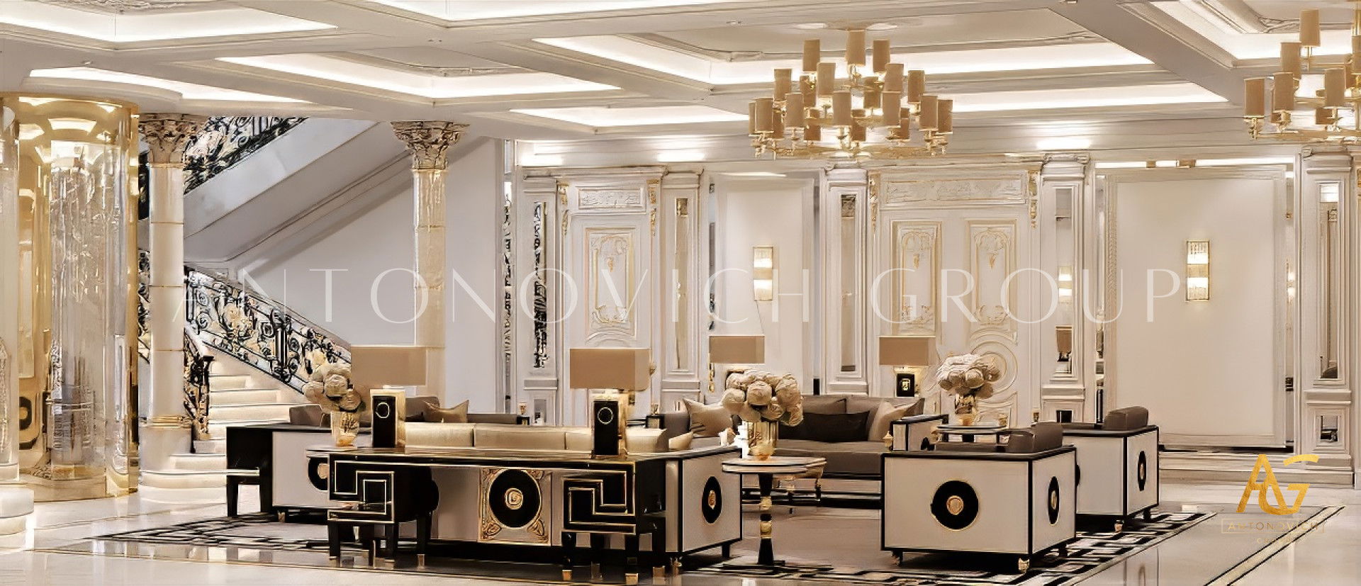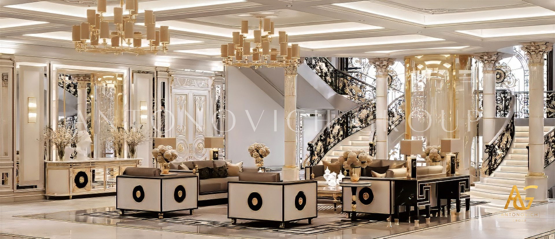 واحدة من سمات مجموعة أنتونوفيتش هي نهجها الشامل في التصميم الداخلي والتجهيز في قطر. تشمل خدماتهم لغرف المعيشة في الفيلات الفاخرة: