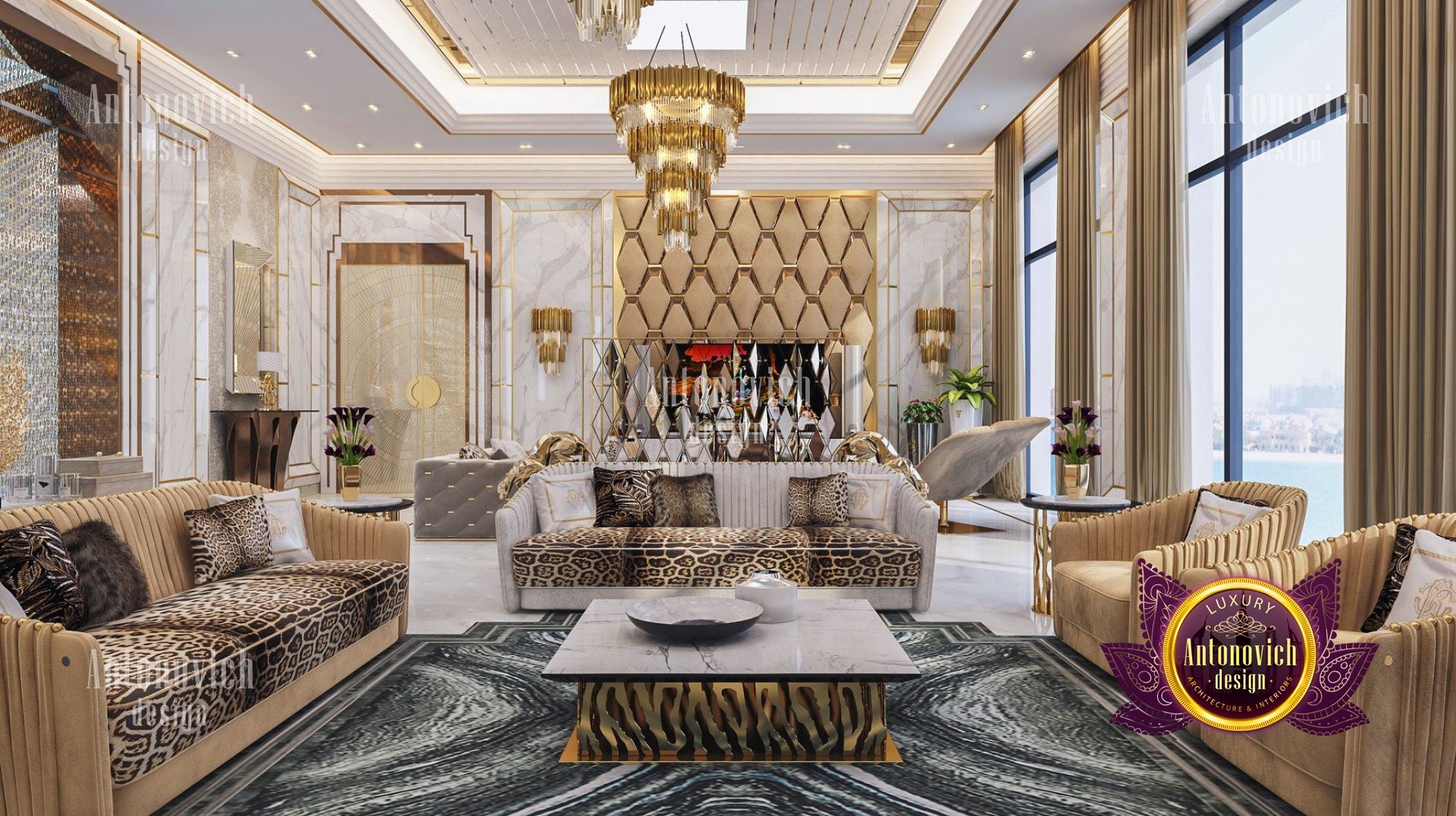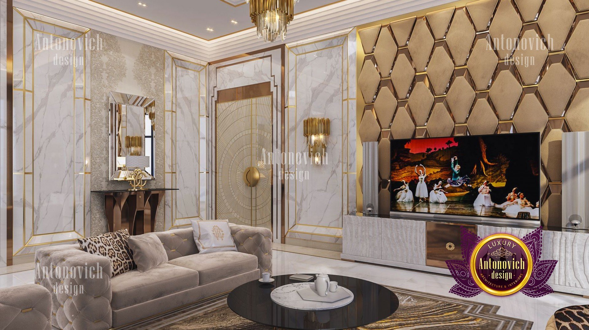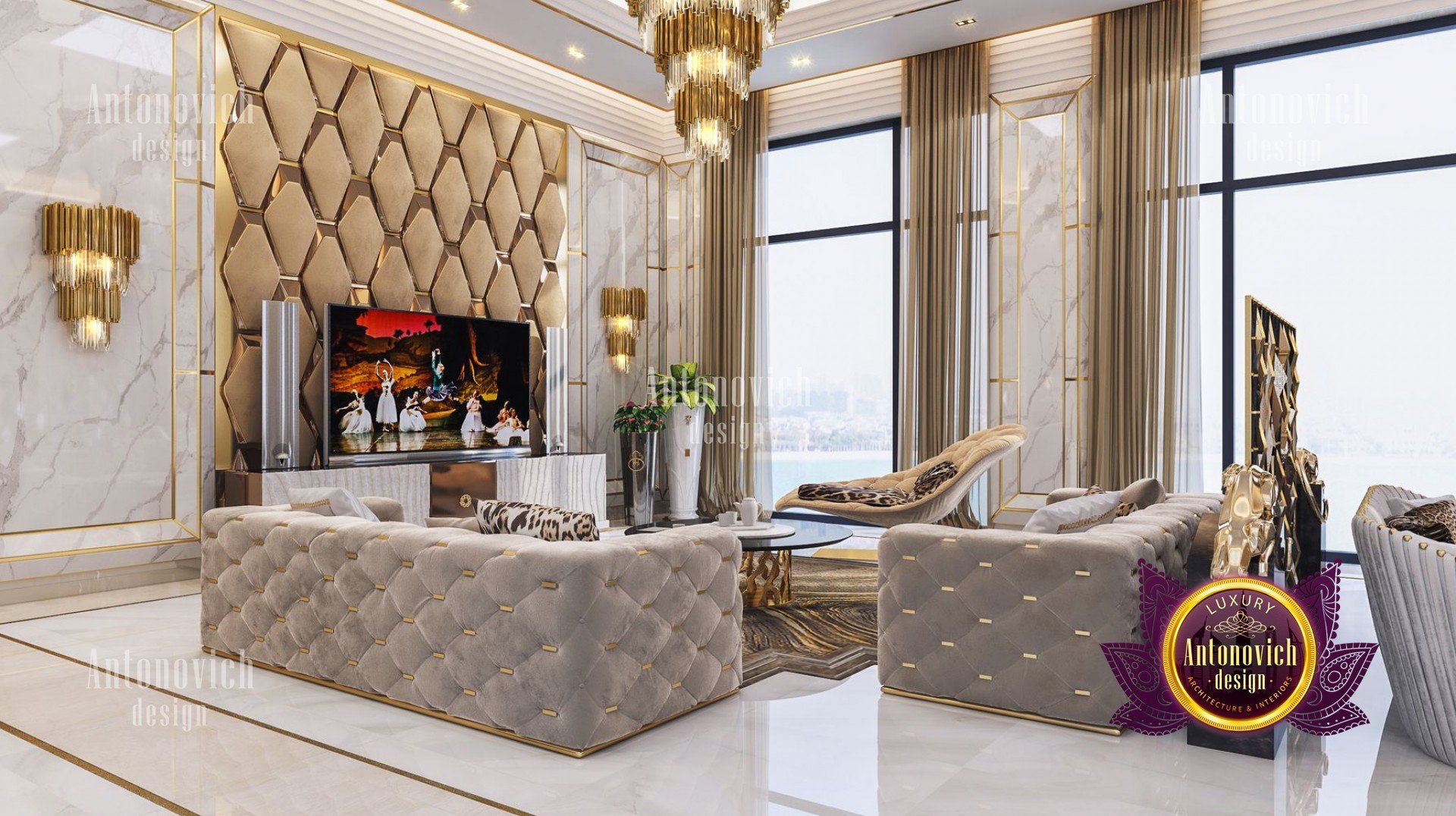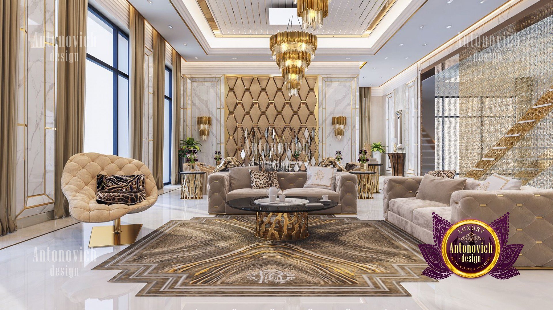 ما الذي يجعل غرفة المعيشة راقية؟ هل هو اللون؟ الاثاث؟ الثريا؟ يعتقد فريقنا أن كل هذه الأشياء ضرورية في بناء غرفة نوم مصقولة ومصممة جيدًا. يتم أخذ هذه العناصر في الاعتبار حتى تبدو غرفة المعيشة الخاصة بك أكثر حيوية وأناقة. إنه المكان الذي تستمتع فيه بالضيوف ويكون بمثابة منطقة استقبال في منزلك. يتأكد فريقنا من أننا نقدم لمنزلك الجمال الذي سيعكس شخصيتك. الفخامة هي الكلمة لوصف غرفة المعيشة هذه. تضبط نغماته الفخمة المزاج بينما الأرضية الرخامية والثريا الكريستالية هي الخيارات المثالية للقطع التكميلية. ستلاحظ الوسادة المنجدة باللون الرمادي وهو لون محايد يوازن جماليات الغرفة. تضفي لمسات الألوان الداكنة مظهرًا راقيًا بذهبي ساحر. يلفت الجدار اللامع على شكل قرص العسل الأنظار على الفور ، بينما تخلق البطانات الذهبية على الجدران الرخامية لمسة نهائية مذهلة. هذا يخلق تفاصيل معدنية سرية تضيف لهجة مذهلة.