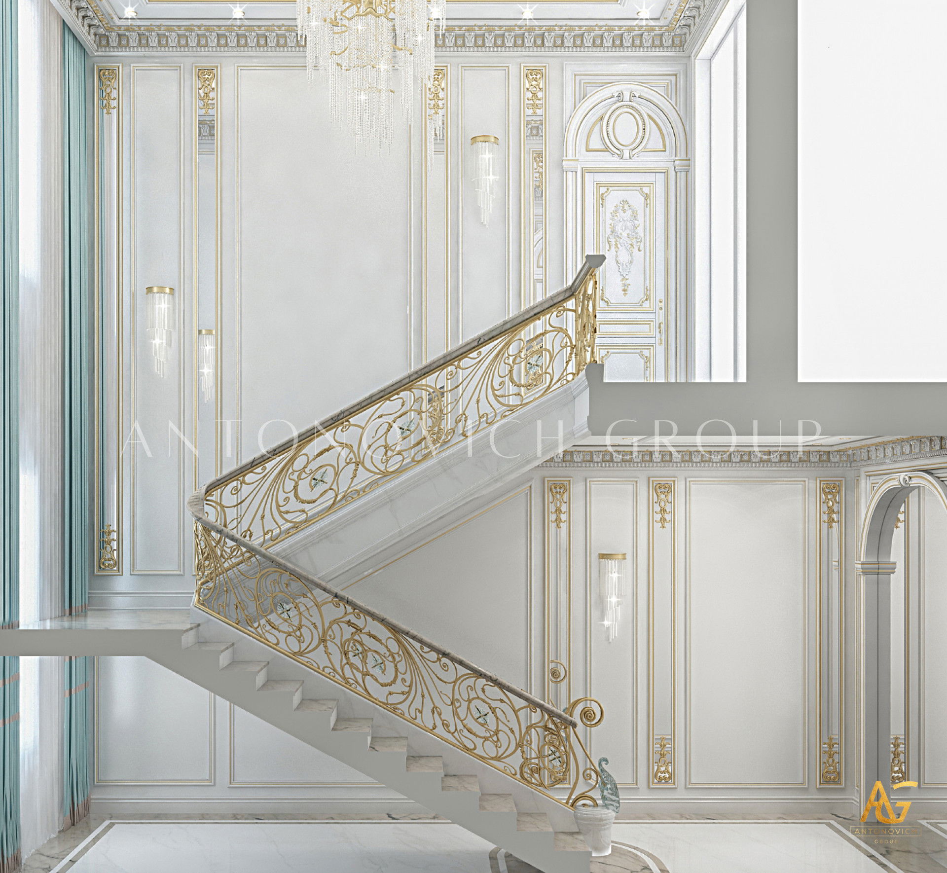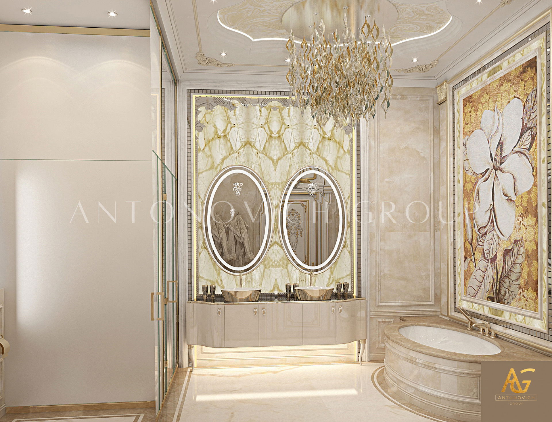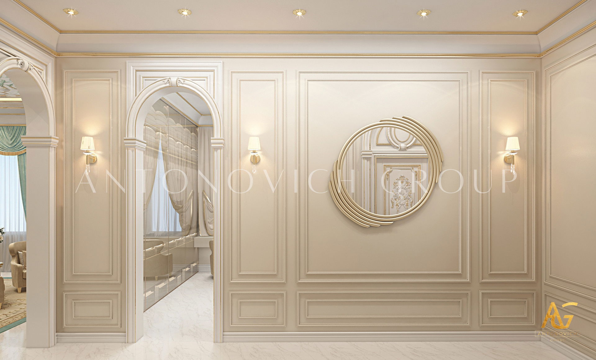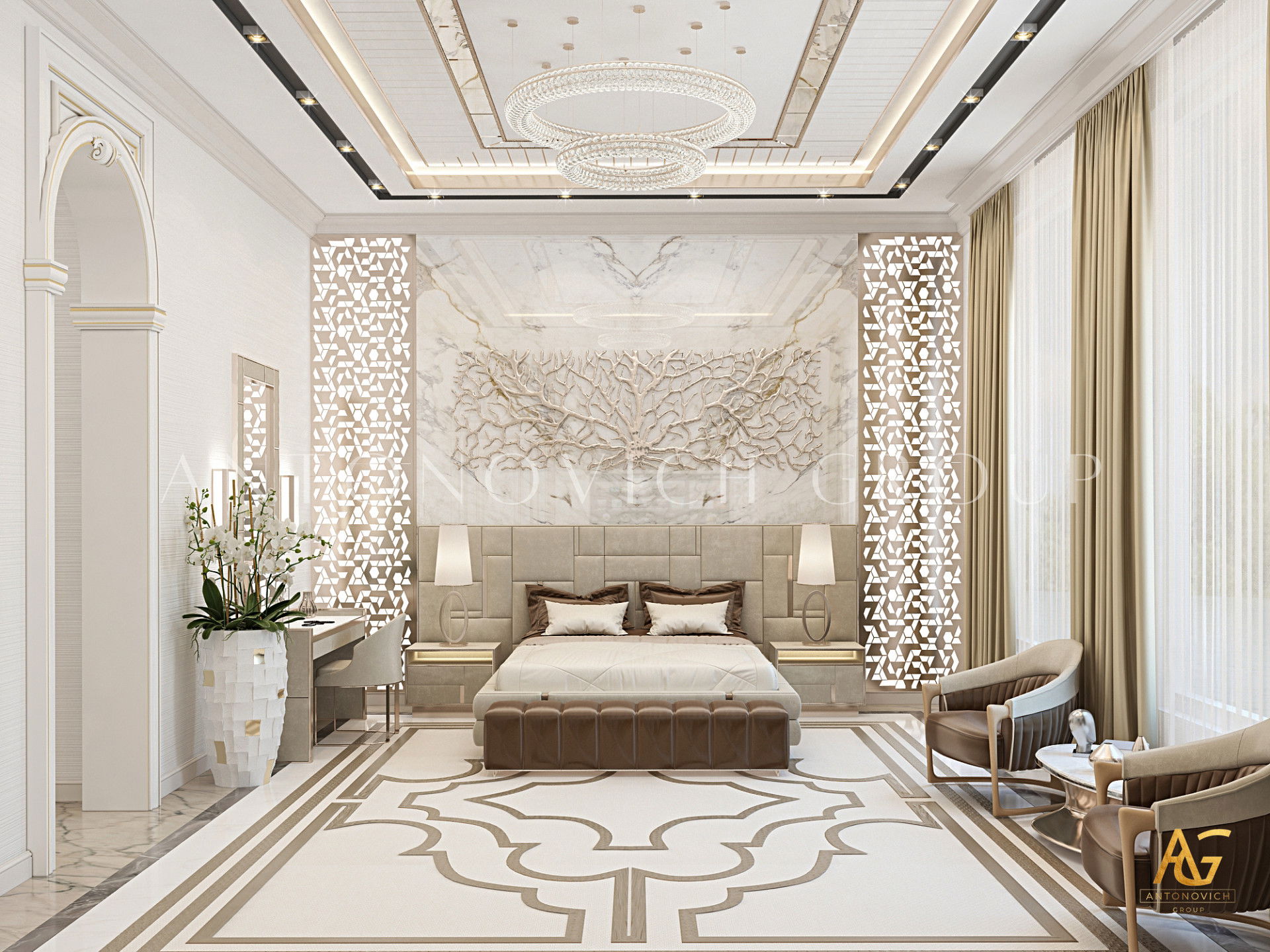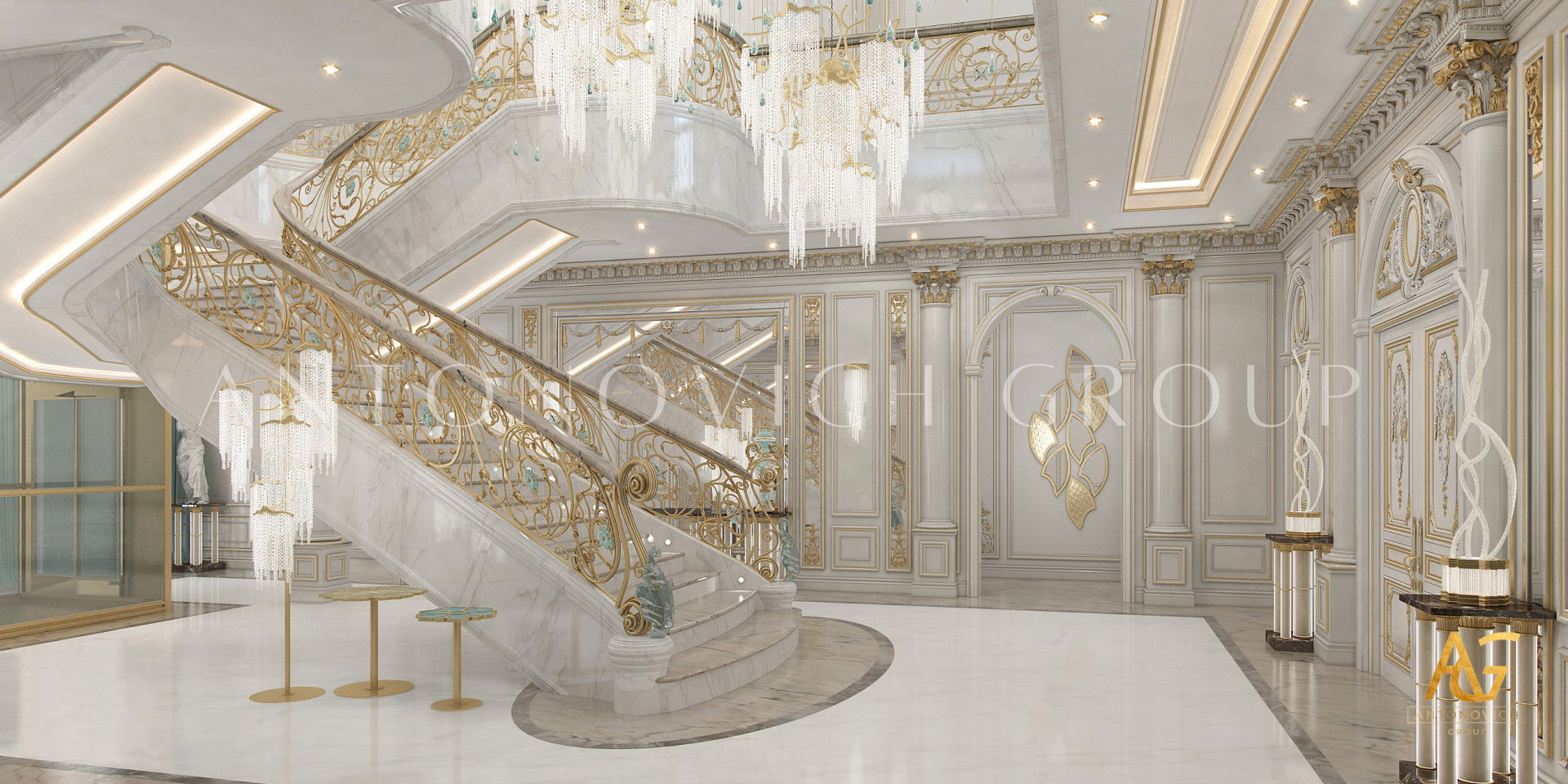 يمتلئ التصميم الداخلي لهذه الفيلا المرموقة بأجواء وديكورات داخلية لا تصدق فقد تم تصميمها بدقة حتى الكمال. لقد قامت لاكشري انتونوفيتش ديزاين باداء التصميم الأكثر إرضاءً الذي يتميز بعظمة التوازن في الأسلوب والمساحات ، وذلك بفضل نظرية التباعد المناسب وتطبيقات التصميم الخبيرة. وعند الدخول إلى هذا التصميم الداخلي النيوكلاسيكي، ستلاحظ المجموعة الأكثر روعة للتصميم الداخلي للقاعة ، والتي تتكون من الديكورات الفاخرة الباهظة الثمن ذات الطراز الملكي. وقد تم تصميم غرف النوم والمسرح المنزلي بشكل جميل بتصميم داخلي كلاسيكي حديث. وعلى عكس التصميم الداخلي للمنزل الحديث النموذجي ، قام فريق التصميم الداخلي بإنشاء تطبيقات تصميم فنية وإبداعية للغاية من أجل تلبية جميع متطلبات المشروع. فقد حققت لاكشري أنطونوفيتش ديزاين أفضل نتائج التشطيب مع اندماج رائع للتصميم الداخلي الكلاسيكي باستخدام مجموعة مختلفة من الأثاث والديكورات الحديثة.