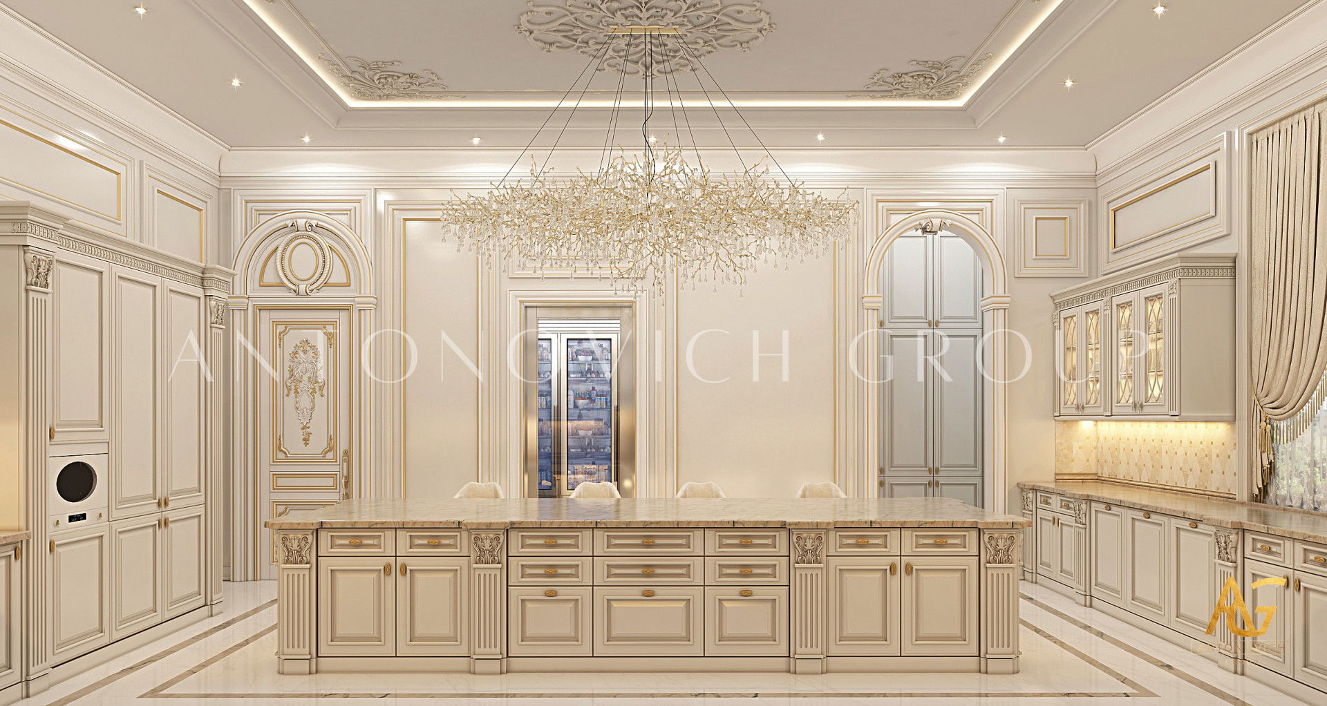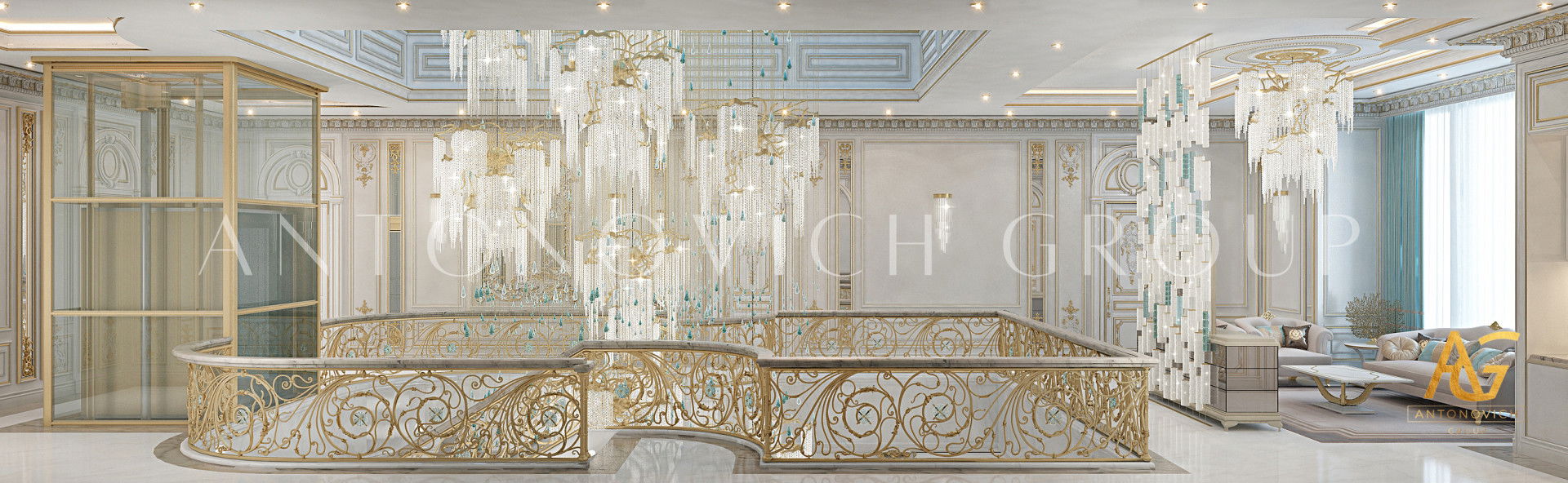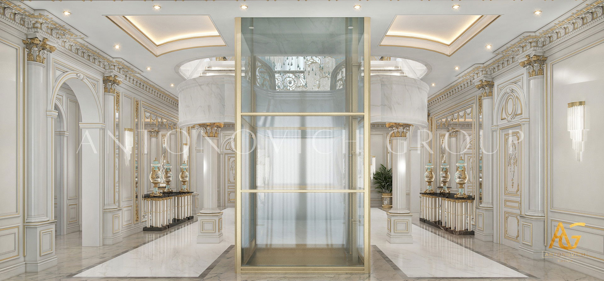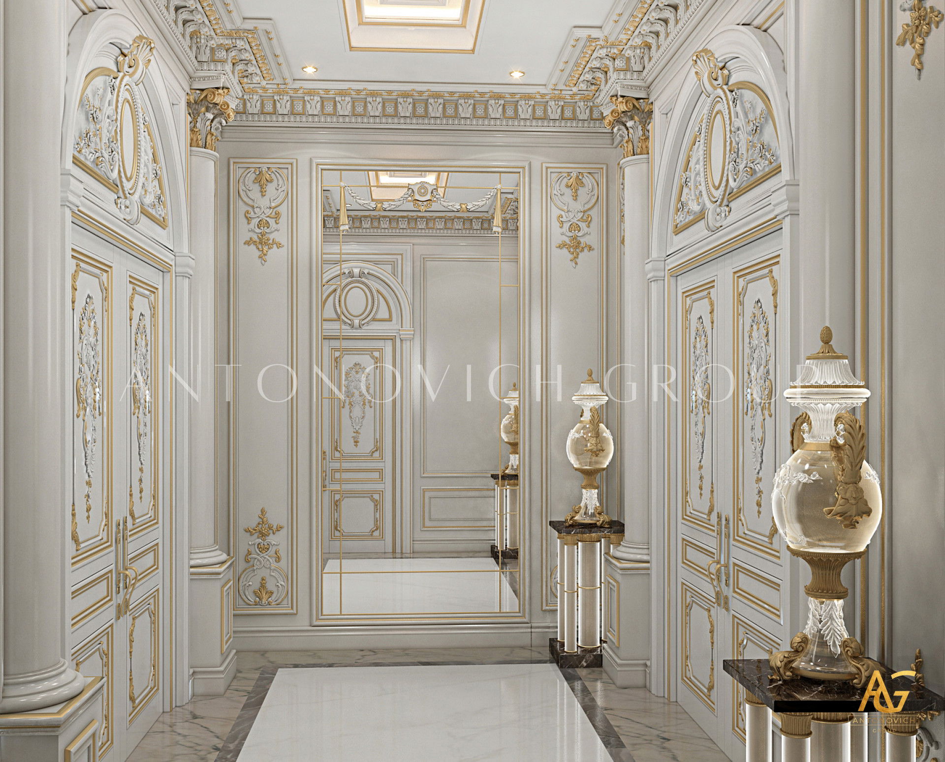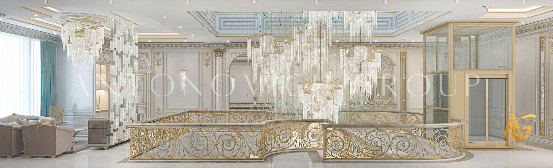 يمتلئ التصميم الداخلي لهذه الفيلا المرموقة بأجواء وديكورات داخلية لا تصدق فقد تم تصميمها بدقة حتى الكمال. لقد قامت لاكشري انتونوفيتش ديزاين باداء التصميم الأكثر إرضاءً الذي يتميز بعظمة التوازن في الأسلوب والمساحات ، وذلك بفضل نظرية التباعد المناسب وتطبيقات التصميم الخبيرة. وعند الدخول إلى هذا التصميم الداخلي النيوكلاسيكي، ستلاحظ المجموعة الأكثر روعة للتصميم الداخلي للقاعة ، والتي تتكون من الديكورات الفاخرة الباهظة الثمن ذات الطراز الملكي. وقد تم تصميم غرف النوم والمسرح المنزلي بشكل جميل بتصميم داخلي كلاسيكي حديث. وعلى عكس التصميم الداخلي للمنزل الحديث النموذجي ، قام فريق التصميم الداخلي بإنشاء تطبيقات تصميم فنية وإبداعية للغاية من أجل تلبية جميع متطلبات المشروع. فقد حققت لاكشري أنطونوفيتش ديزاين أفضل نتائج التشطيب مع اندماج رائع للتصميم الداخلي الكلاسيكي باستخدام مجموعة مختلفة من الأثاث والديكورات الحديثة.