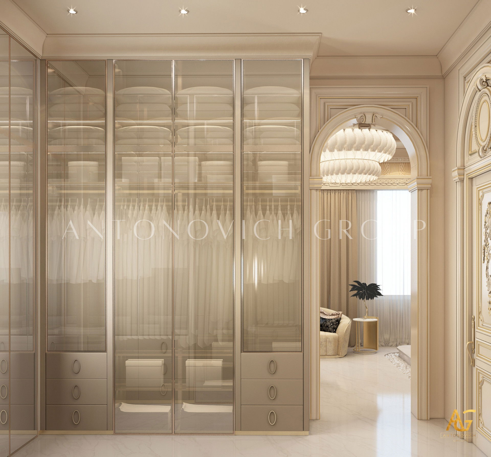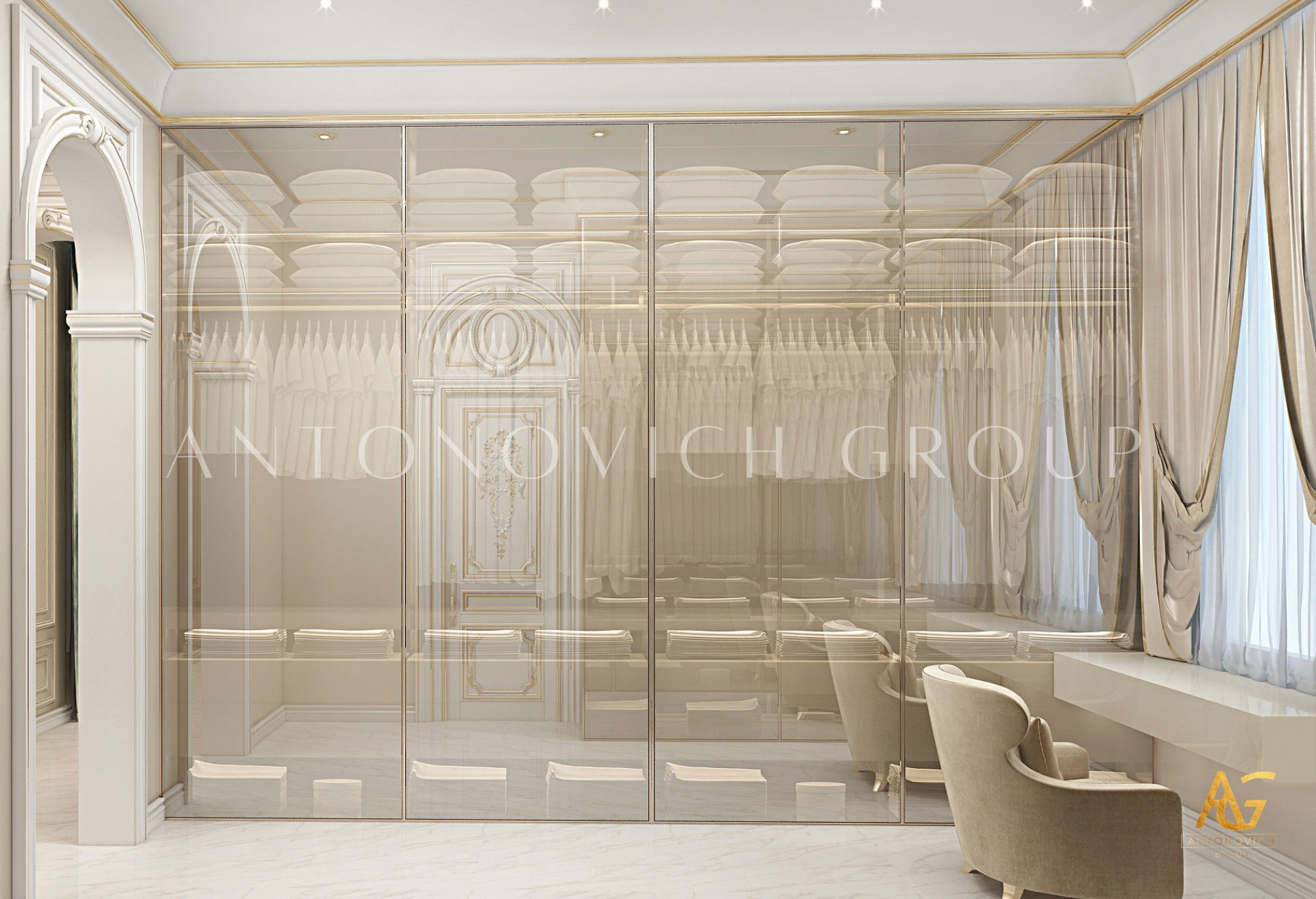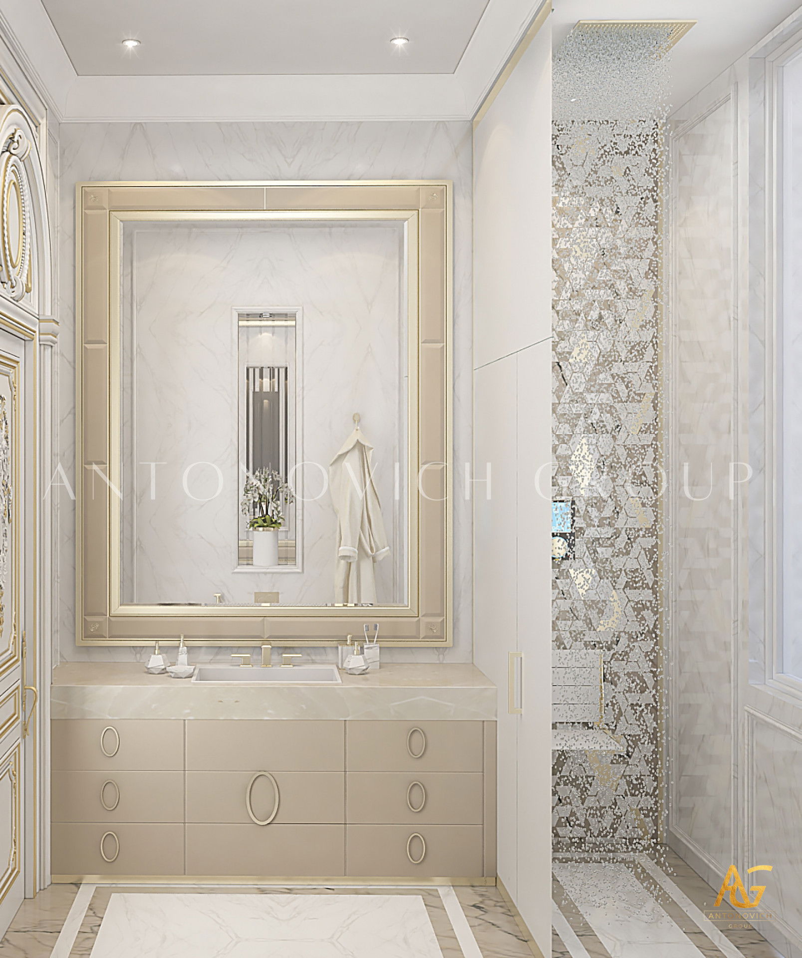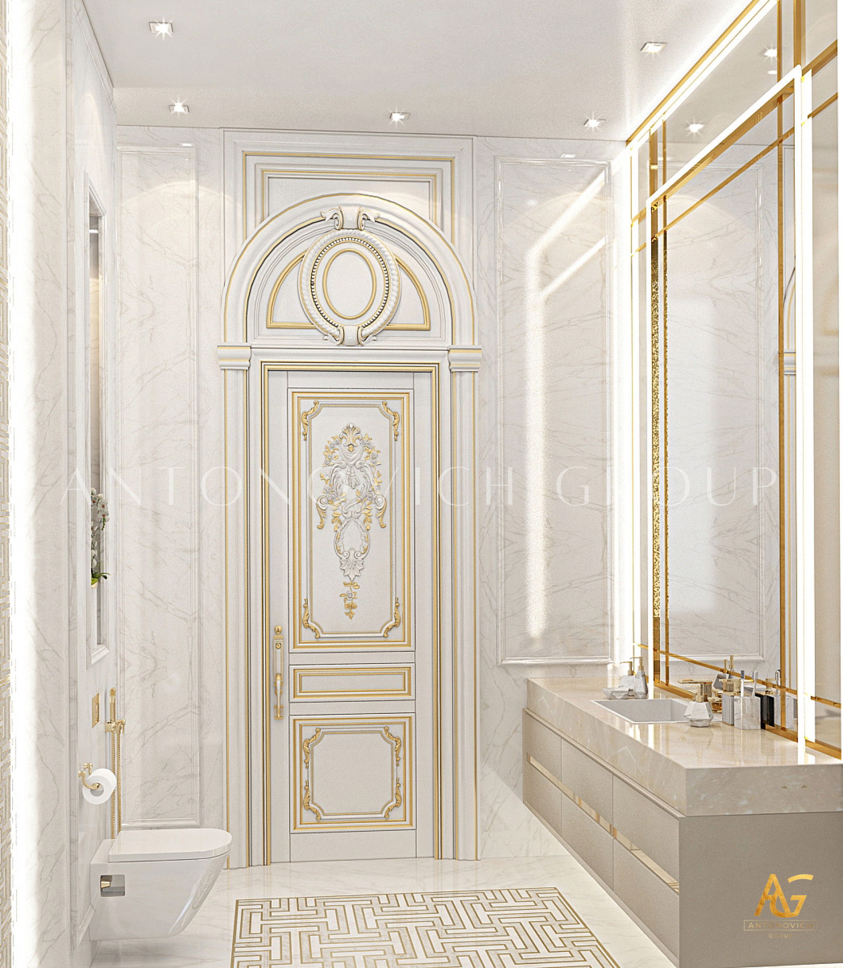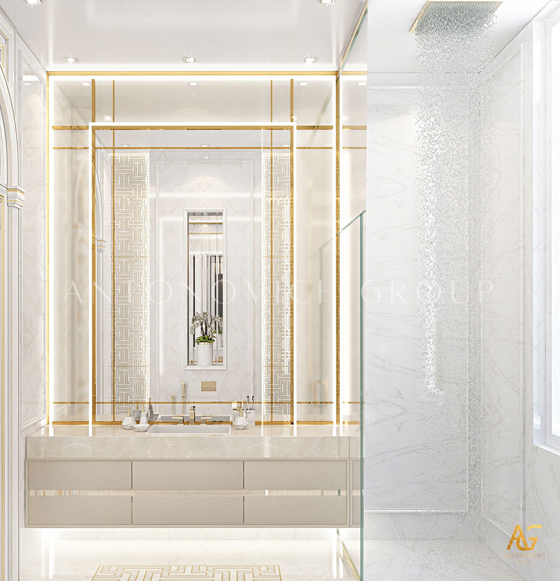 يمتلئ التصميم الداخلي لهذه الفيلا المرموقة بأجواء وديكورات داخلية لا تصدق فقد تم تصميمها بدقة حتى الكمال. لقد قامت لاكشري انتونوفيتش ديزاين باداء التصميم الأكثر إرضاءً الذي يتميز بعظمة التوازن في الأسلوب والمساحات ، وذلك بفضل نظرية التباعد المناسب وتطبيقات التصميم الخبيرة. وعند الدخول إلى هذا التصميم الداخلي النيوكلاسيكي، ستلاحظ المجموعة الأكثر روعة للتصميم الداخلي للقاعة ، والتي تتكون من الديكورات الفاخرة الباهظة الثمن ذات الطراز الملكي. وقد تم تصميم غرف النوم والمسرح المنزلي بشكل جميل بتصميم داخلي كلاسيكي حديث. وعلى عكس التصميم الداخلي للمنزل الحديث النموذجي ، قام فريق التصميم الداخلي بإنشاء تطبيقات تصميم فنية وإبداعية للغاية من أجل تلبية جميع متطلبات المشروع. فقد حققت لاكشري أنطونوفيتش ديزاين أفضل نتائج التشطيب مع اندماج رائع للتصميم الداخلي الكلاسيكي باستخدام مجموعة مختلفة من الأثاث والديكورات الحديثة.