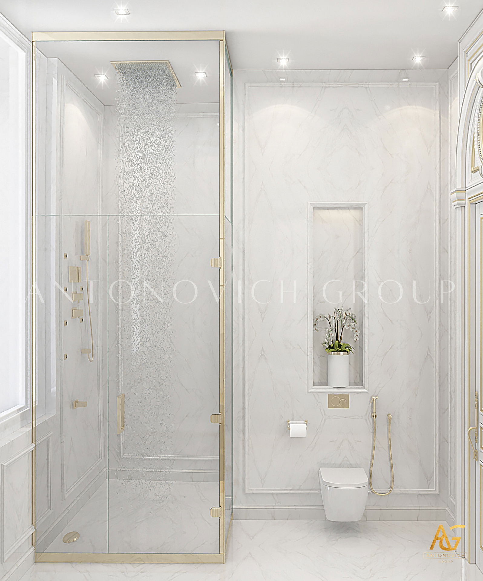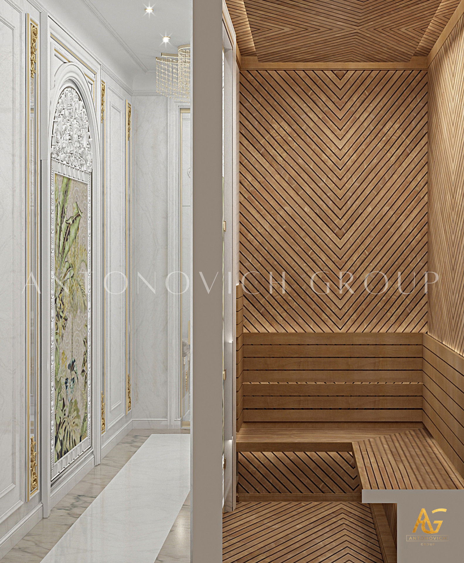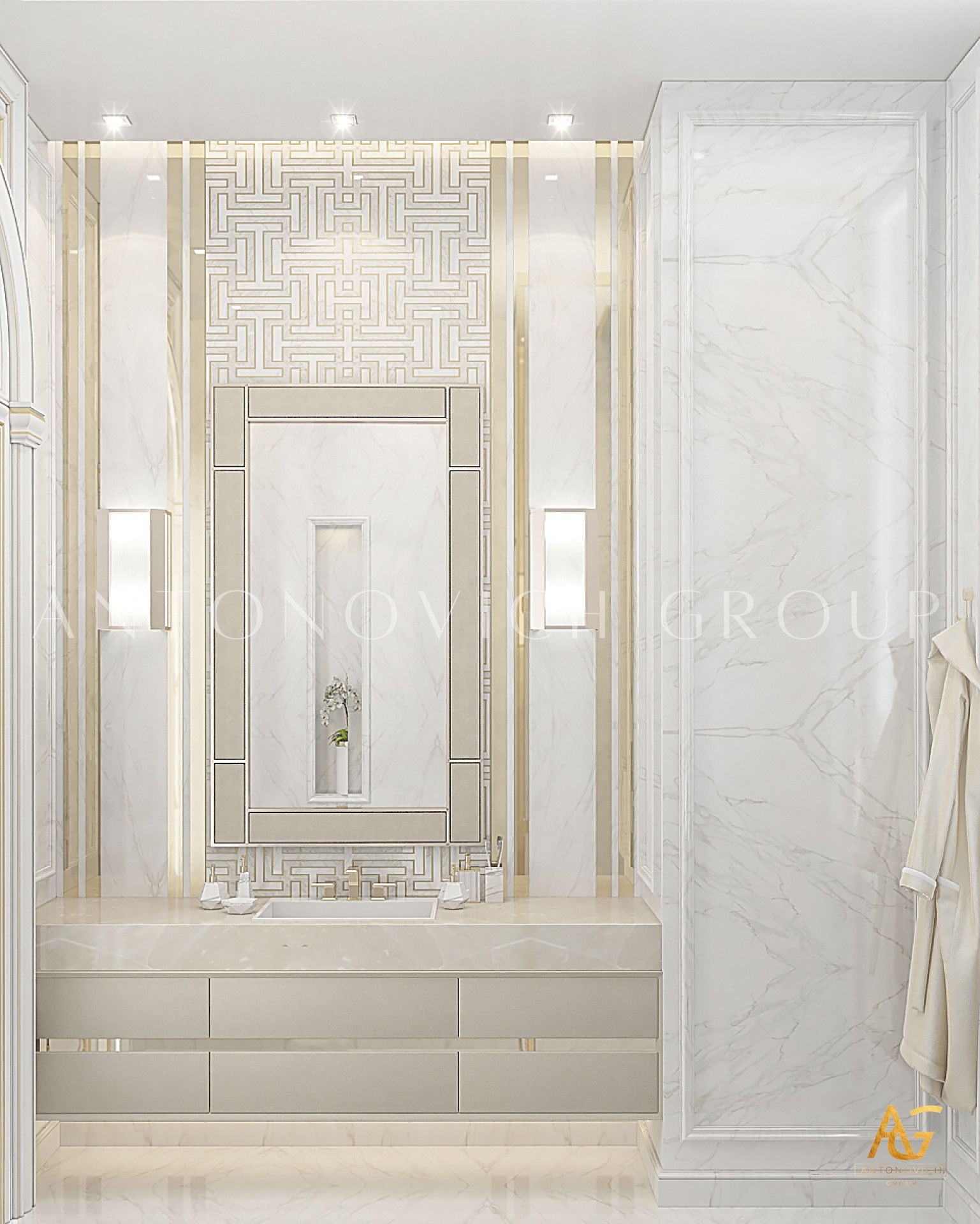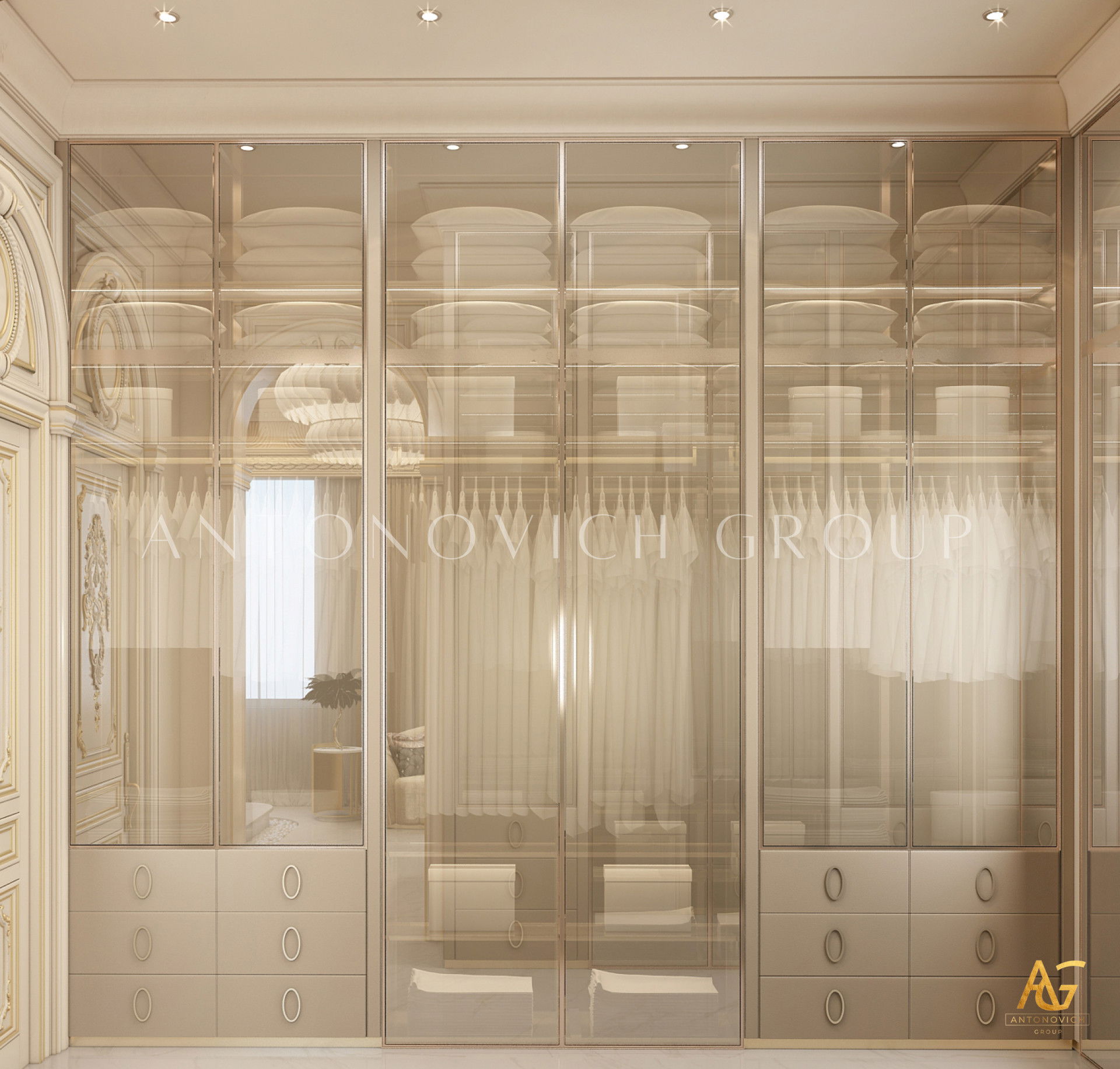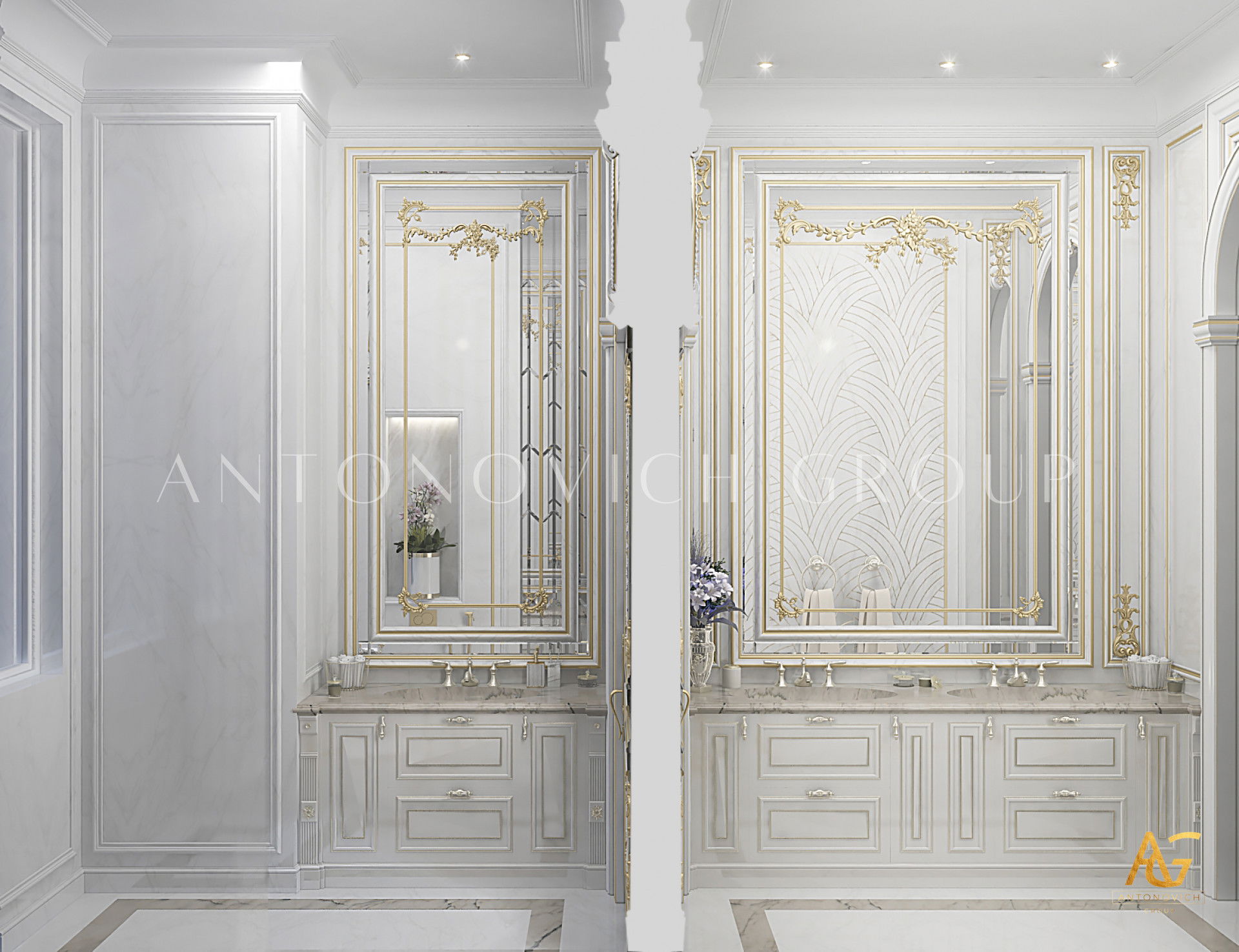 يمتلئ التصميم الداخلي لهذه الفيلا المرموقة بأجواء وديكورات داخلية لا تصدق فقد تم تصميمها بدقة حتى الكمال. لقد قامت لاكشري انتونوفيتش ديزاين باداء التصميم الأكثر إرضاءً الذي يتميز بعظمة التوازن في الأسلوب والمساحات ، وذلك بفضل نظرية التباعد المناسب وتطبيقات التصميم الخبيرة. وعند الدخول إلى هذا التصميم الداخلي النيوكلاسيكي، ستلاحظ المجموعة الأكثر روعة للتصميم الداخلي للقاعة ، والتي تتكون من الديكورات الفاخرة الباهظة الثمن ذات الطراز الملكي. وقد تم تصميم غرف النوم والمسرح المنزلي بشكل جميل بتصميم داخلي كلاسيكي حديث. وعلى عكس التصميم الداخلي للمنزل الحديث النموذجي ، قام فريق التصميم الداخلي بإنشاء تطبيقات تصميم فنية وإبداعية للغاية من أجل تلبية جميع متطلبات المشروع. فقد حققت لاكشري أنطونوفيتش ديزاين أفضل نتائج التشطيب مع اندماج رائع للتصميم الداخلي الكلاسيكي باستخدام مجموعة مختلفة من الأثاث والديكورات الحديثة.