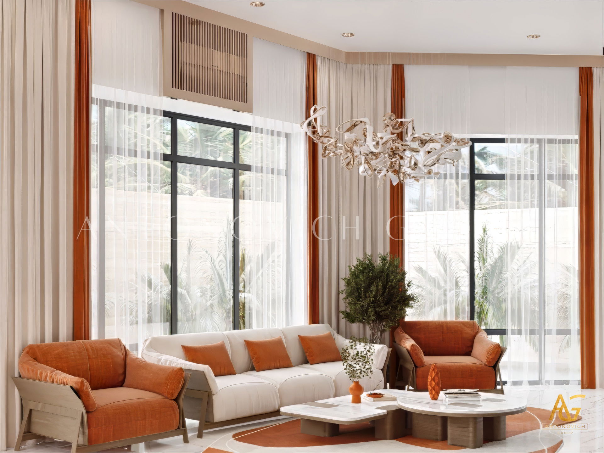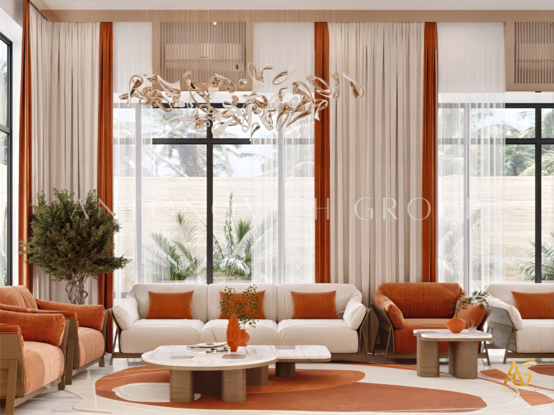 تتمثل إحدى نقاط قوة مجموعة أنطونوفيتش في تصميم الأثاث المخصص الذي يكمل تمامًا نسب وأسلوب غرفة المعيشة. من الأرائك المقطعية الفاخرة إلى طاولات القهوة المعقدة، يتم تصميم كل قطعة للراحة والرقي.