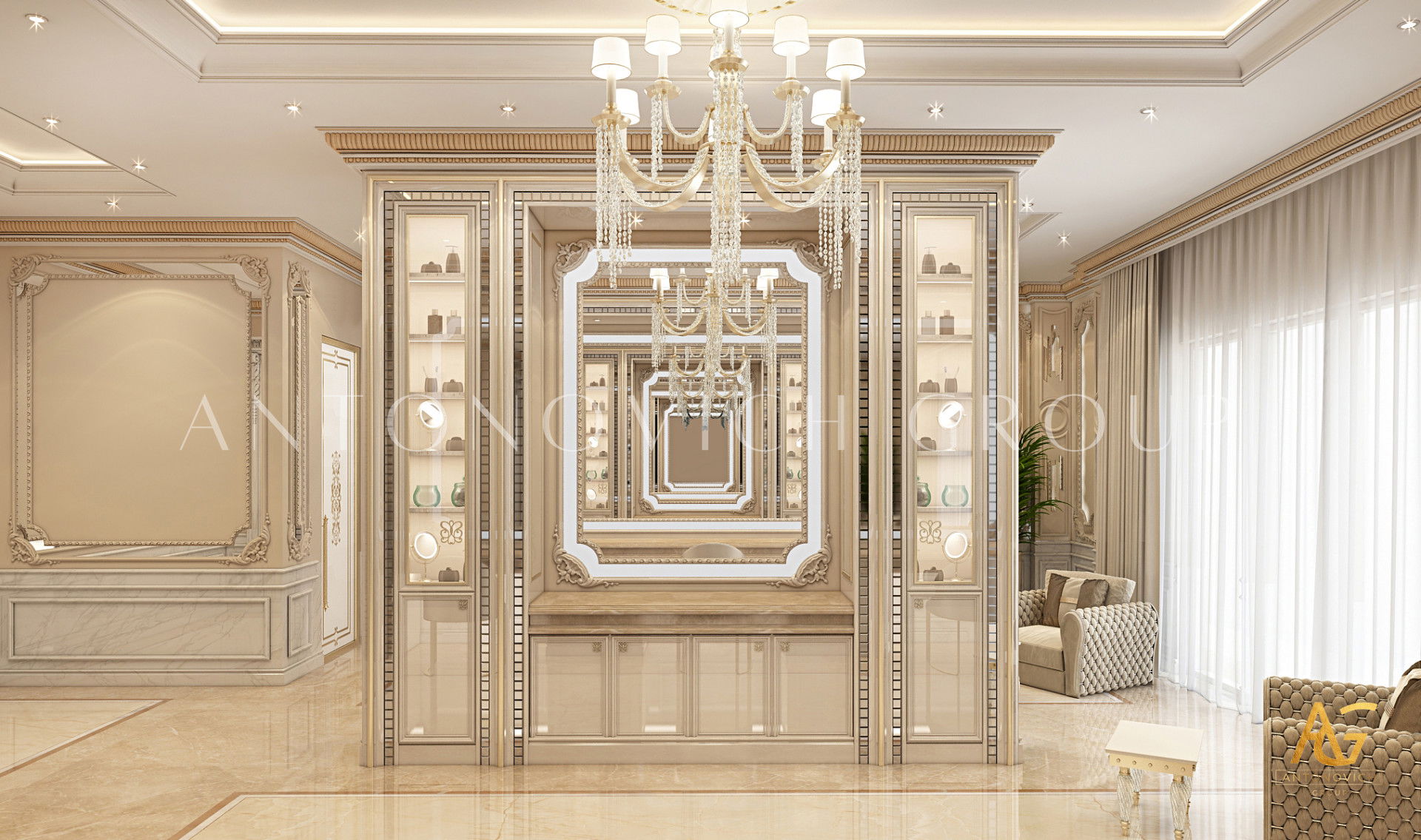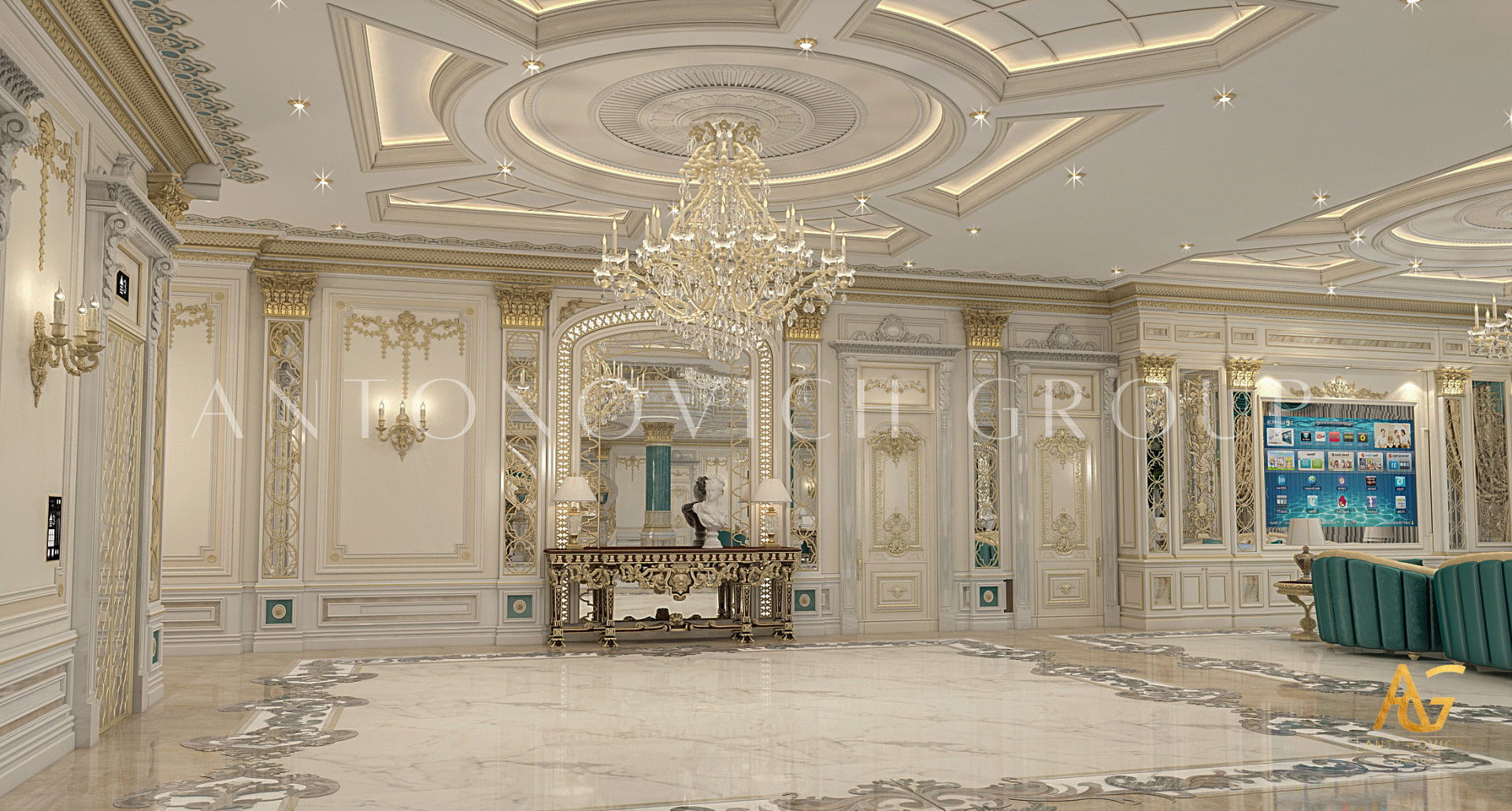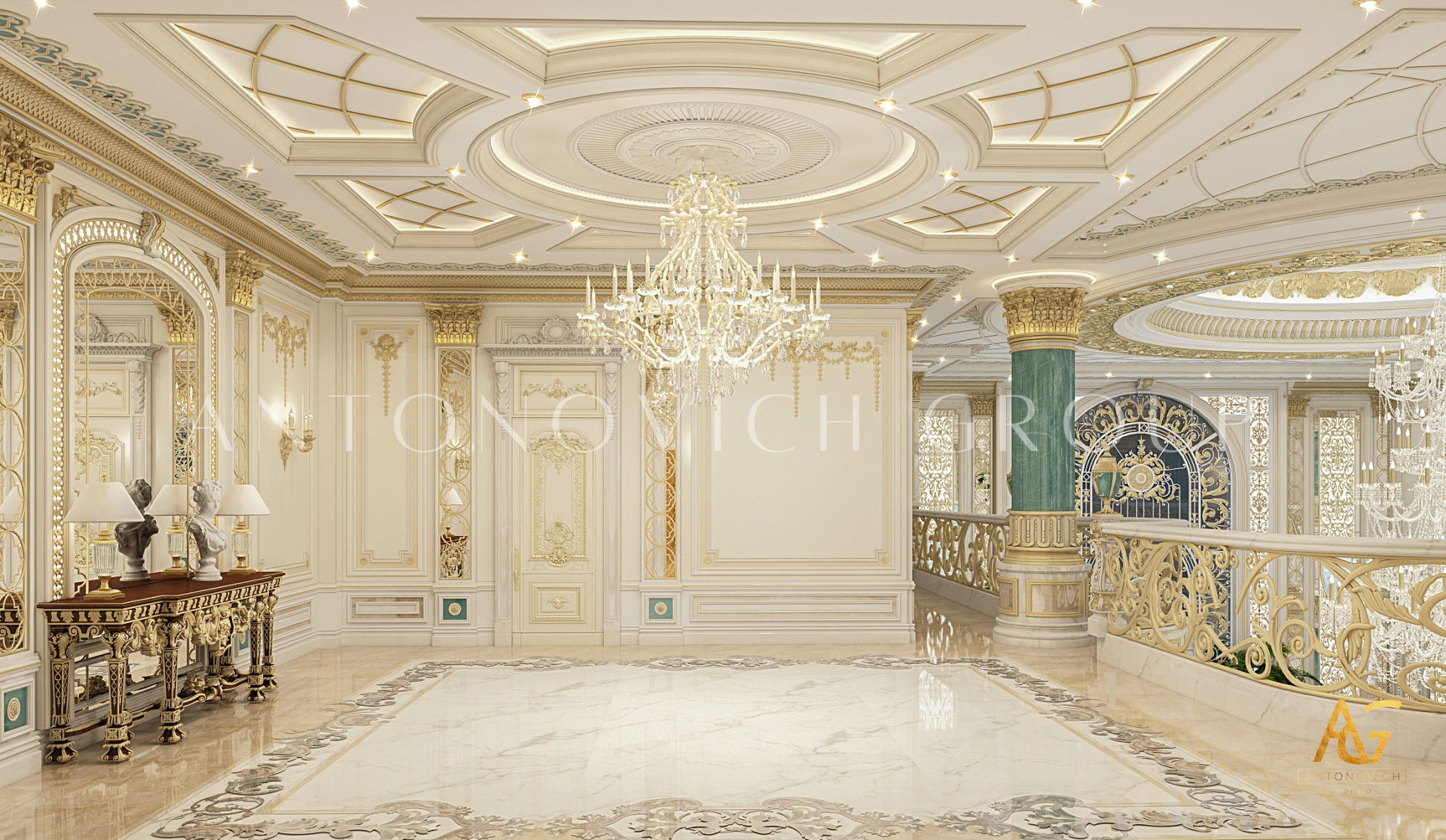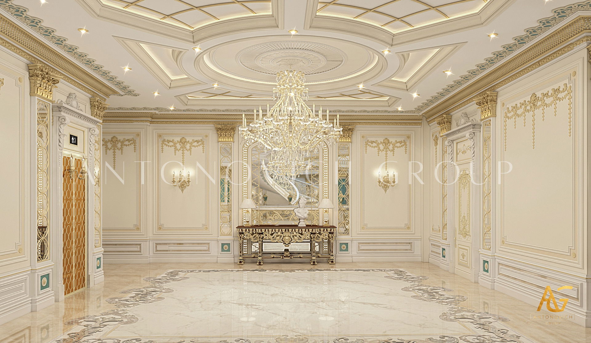 لا شك أن لاكشري أنتونوفيتش ديزاين هو دائمًا الخيار الأفضل لكل عميل من النخبة في تطوير عقاراتهم محليًا وعالميًا. هذه الفيلا ذات الطراز الملكي هي واحدة من أعظم الأمثلة الحديثة على تنفيذ تصميم المشروع المتميز حيث تم إنجازها بشكل مثالي وفقًا لمتطلبات كل عميل وفي نفس الوقت نتمسك بمفهوم التصميم الكلاسيكي. هناك مجموعة من الفخامة المرئية التي يمكن رؤيتها في كل ديكور مفصل وفي تصميم الأثاث ، مثل الثريا الضخمة المخصصة في وسط اللوبي حيث تضيف اضاءه مميزه، تصميم الدرج الدرامي ، اختيارات مثالية من الأثاث الفاخر الإضافي.