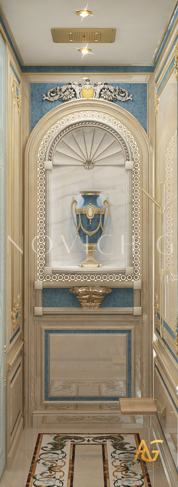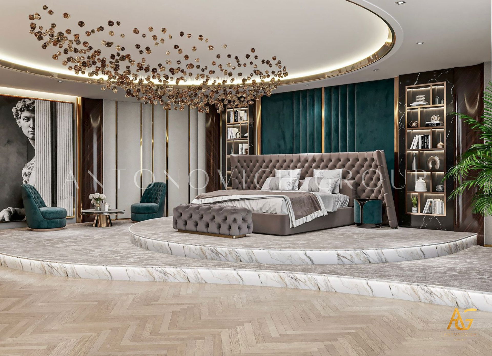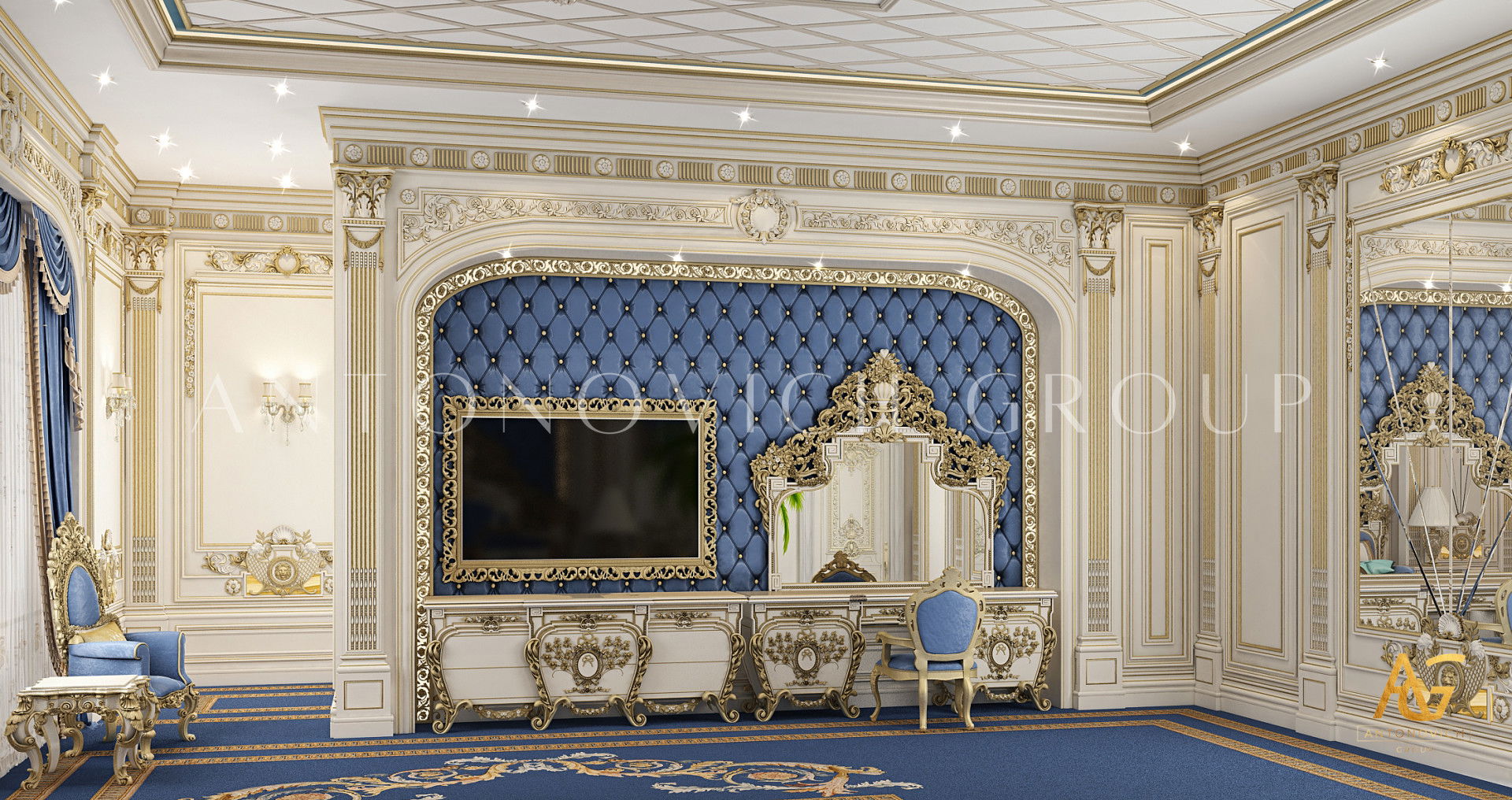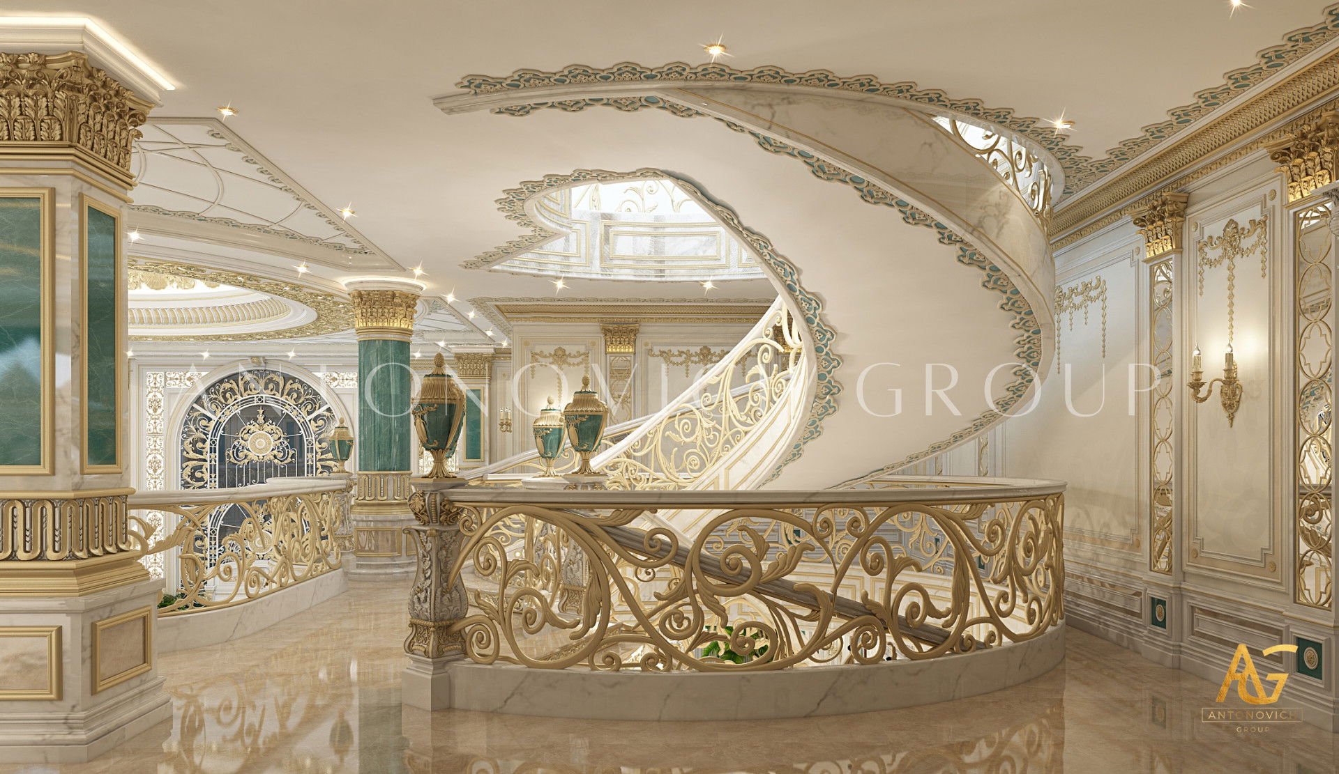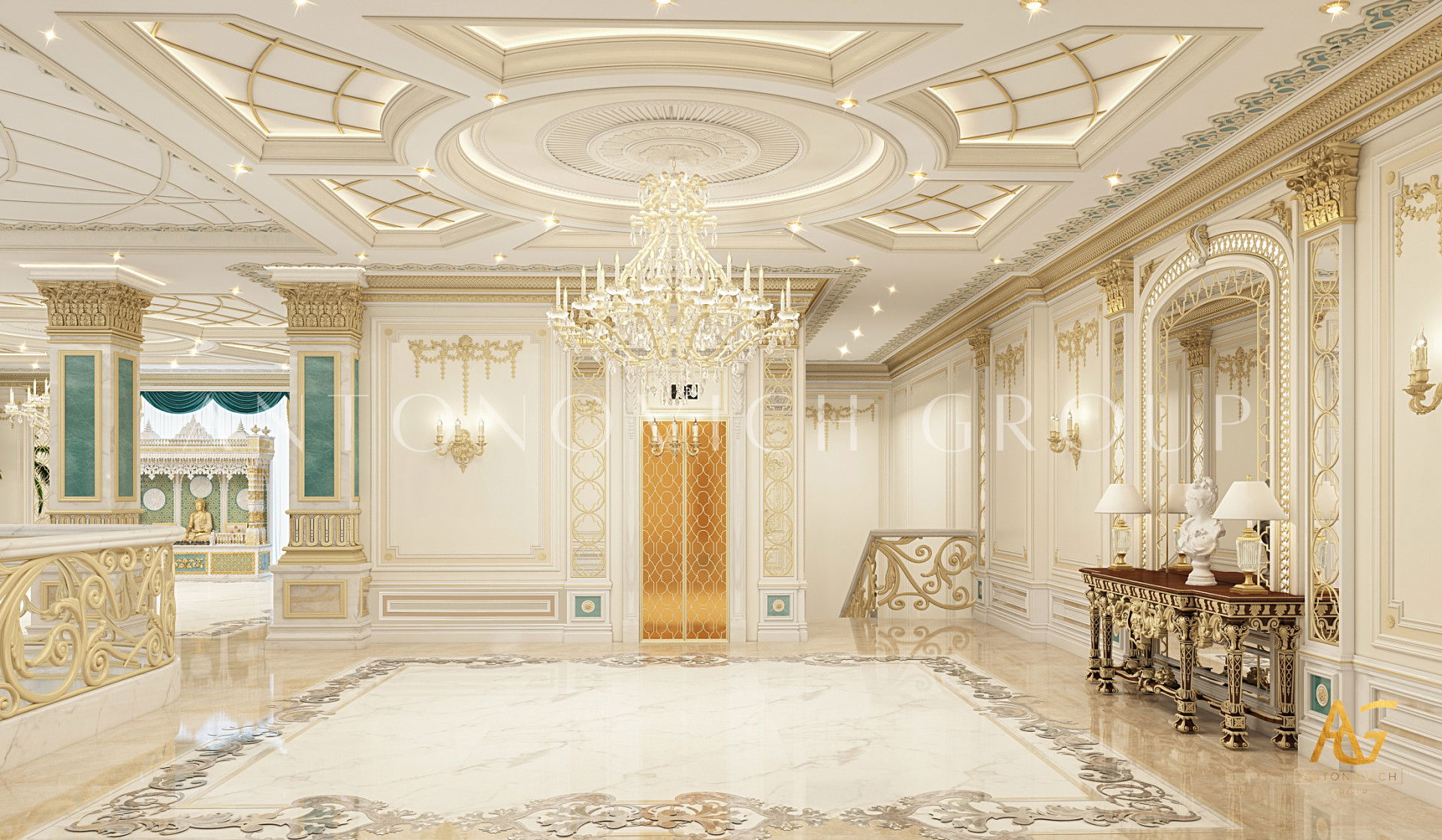 لا شك أن لاكشري أنتونوفيتش ديزاين هو دائمًا الخيار الأفضل لكل عميل من النخبة في تطوير عقاراتهم محليًا وعالميًا. هذه الفيلا ذات الطراز الملكي هي واحدة من أعظم الأمثلة الحديثة على تنفيذ تصميم المشروع المتميز حيث تم إنجازها بشكل مثالي وفقًا لمتطلبات كل عميل وفي نفس الوقت نتمسك بمفهوم التصميم الكلاسيكي. هناك مجموعة من الفخامة المرئية التي يمكن رؤيتها في كل ديكور مفصل وفي تصميم الأثاث ، مثل الثريا الضخمة المخصصة في وسط اللوبي حيث تضيف اضاءه مميزه، تصميم الدرج الدرامي ، اختيارات مثالية من الأثاث الفاخر الإضافي.