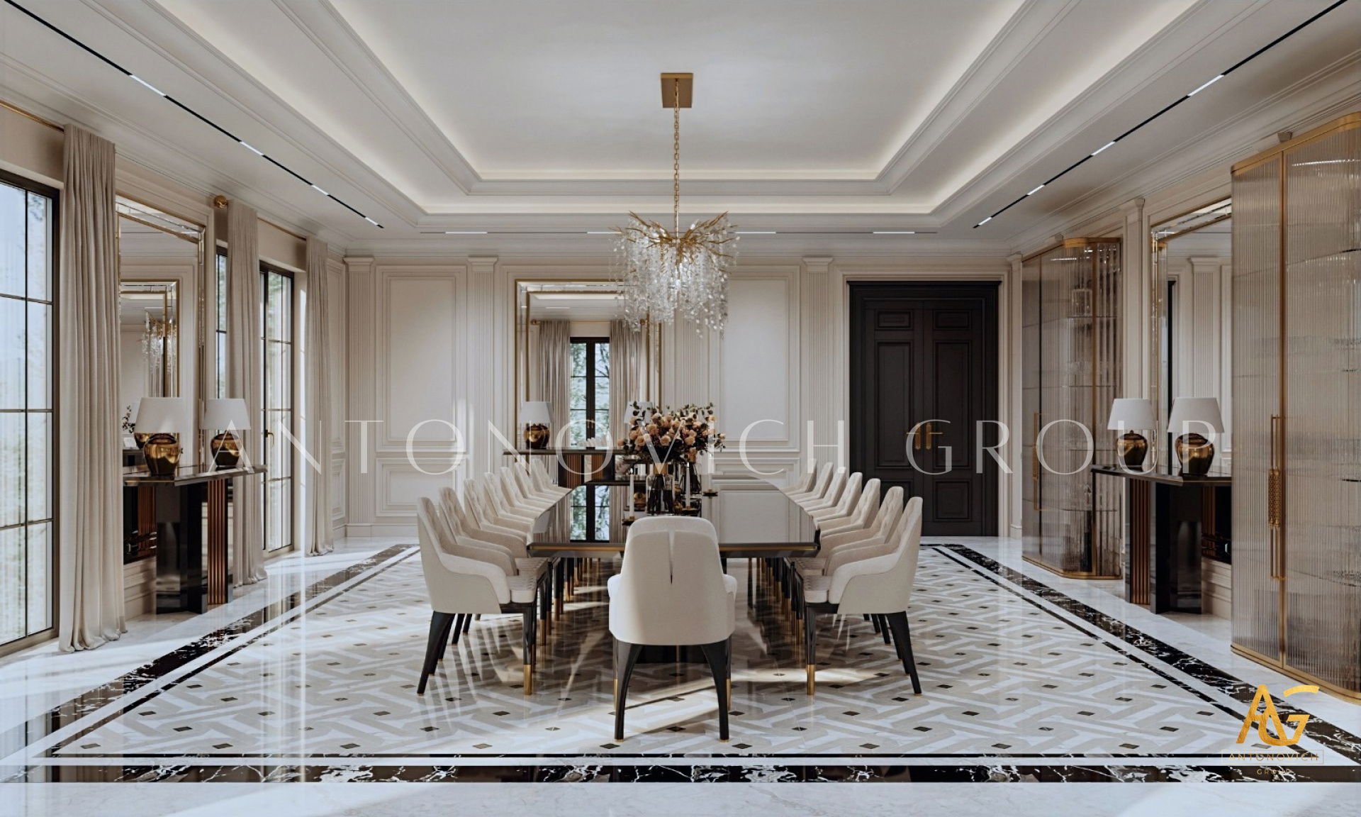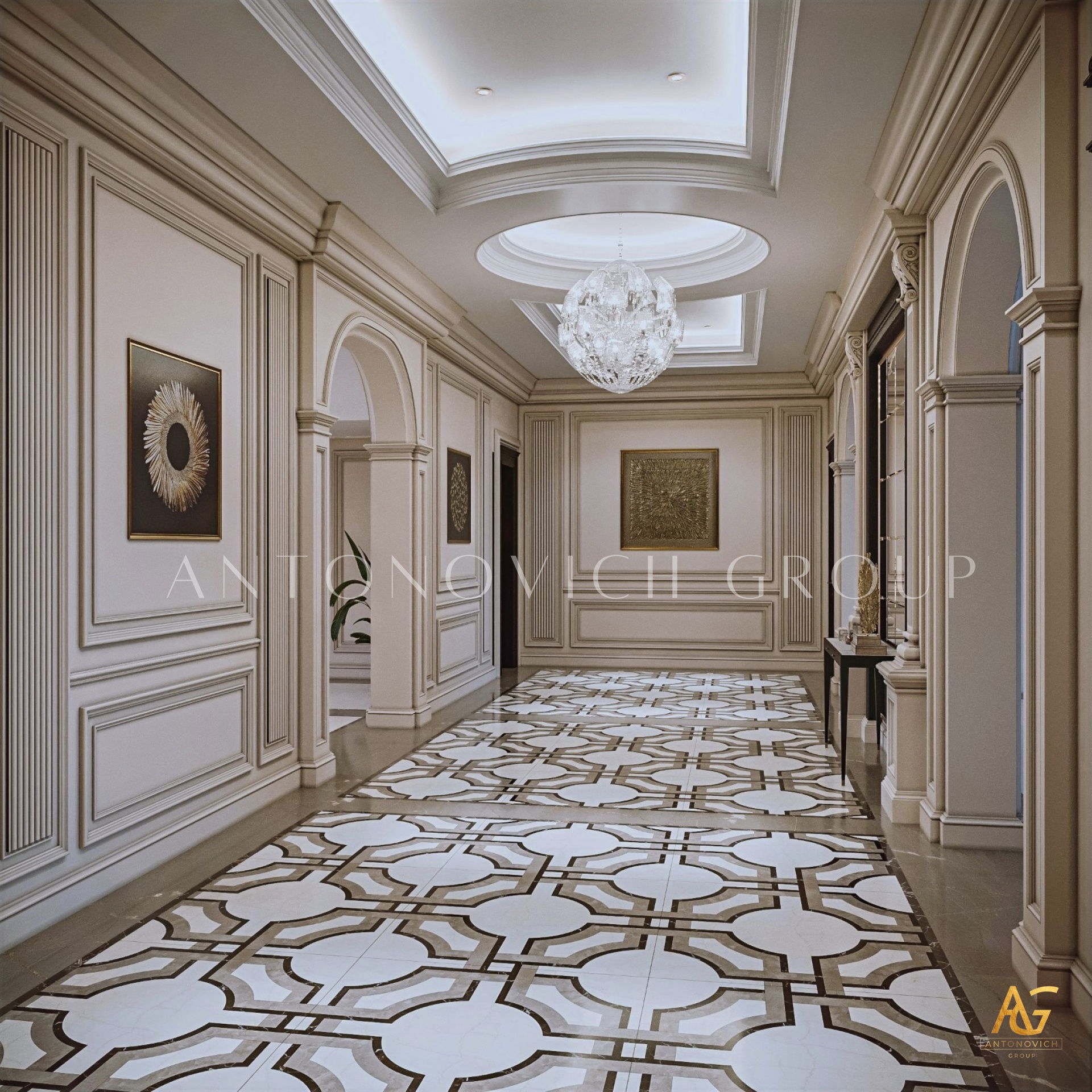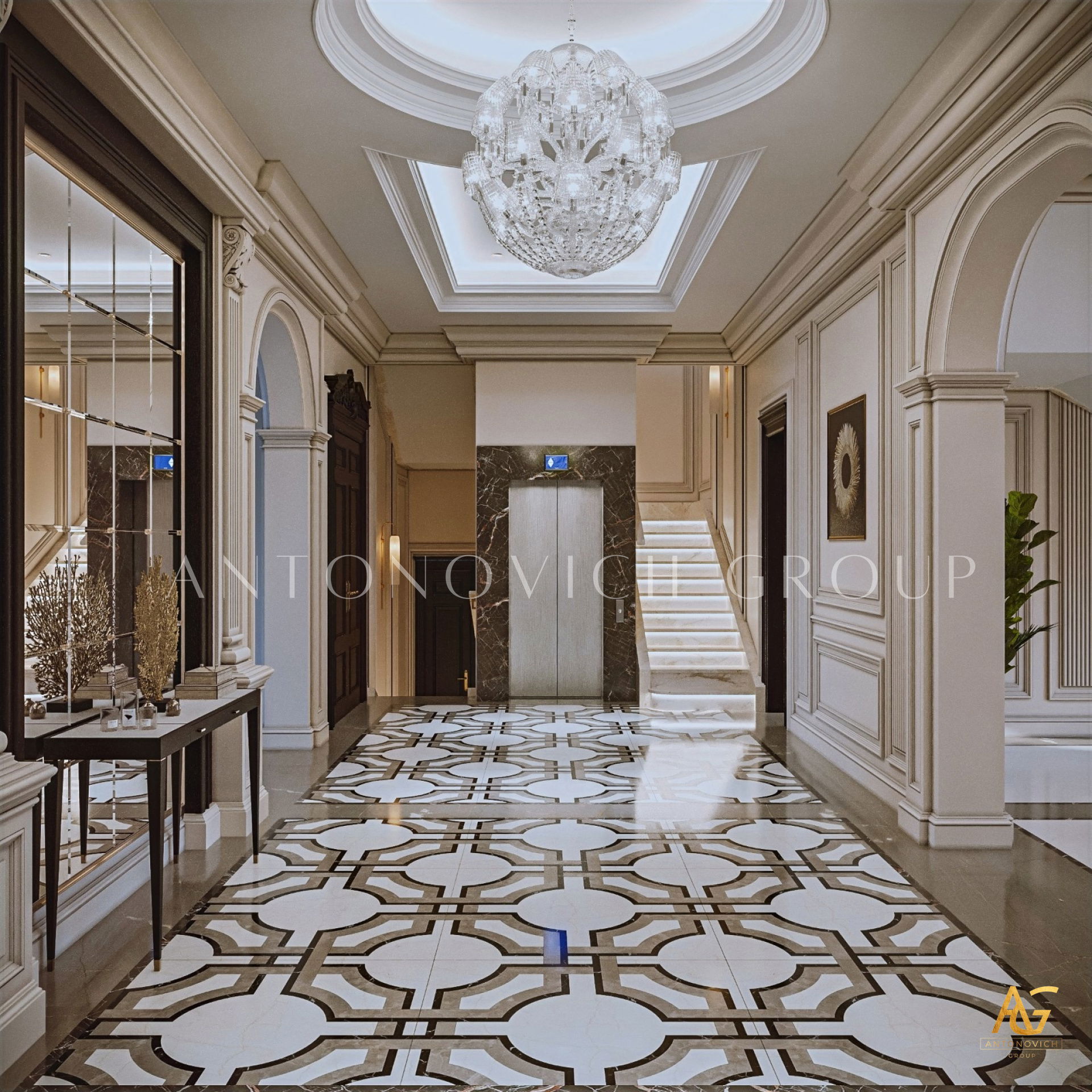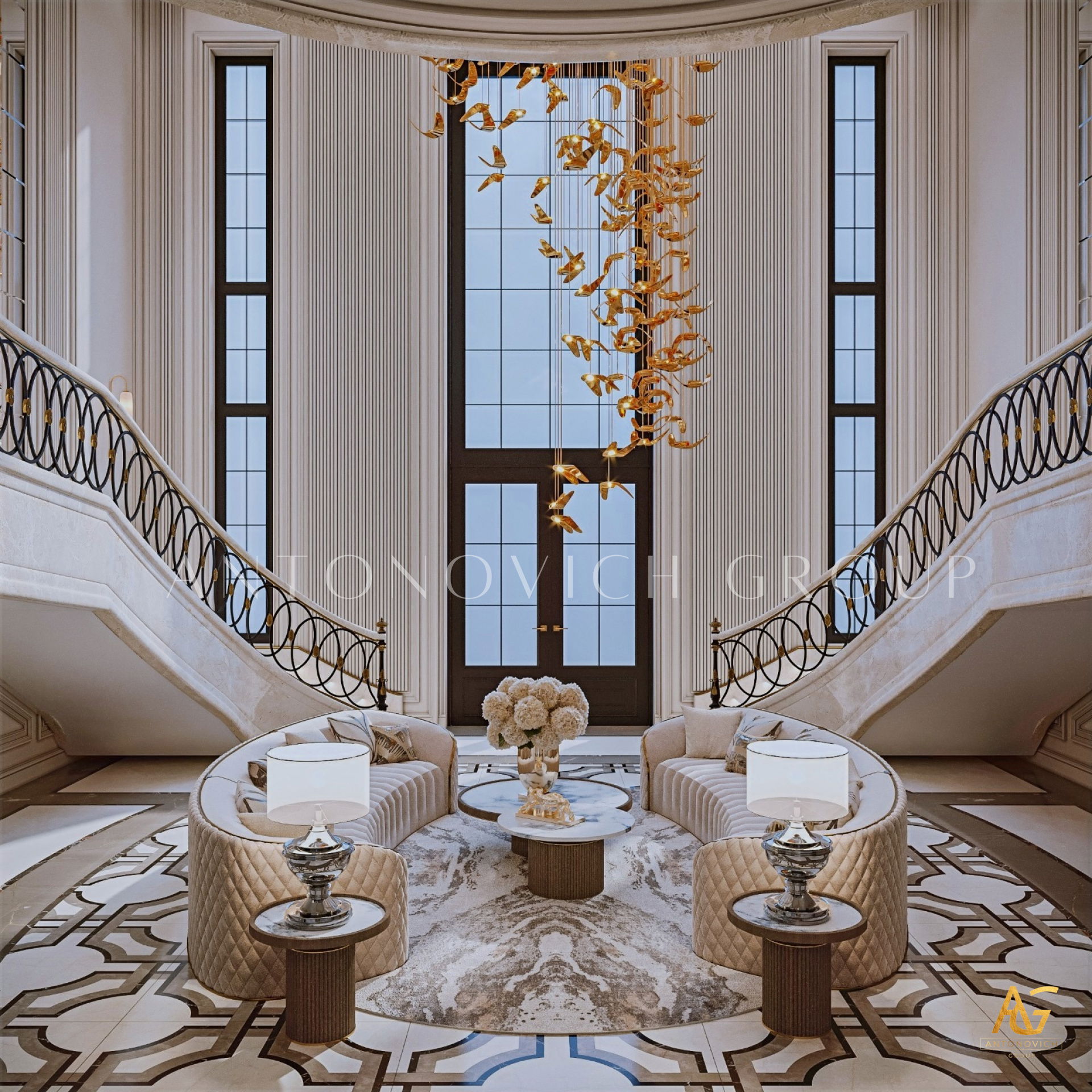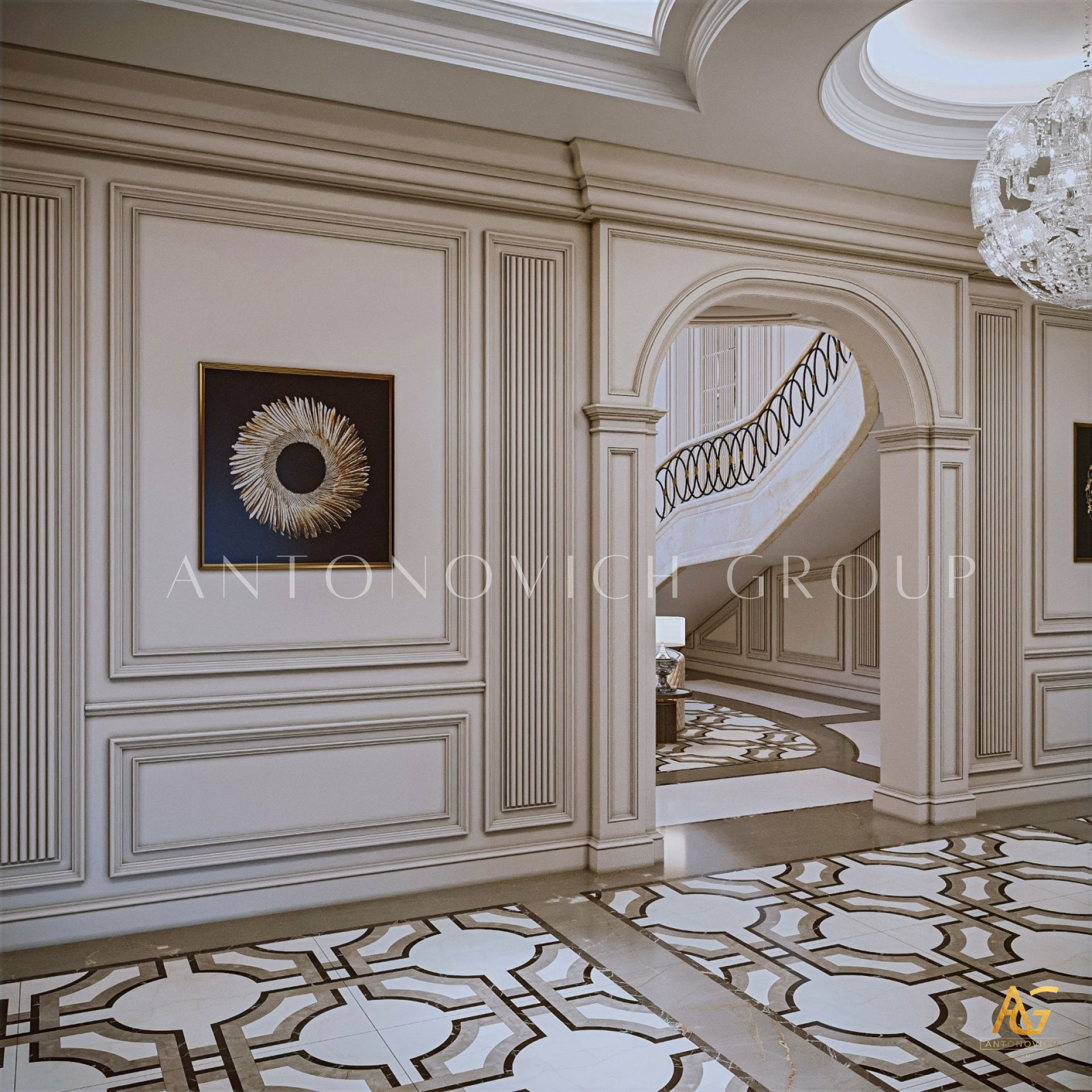 أغلى المنازل التي أنشأها استوديو التصميم من لاكشري انتونوفيتش ديزاين هي روائع حقيقية لا تتأثر بتغيرات الوقت أو الذوق. أولاً وقبل كل شيء ، ينطبق هذا على التصميمات الداخلية للفيلا ذات الطراز الكلاسيكي. فحتى يومنا هذا ، لا يزال النمط الكلاسيكي رائج للغاية في عالم التصميم الداخلي الفاخر. حيث أنه يجسد الاحترام والرقي وقمة الكمال الجمالي. فقد أصبح تصميم المنزل على الطراز الكلاسيكي هو الأساس لعش عائلي جديد لعائلة كبيرة وسعيدة. فان كل متر مربع من الداخل مليء بالدفء والرقي والذوق العالي العميق. ويكون كل قرار في التتصميم مترابط ومتناغم. ويجمع التصميم الداخلي بين جاذبية القصر الملكي ودفء الراحة المنزلية. ستائر دبي مع لامبريكين من الحرير الناعم تبدو فاخرة ورائعة في داخل غرفة المعيشة. وصممت ستائر القاعة لتكمل الاجواء الفخمة في الغرفة. فقد تم تصميم كل غرفة وفقًا لأفضل التقاليد الكلاسيكية. وني ايضا ان المصممون الداخليون يستخدمون ورق الحائط للمنزل ، والديكور الجبسي ، والجبس الزخرفي ، والنقوش البارزة على الجدران ، والنوافذ ذات الزجاج الملون لتزيين الجدران. يبدأ طابق التصميم الداخلي بلوبي مذهل ويستمر عبر كل غرفة ، ولكل منها جوها الخاص والمميز. ووفقًا لمشروع المنزل ، هناك مساحة لمكتبة ومكتب خاص. حيث يعكس تصميم القاعة بالكامل احترام أصحاب المنزل والذوق الرفيع. ويعد تصميم القاعة ، الذي يتضمن صورًا للمشاريع المنجزة التي تم التكليف بها بالفعل ، تمثيلًا دقيقًا لجميع أفكار التصميم.