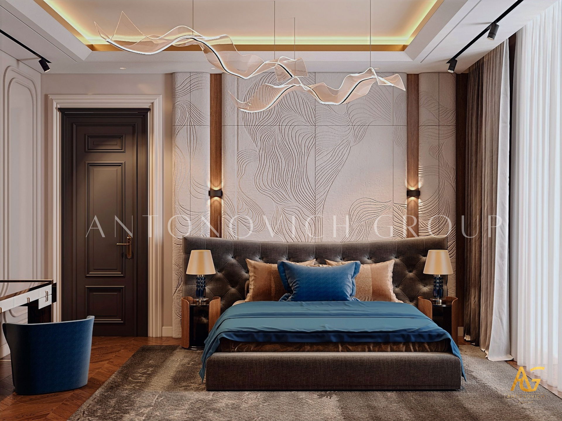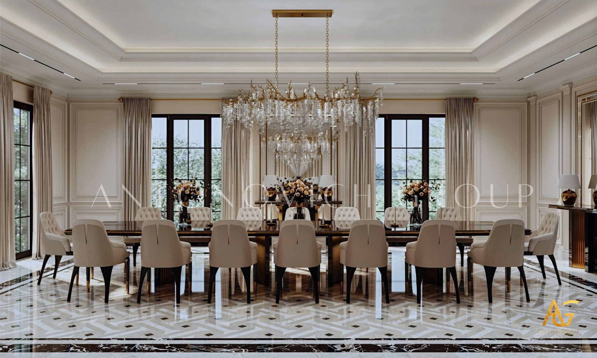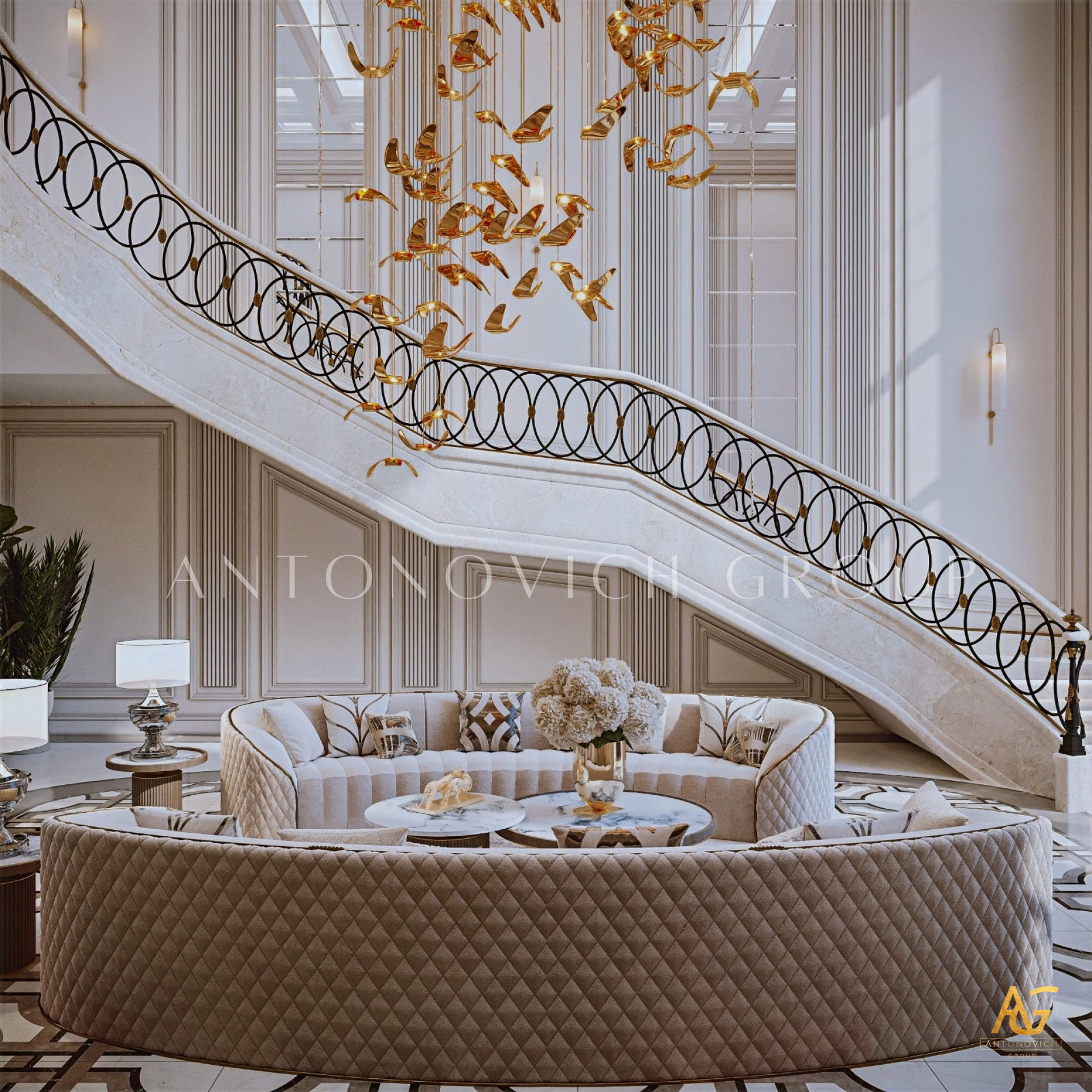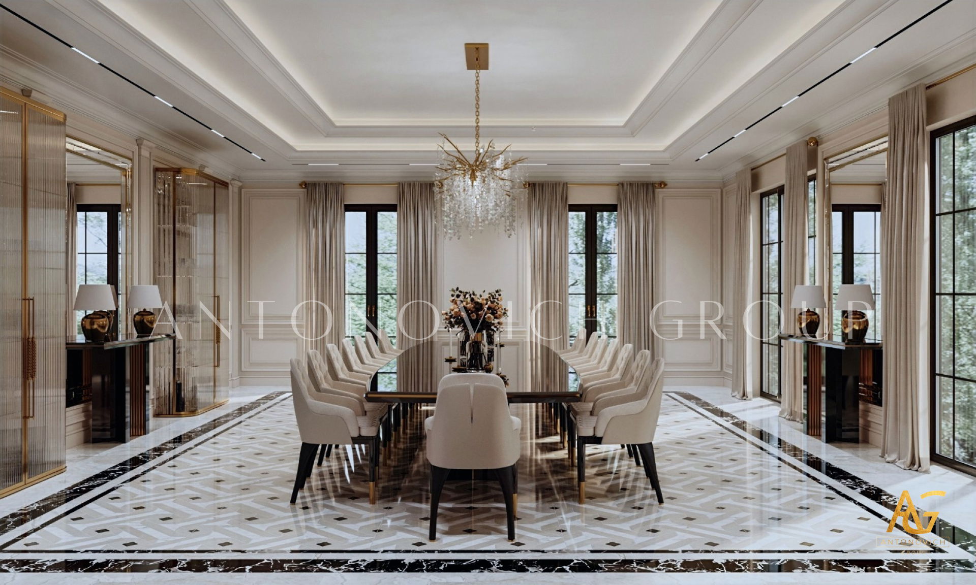 أغلى المنازل التي أنشأها استوديو التصميم من لاكشري انتونوفيتش ديزاين هي روائع حقيقية لا تتأثر بتغيرات الوقت أو الذوق. أولاً وقبل كل شيء ، ينطبق هذا على التصميمات الداخلية للفيلا ذات الطراز الكلاسيكي. فحتى يومنا هذا ، لا يزال النمط الكلاسيكي رائج للغاية في عالم التصميم الداخلي الفاخر. حيث أنه يجسد الاحترام والرقي وقمة الكمال الجمالي. فقد أصبح تصميم المنزل على الطراز الكلاسيكي هو الأساس لعش عائلي جديد لعائلة كبيرة وسعيدة. فان كل متر مربع من الداخل مليء بالدفء والرقي والذوق العالي العميق. ويكون كل قرار في التتصميم مترابط ومتناغم. ويجمع التصميم الداخلي بين جاذبية القصر الملكي ودفء الراحة المنزلية. ستائر دبي مع لامبريكين من الحرير الناعم تبدو فاخرة ورائعة في داخل غرفة المعيشة. وصممت ستائر القاعة لتكمل الاجواء الفخمة في الغرفة. فقد تم تصميم كل غرفة وفقًا لأفضل التقاليد الكلاسيكية. وني ايضا ان المصممون الداخليون يستخدمون ورق الحائط للمنزل ، والديكور الجبسي ، والجبس الزخرفي ، والنقوش البارزة على الجدران ، والنوافذ ذات الزجاج الملون لتزيين الجدران. يبدأ طابق التصميم الداخلي بلوبي مذهل ويستمر عبر كل غرفة ، ولكل منها جوها الخاص والمميز. ووفقًا لمشروع المنزل ، هناك مساحة لمكتبة ومكتب خاص. حيث يعكس تصميم القاعة بالكامل احترام أصحاب المنزل والذوق الرفيع. ويعد تصميم القاعة ، الذي يتضمن صورًا للمشاريع المنجزة التي تم التكليف بها بالفعل ، تمثيلًا دقيقًا لجميع أفكار التصميم.