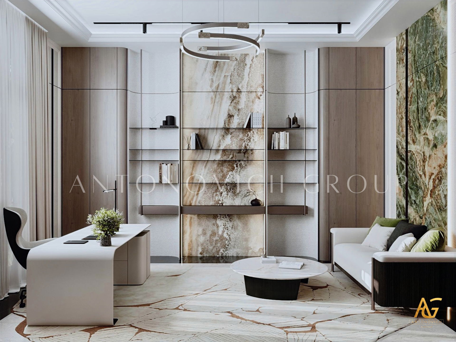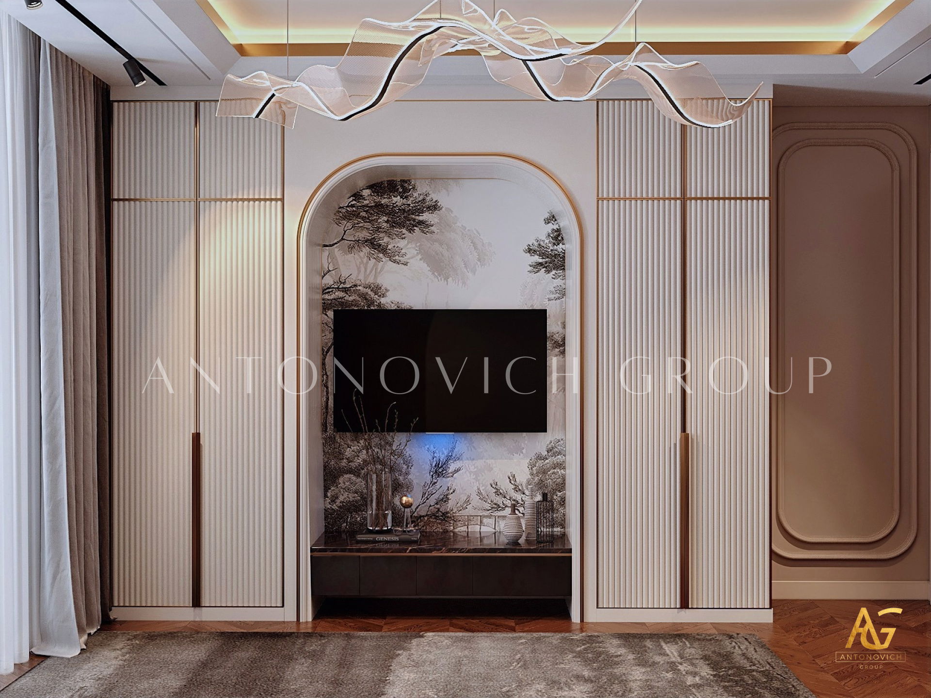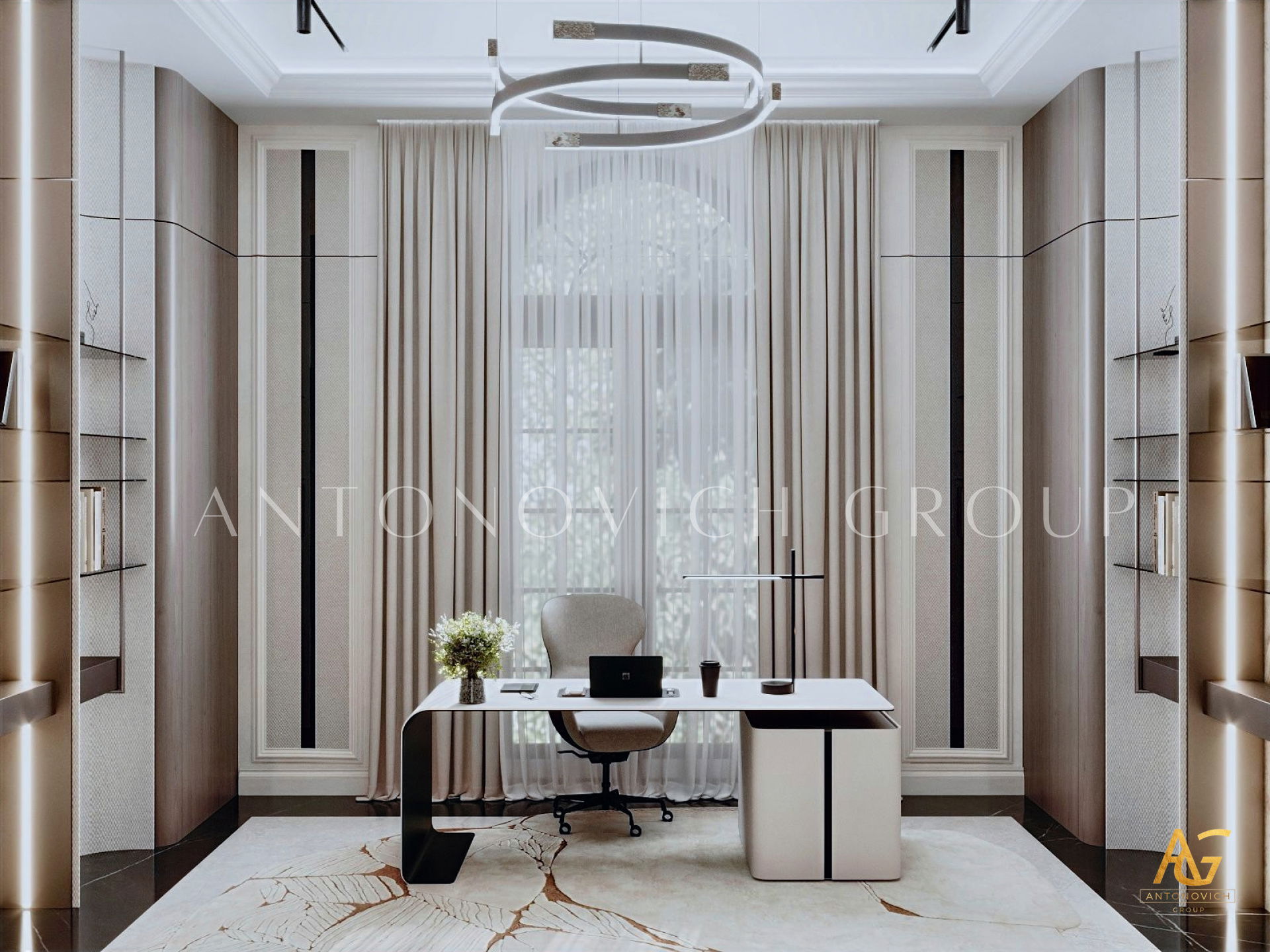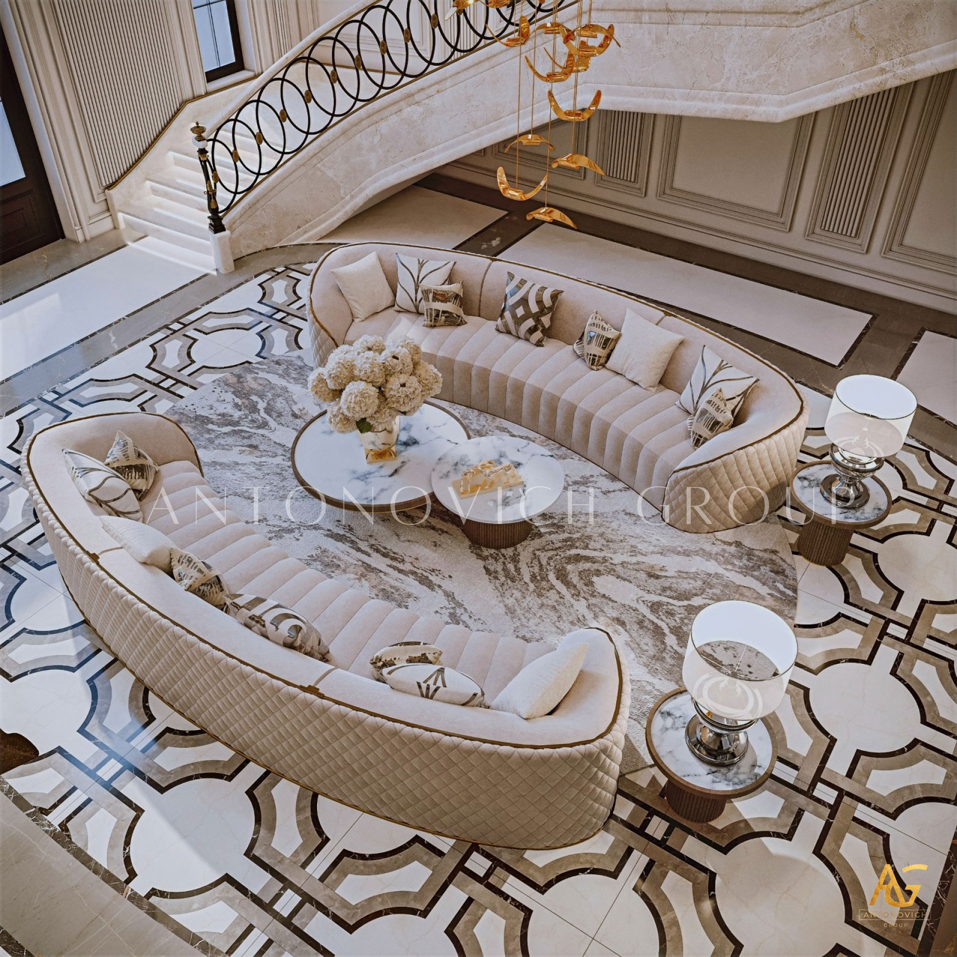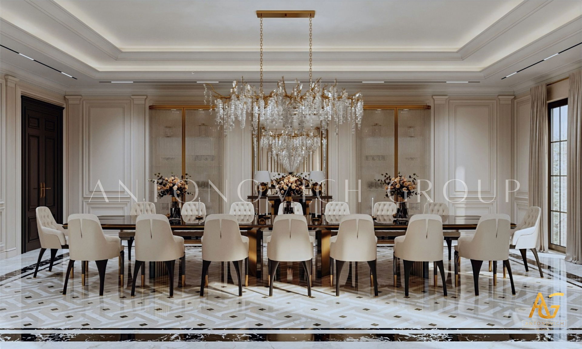 أغلى المنازل التي أنشأها استوديو التصميم من لاكشري انتونوفيتش ديزاين هي روائع حقيقية لا تتأثر بتغيرات الوقت أو الذوق. أولاً وقبل كل شيء ، ينطبق هذا على التصميمات الداخلية للفيلا ذات الطراز الكلاسيكي. فحتى يومنا هذا ، لا يزال النمط الكلاسيكي رائج للغاية في عالم التصميم الداخلي الفاخر. حيث أنه يجسد الاحترام والرقي وقمة الكمال الجمالي. فقد أصبح تصميم المنزل على الطراز الكلاسيكي هو الأساس لعش عائلي جديد لعائلة كبيرة وسعيدة. فان كل متر مربع من الداخل مليء بالدفء والرقي والذوق العالي العميق. ويكون كل قرار في التتصميم مترابط ومتناغم. ويجمع التصميم الداخلي بين جاذبية القصر الملكي ودفء الراحة المنزلية. ستائر دبي مع لامبريكين من الحرير الناعم تبدو فاخرة ورائعة في داخل غرفة المعيشة. وصممت ستائر القاعة لتكمل الاجواء الفخمة في الغرفة. فقد تم تصميم كل غرفة وفقًا لأفضل التقاليد الكلاسيكية. وني ايضا ان المصممون الداخليون يستخدمون ورق الحائط للمنزل ، والديكور الجبسي ، والجبس الزخرفي ، والنقوش البارزة على الجدران ، والنوافذ ذات الزجاج الملون لتزيين الجدران. يبدأ طابق التصميم الداخلي بلوبي مذهل ويستمر عبر كل غرفة ، ولكل منها جوها الخاص والمميز. ووفقًا لمشروع المنزل ، هناك مساحة لمكتبة ومكتب خاص. حيث يعكس تصميم القاعة بالكامل احترام أصحاب المنزل والذوق الرفيع. ويعد تصميم القاعة ، الذي يتضمن صورًا للمشاريع المنجزة التي تم التكليف بها بالفعل ، تمثيلًا دقيقًا لجميع أفكار التصميم.